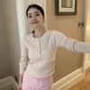 Suéter de Punto Morado de Cuello en V y Manga Larga para Mujer Primavera y Otoño 2025 Nueva Moda Otoñal Suéter Suelto y Delicado Top de Mujer