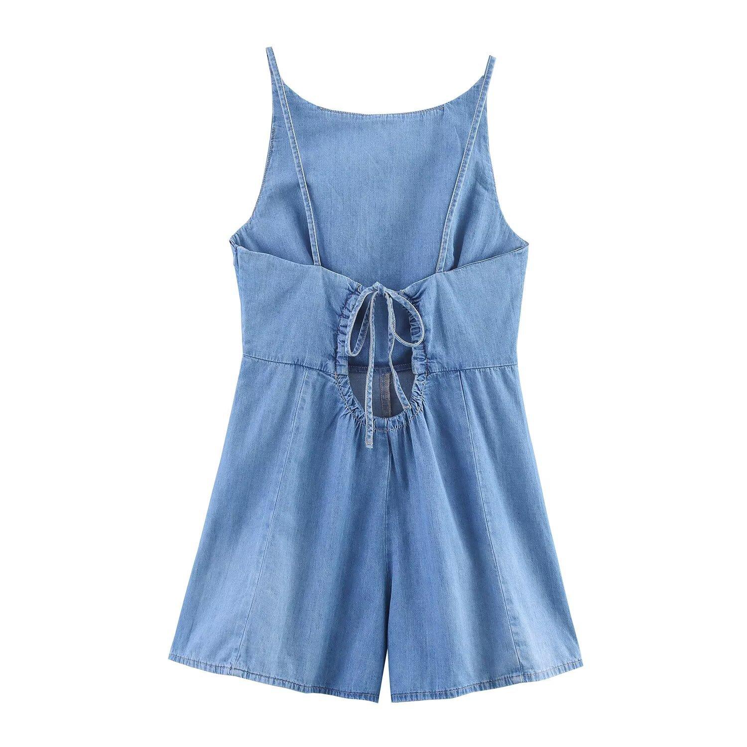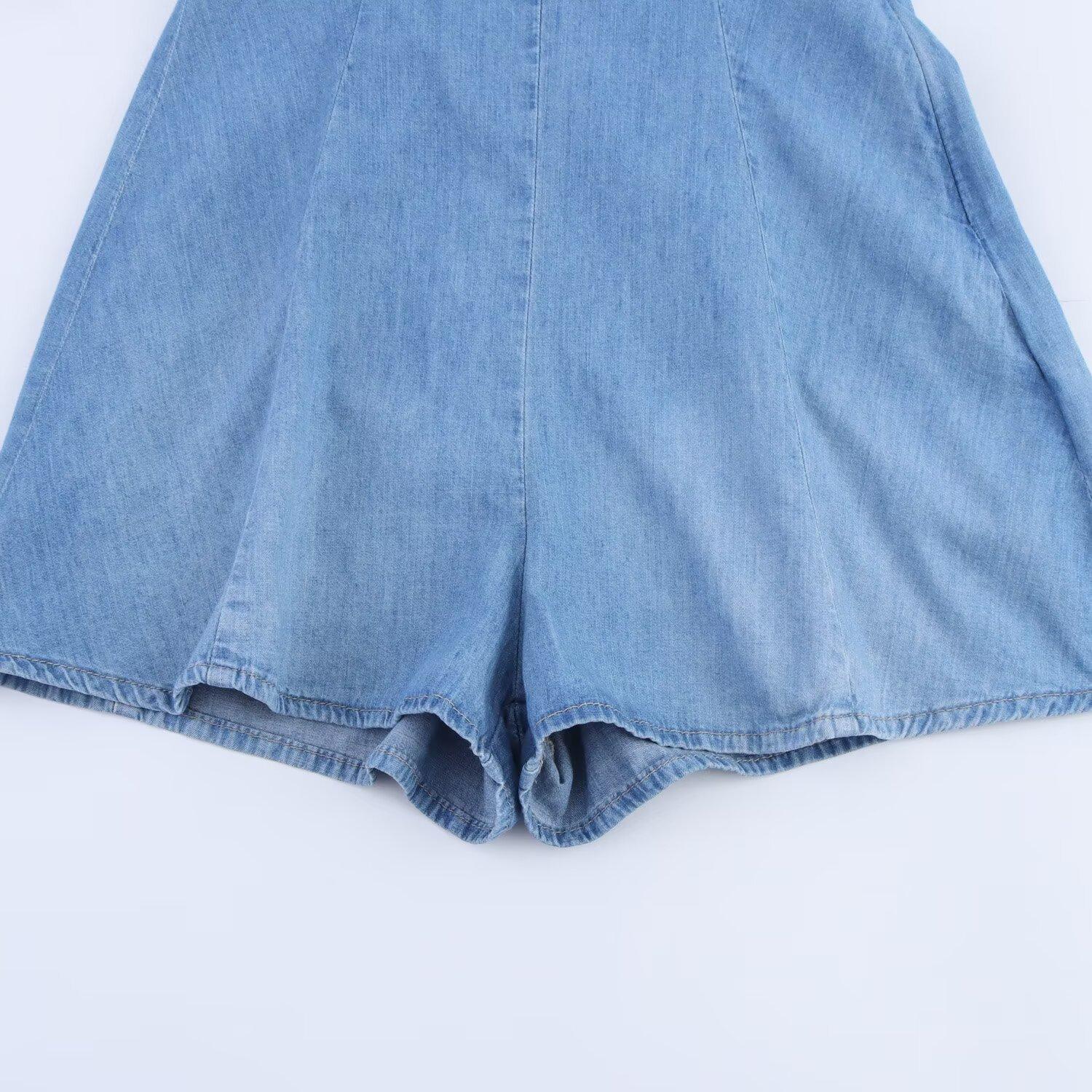 Z Venta al por Mayor Transfronteriza 2025 Nueva Moda Verano Estilo Europeo y Americano Mono Corto de Mezclilla con Hombros Descubiertos 4365085