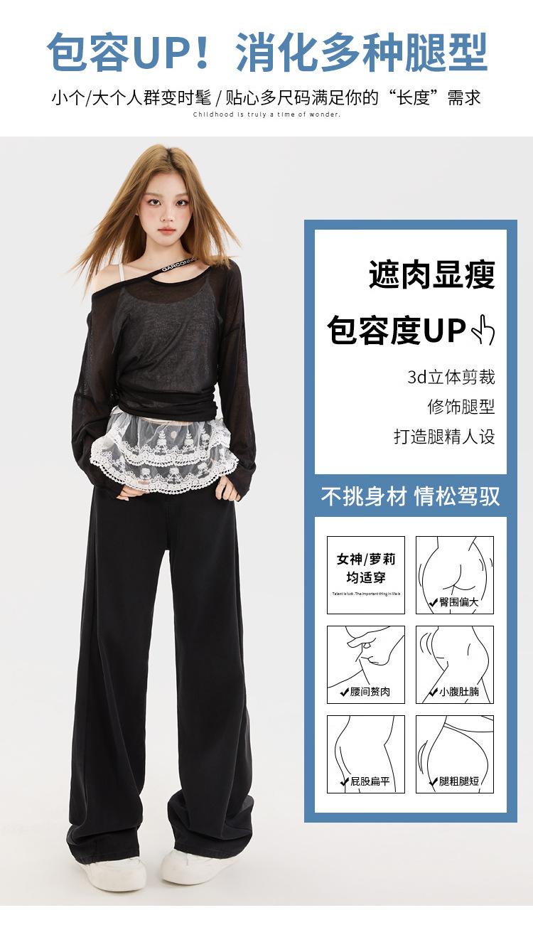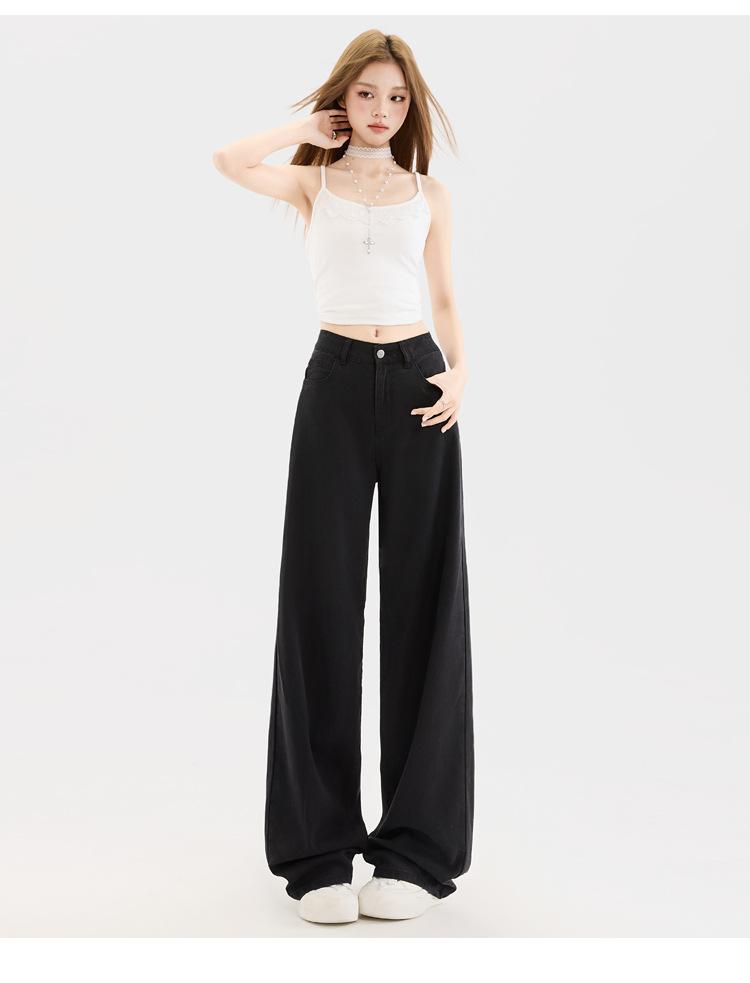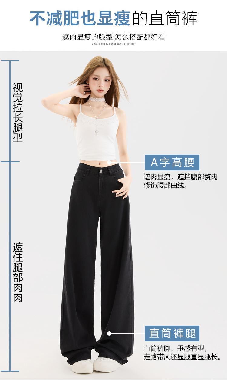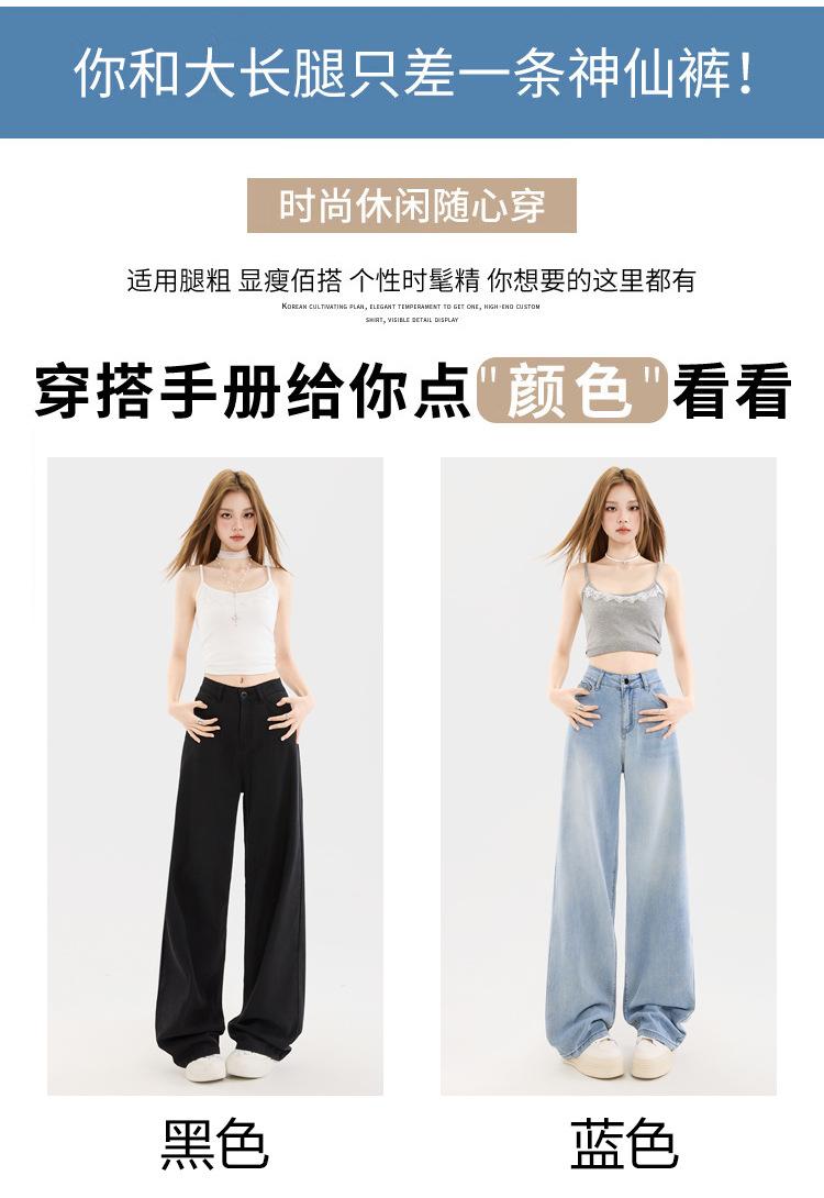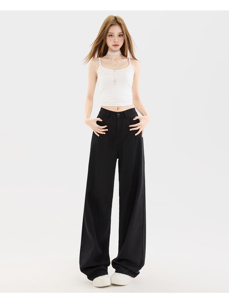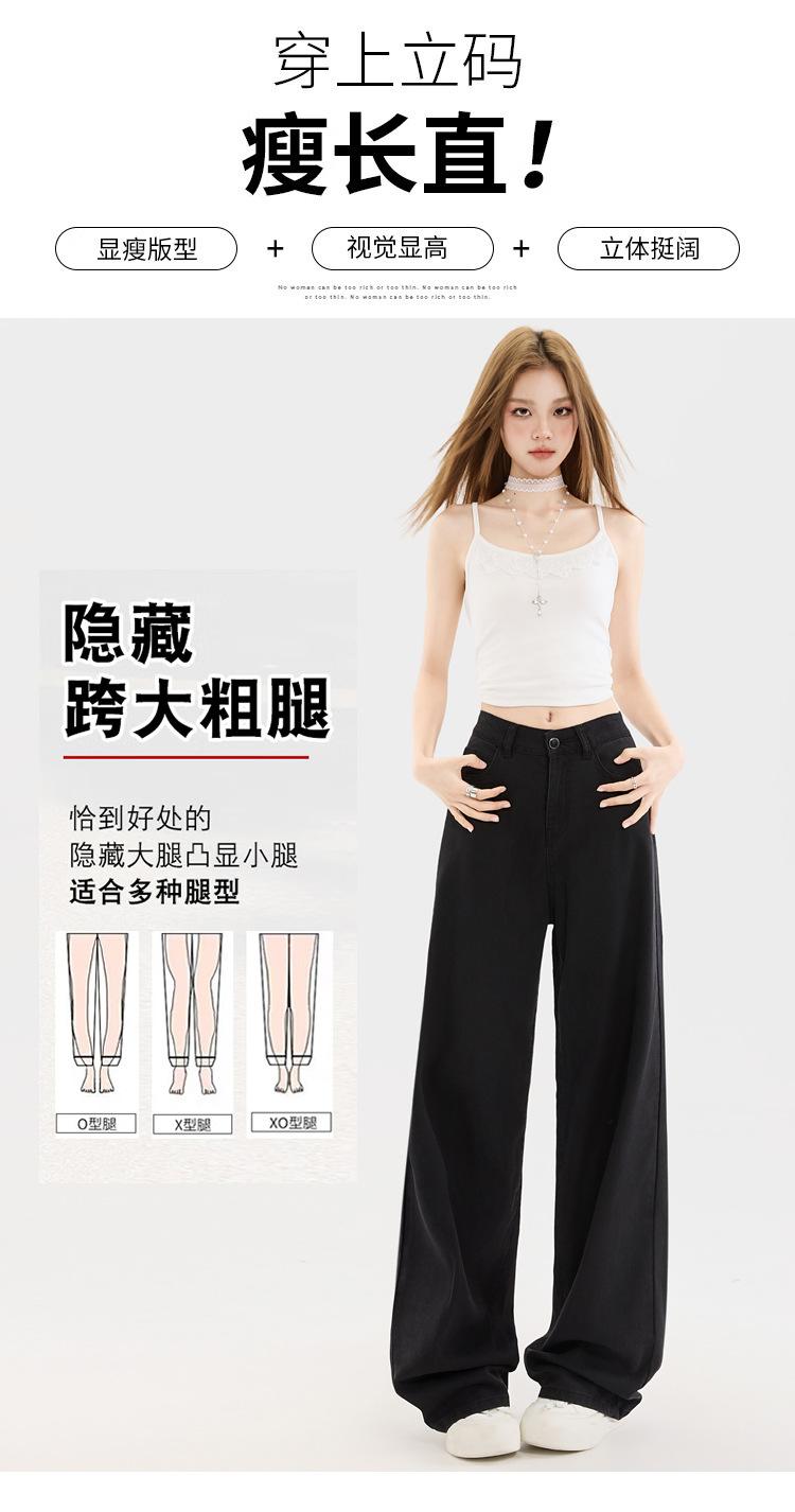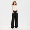 Primavera y Verano 2025 Nueva Tela Elástica Tencel Lyocell Pantalones Rectos de Pierna Ancha Ultrafinos para Mujer Pantalones Negros de Mujer
