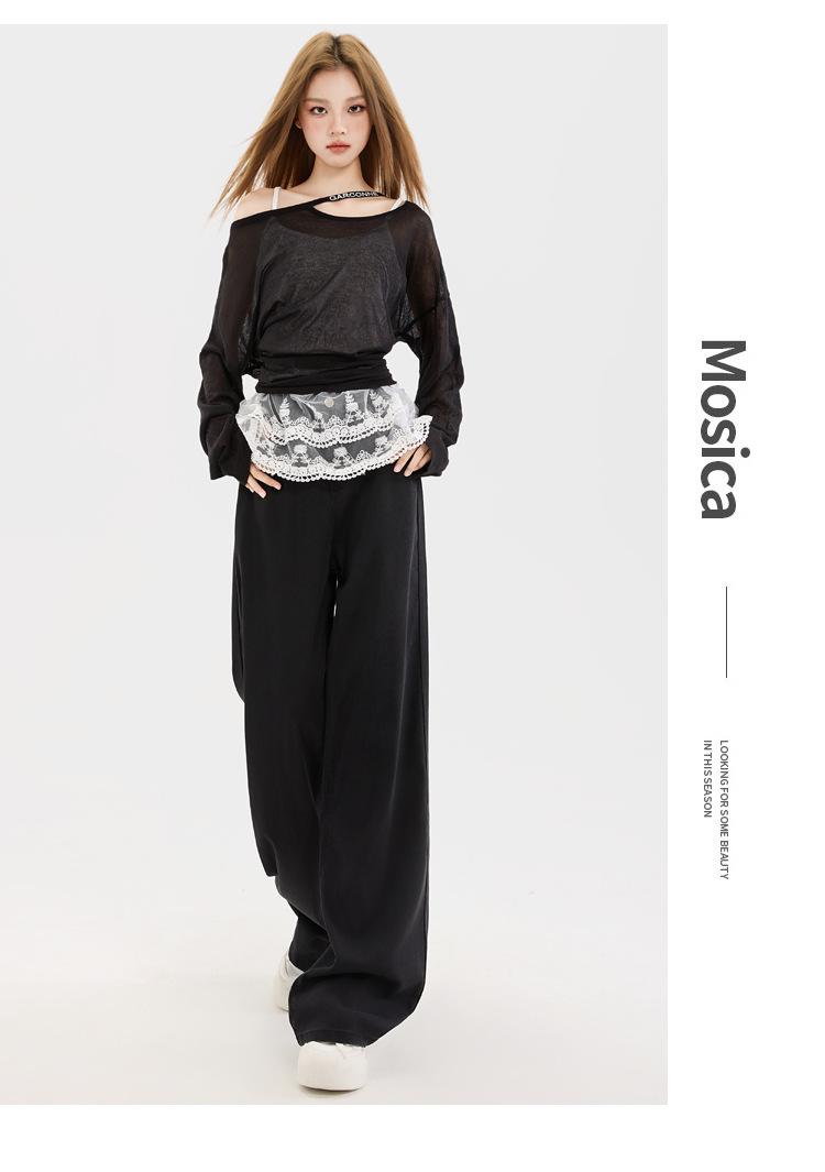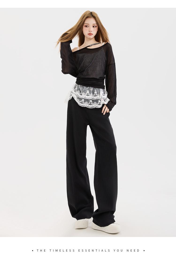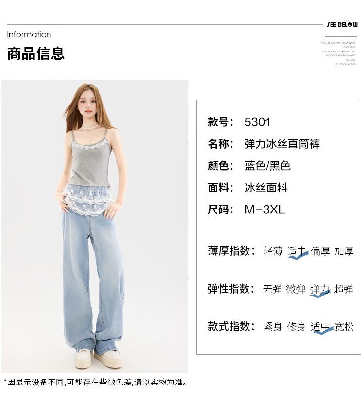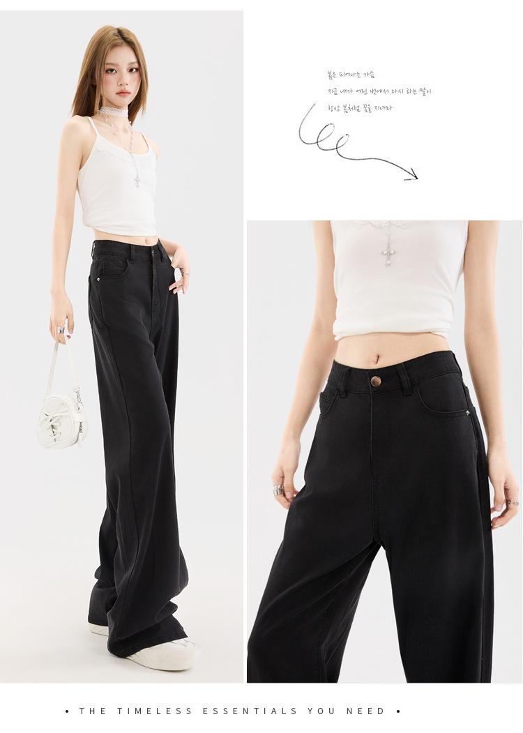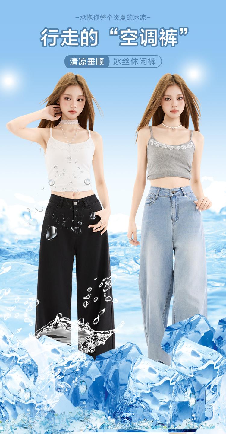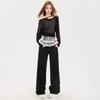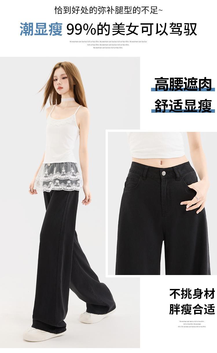 Primavera y Verano 2025 Nueva Tela Elástica Tencel Lyocell Pantalones Rectos de Pierna Ancha Ultrafinos para Mujer Pantalones Negros de Mujer