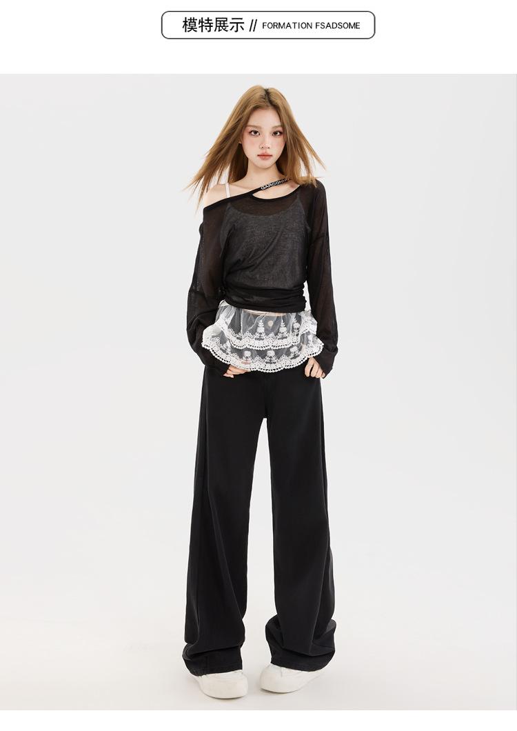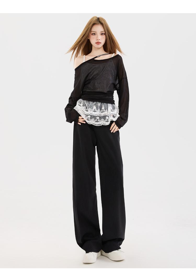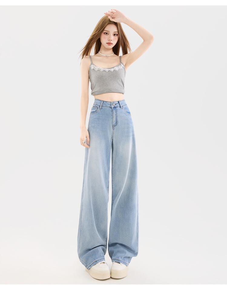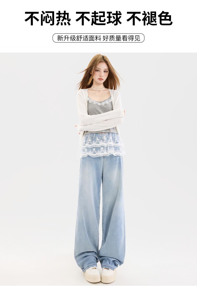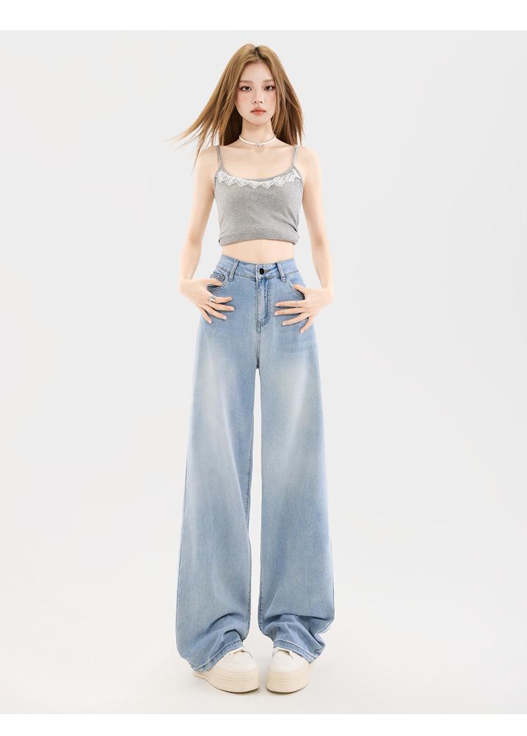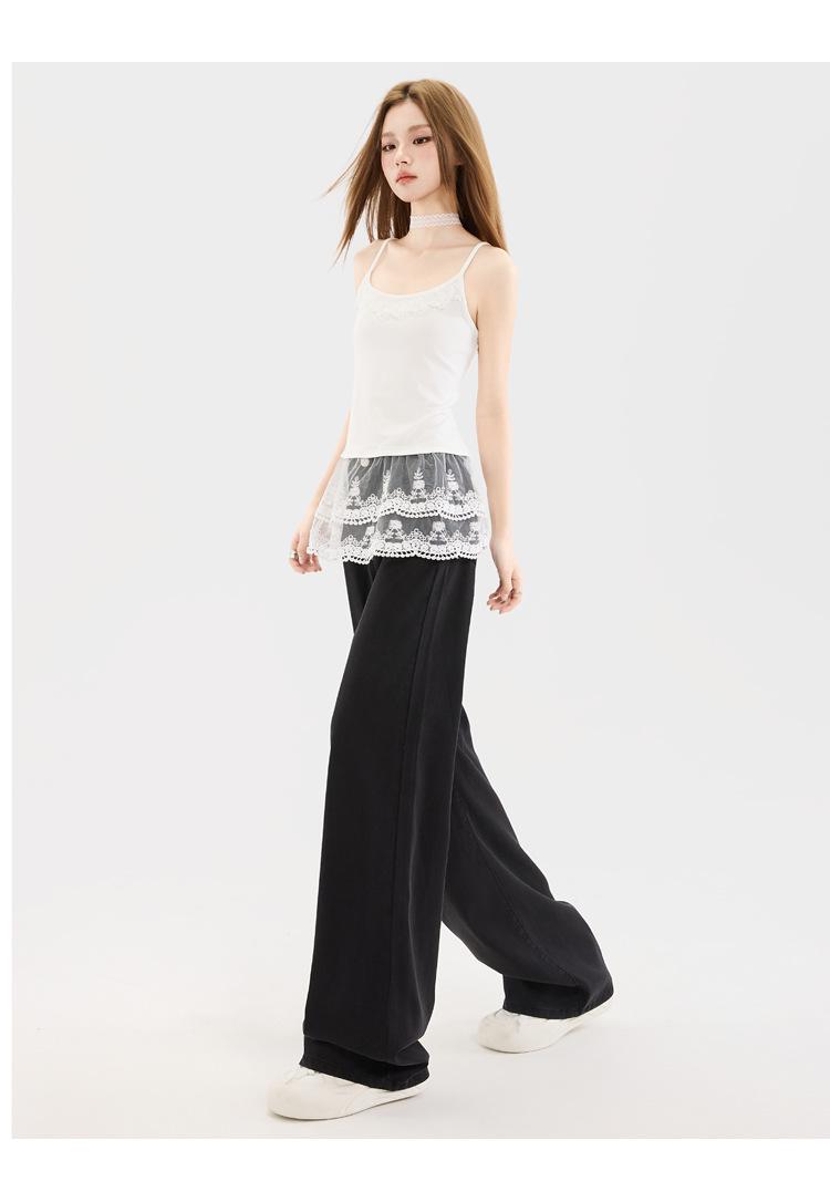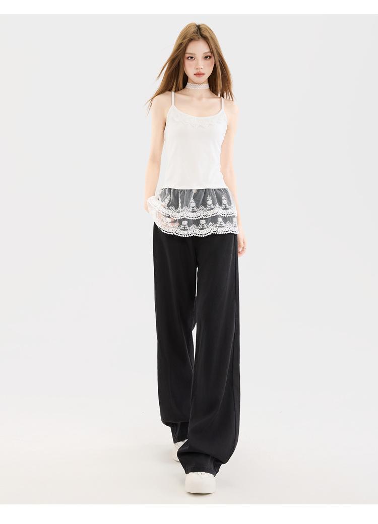Primavera y Verano 2025 Nueva Tela Elástica Tencel Lyocell Pantalones Rectos de Pierna Ancha Ultrafinos para Mujer Pantalones Negros de Mujer