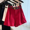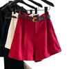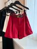 Recomendación nivel CHAO~pantalones casuales de lino rojo de lujo ligero para mujer 2025 verano productos coreanos shorts plisados de cintura alta boca Jin