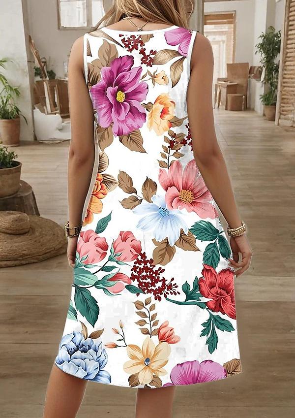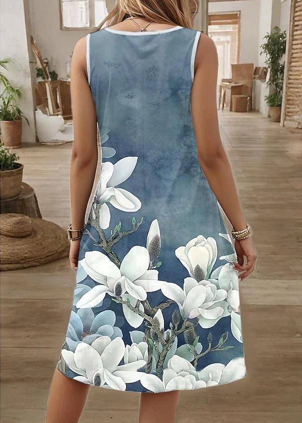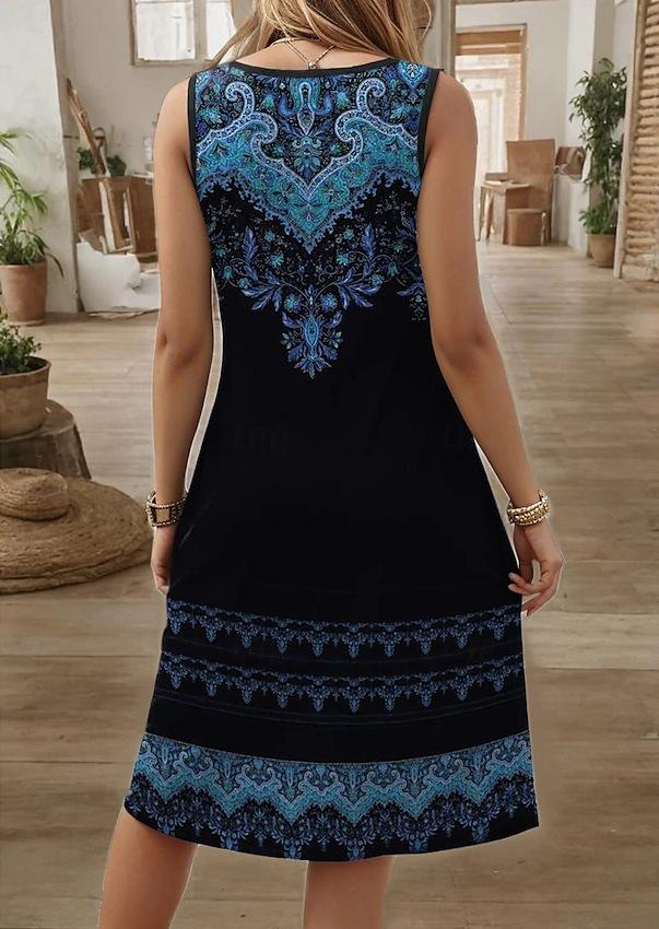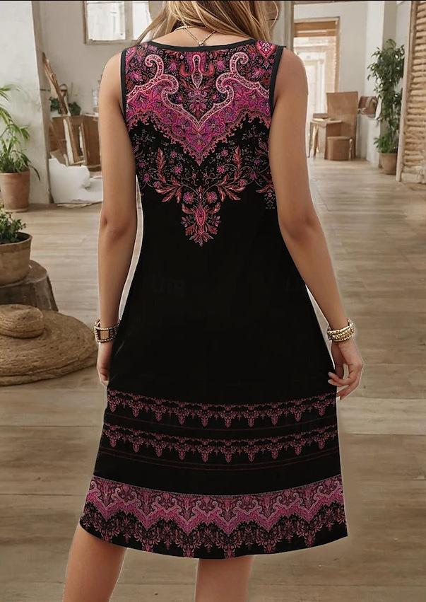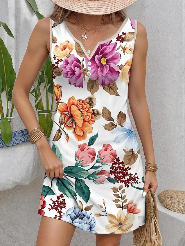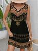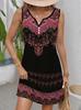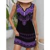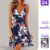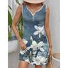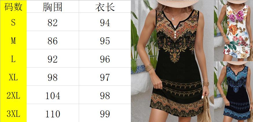 2025 Verano Europeo y Americano Nuevo Amazon Temu Estampado Tirantes Moda Casual Cuello en V Botones Vestido Sin Mangas