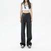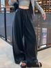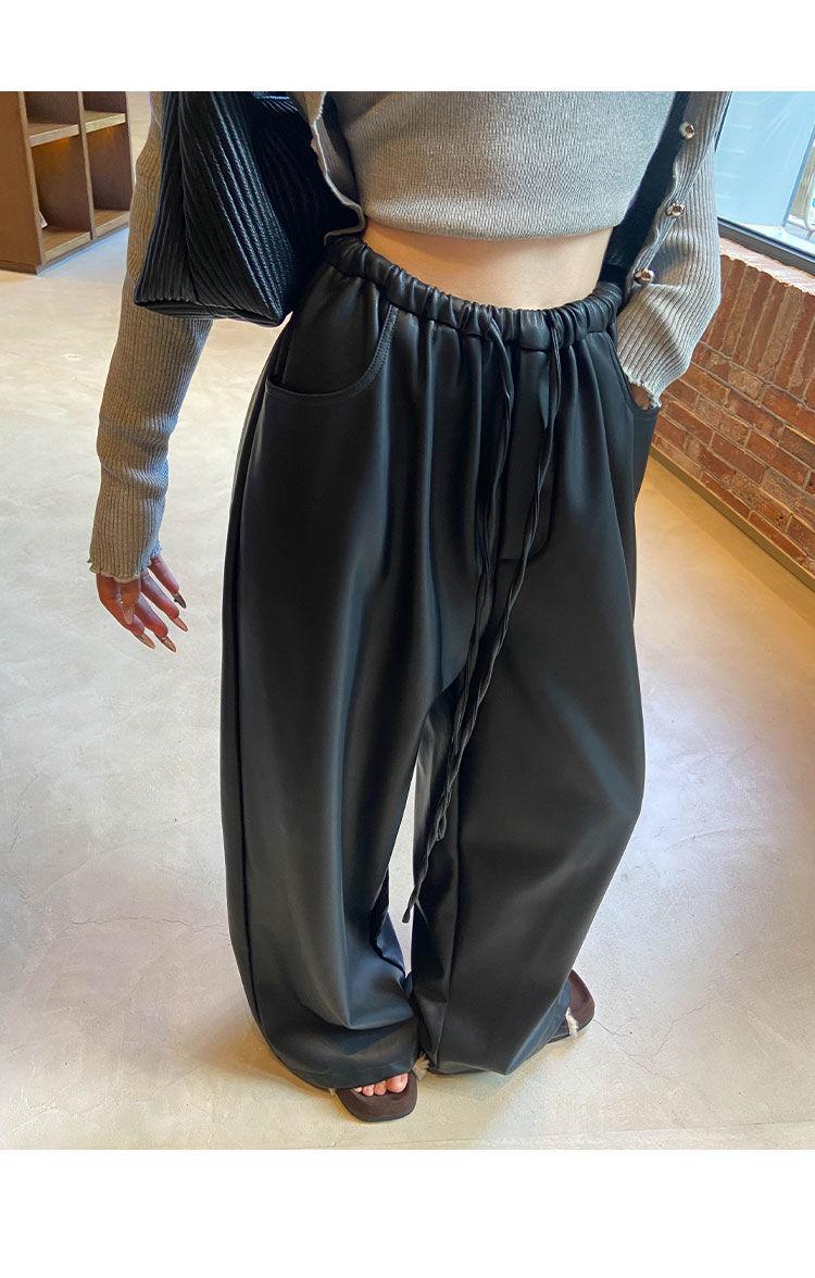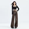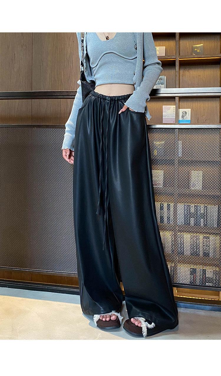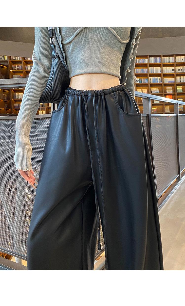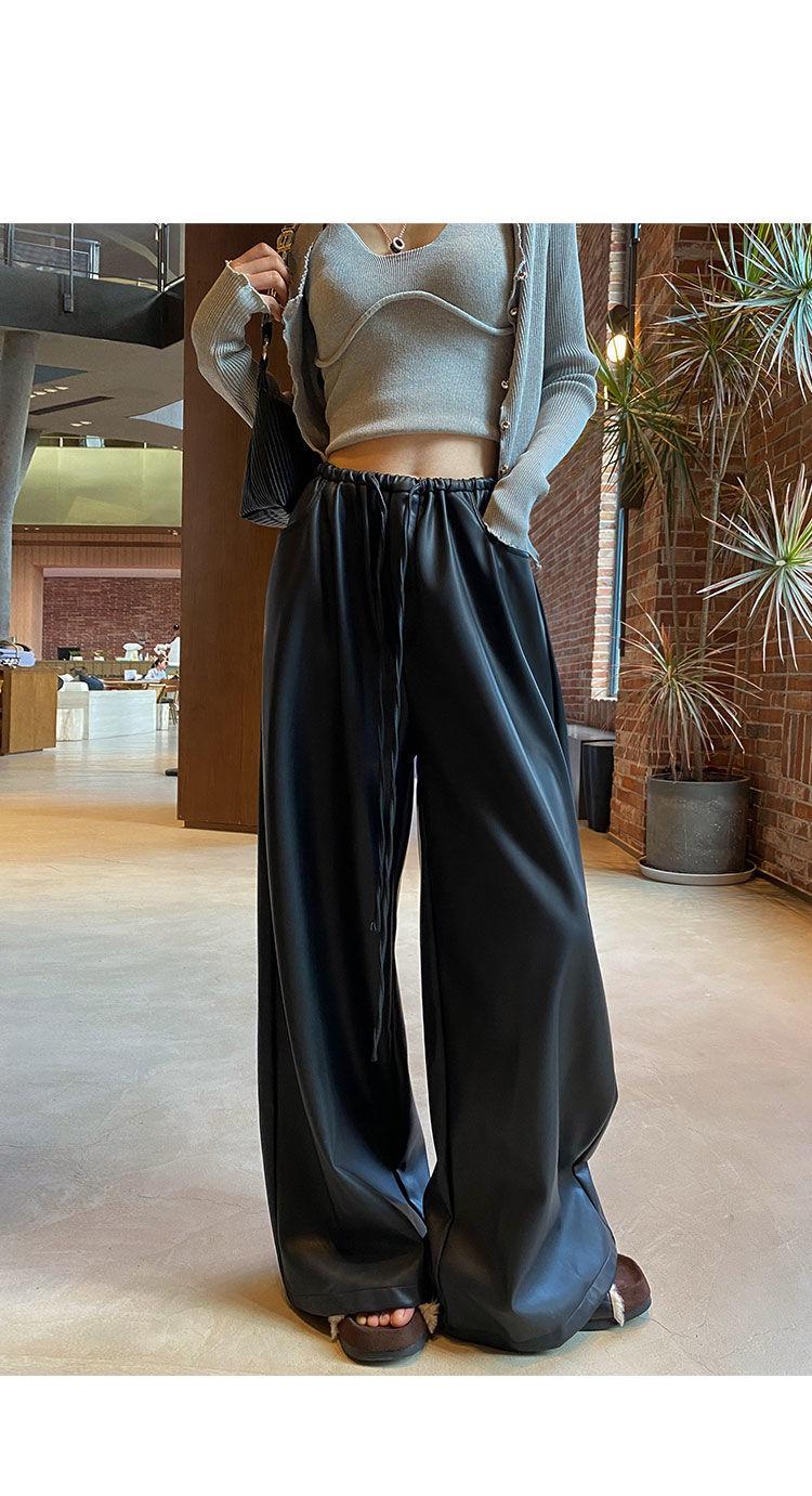 Pantalones de Cuero Negros de Pierna Ancha para Mujer Otoño e Invierno 2025 Nuevo Cuero Pu Mate Pantalones Casuales Sueltos Adelgazantes de Pierna Recta Largos hasta el Piso