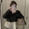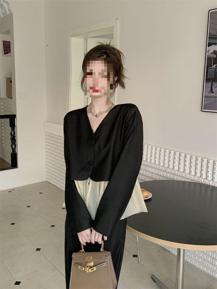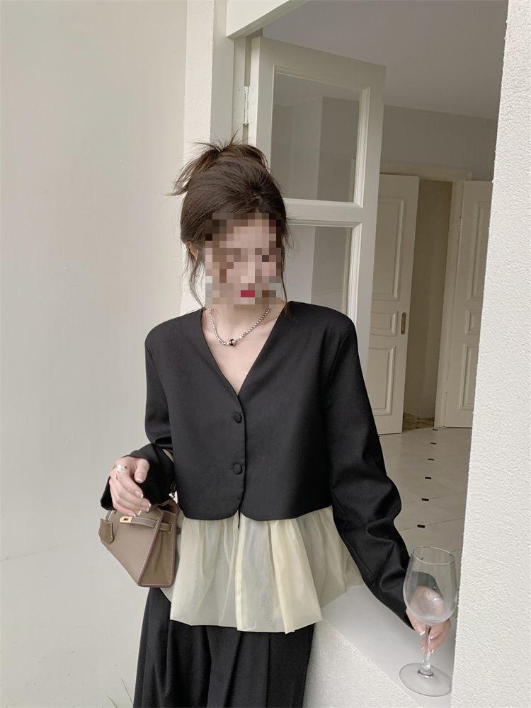 Conjunto de otoño temprano estilo pequeña fragancia traje negro abrigo de alta gama temperamento capaz ropa de mujer 2025 nueva moda