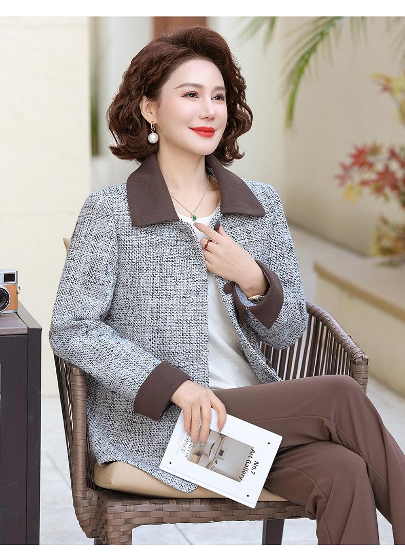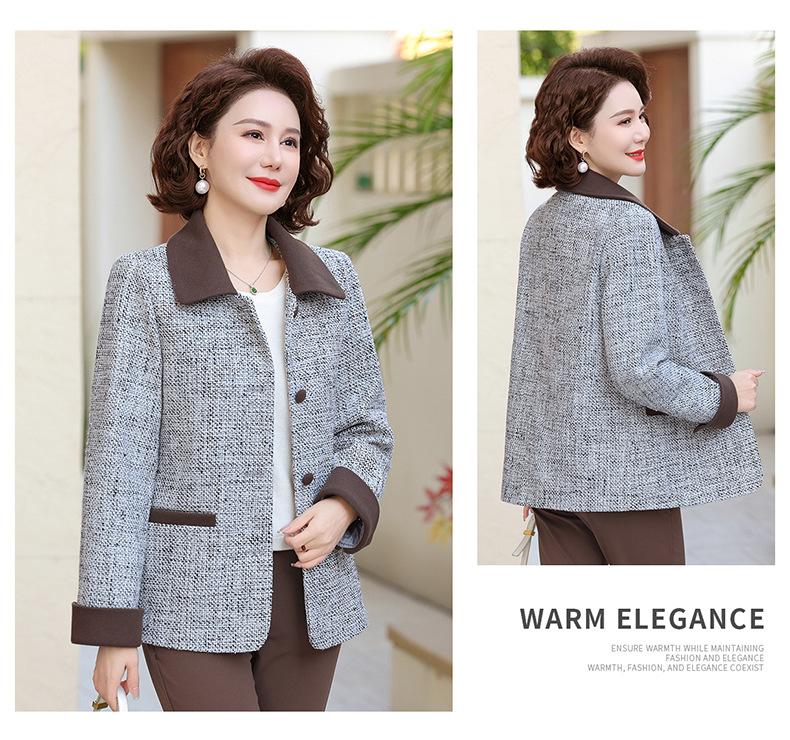 2025 Nuevo Estilo Ropa de Otoño para Madre Abrigo Estilo Pequeño Fragante Chaqueta de Moda de Primavera y Otoño para Mujeres de Mediana Edad y Mayores Top Temperamental que Reduce la Edad