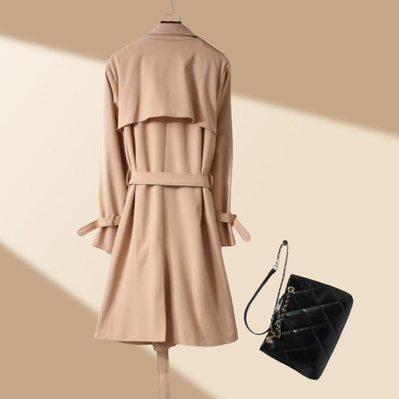 Cortavientos de Talla Grande Estilo Coreano para Mujer de Largo Medio 2025 Primavera y Otoño Nuevo Estilo Pequeño Popular Estilo Británico Ropa Exterior Chaqueta por Encima de la Rodilla
