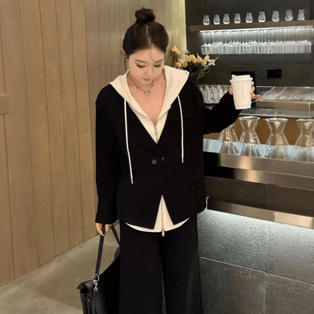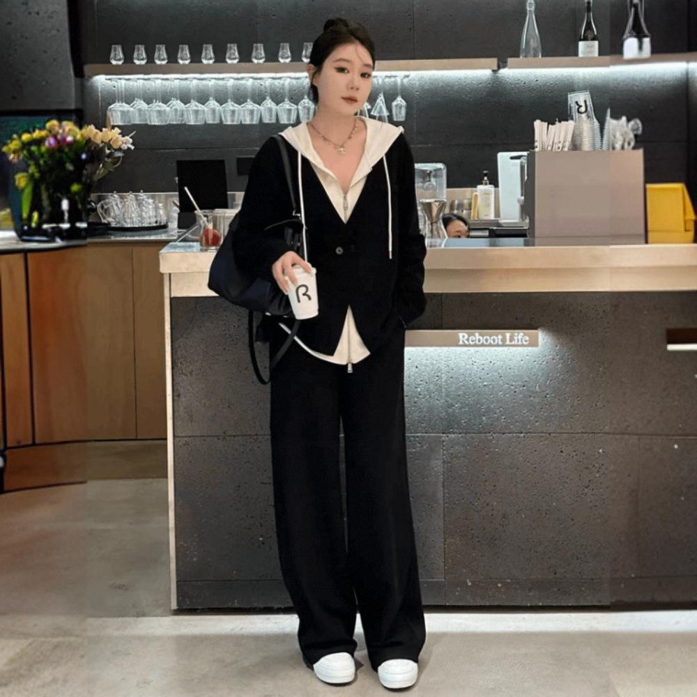 Conjunto de dos piezas de alta gama de primavera y otoño para mujer de talla grande, moderno y de estilo extranjero, conjunto adelgazante para mujeres de 300 libras