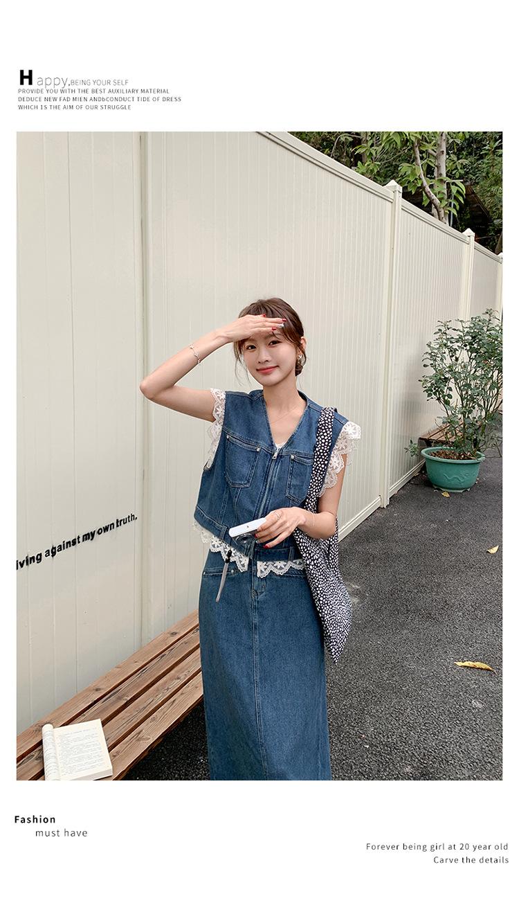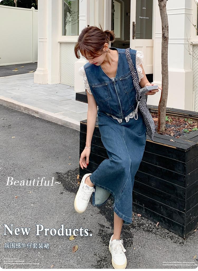 Conjunto para Mujer Petite 2025 Verano Nuevo Reductor de Edad Versátil Cómodo Encaje Chaleco Falda Conjunto de Dos Piezas