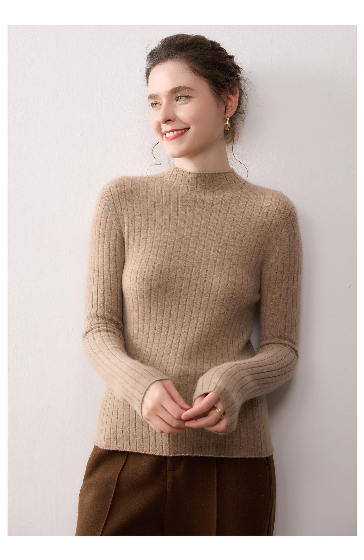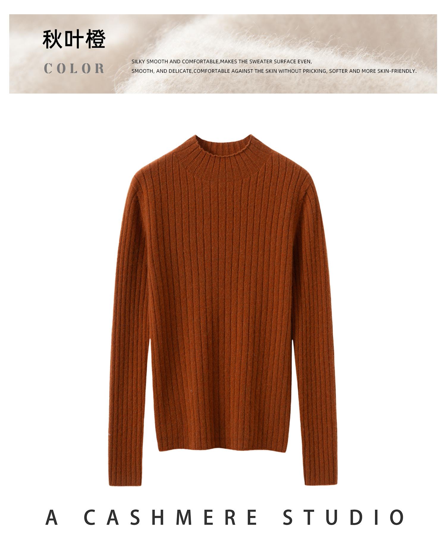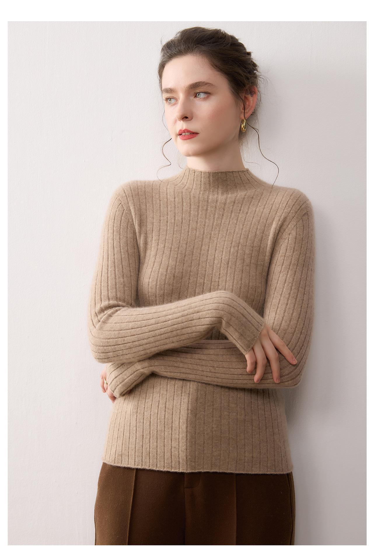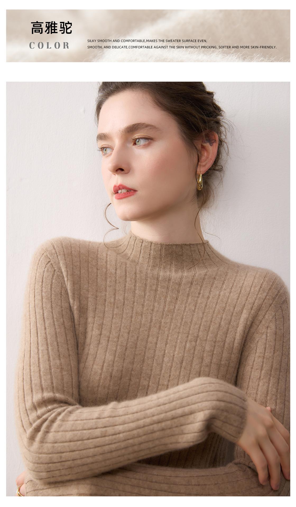Suéter de cachemira para mujer 100% cachemira pura nueva moda jersey de cuello semi-alto versátil color sólido tejido suéter cálido