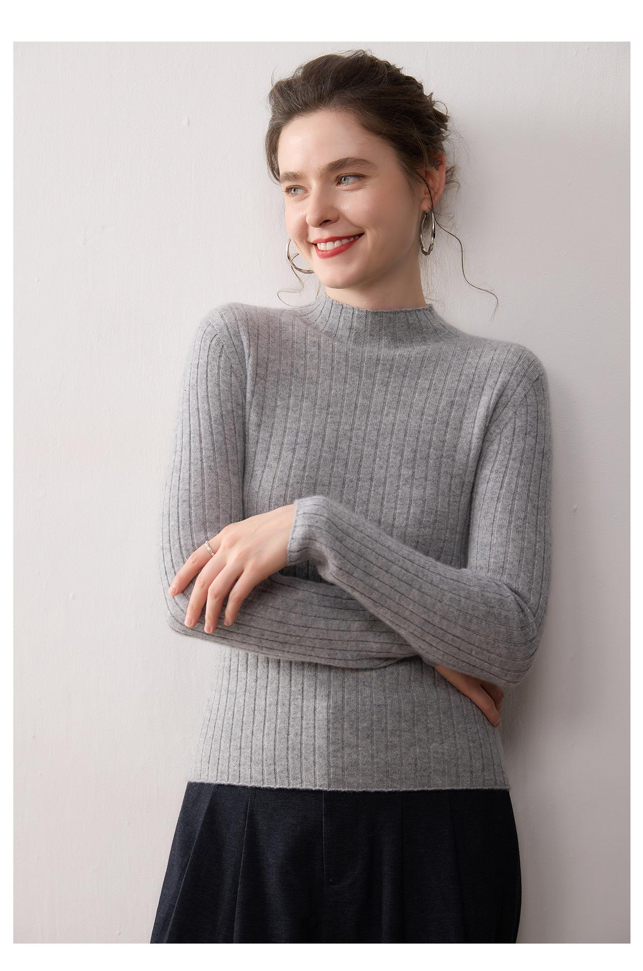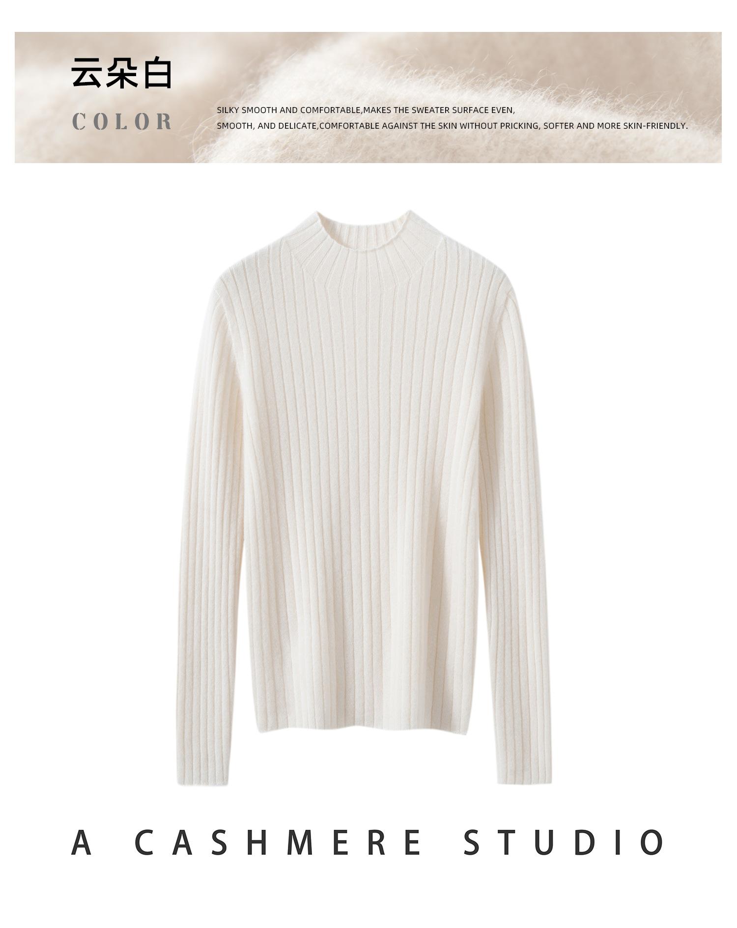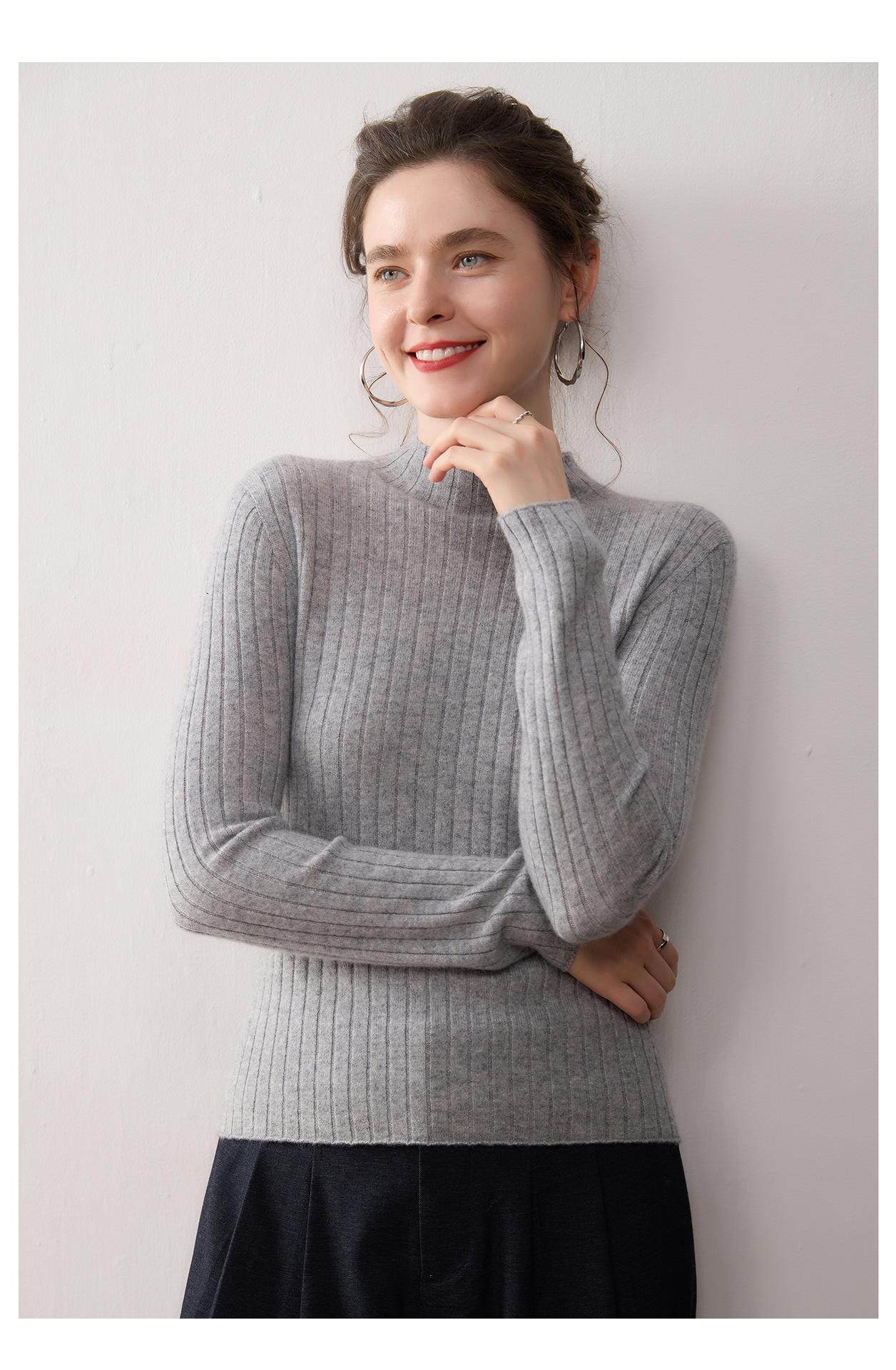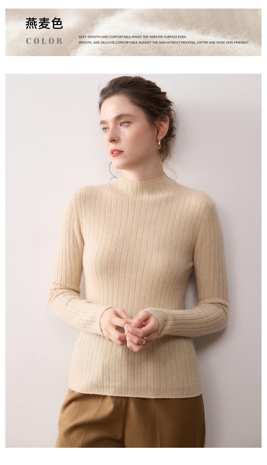 Suéter de cachemira para mujer 100% cachemira pura nueva moda jersey de cuello semi-alto versátil color sólido tejido suéter cálido