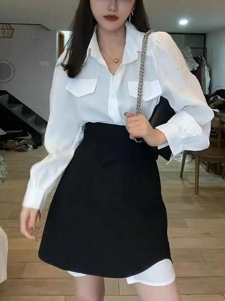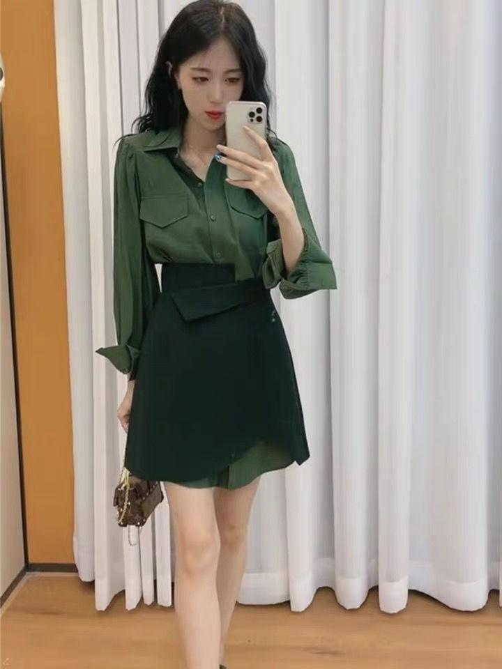 White shirt dress, Shirt Dress Green, Khaki shirt dress, 0399 Khaki Short Skirt, 0399 Green Skirt, 0399 Black ...