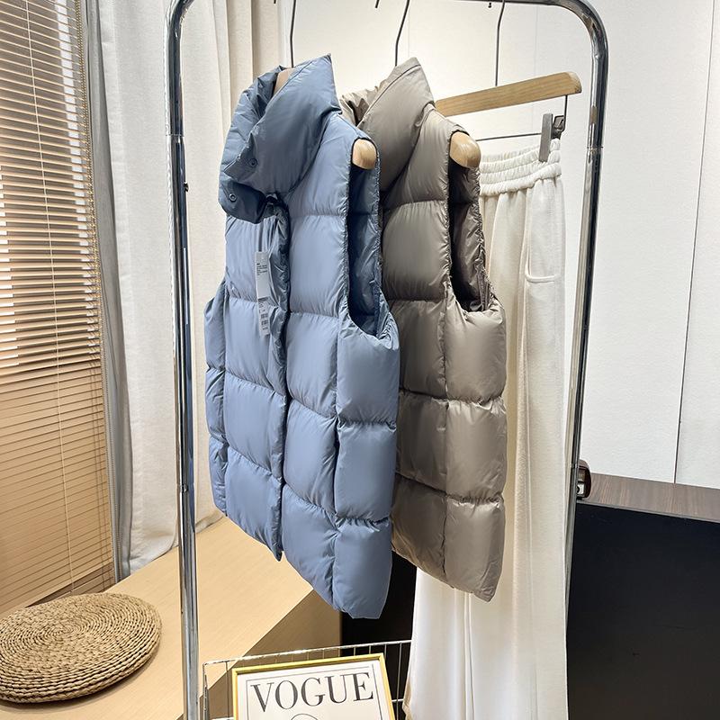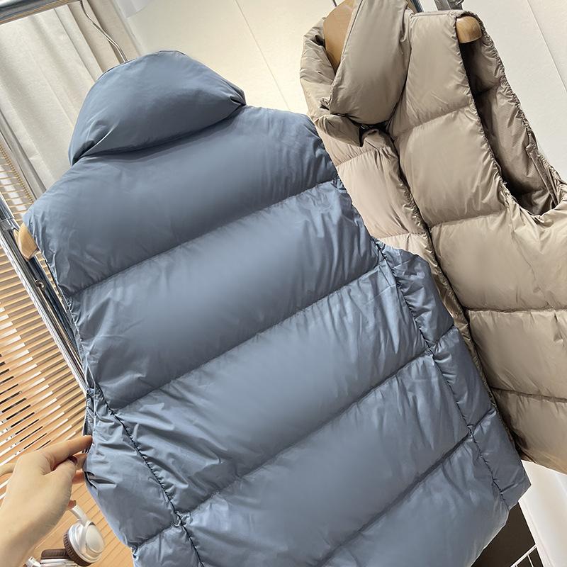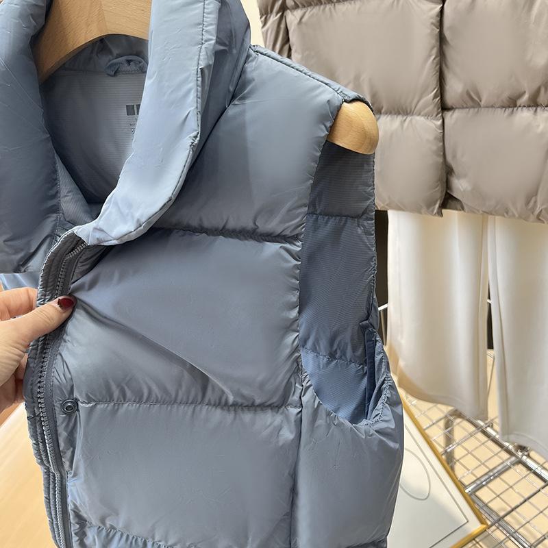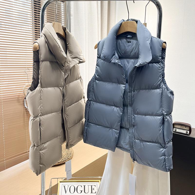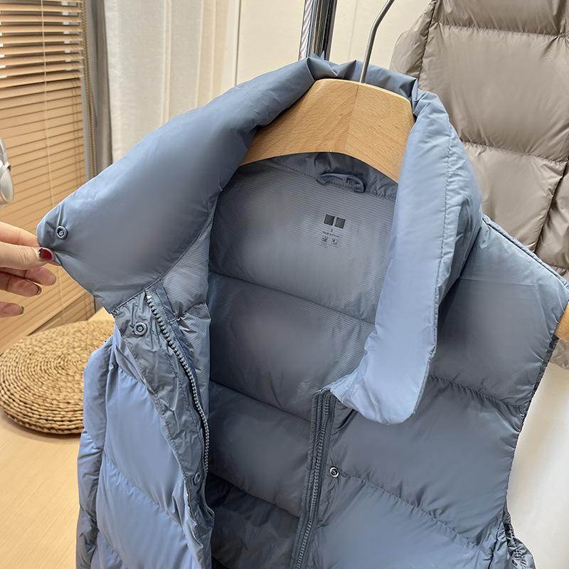 ¡Estilo Japonés! Otoño/Invierno Chaleco de Plumón para Mujer Cálido y Esponjoso Plumón de Pato Blanco Cuello Alto Acolchado Exterior sin Mangas para Combinar Fácil