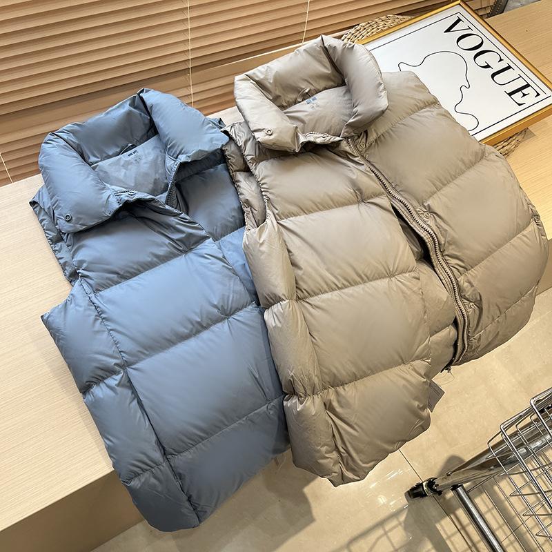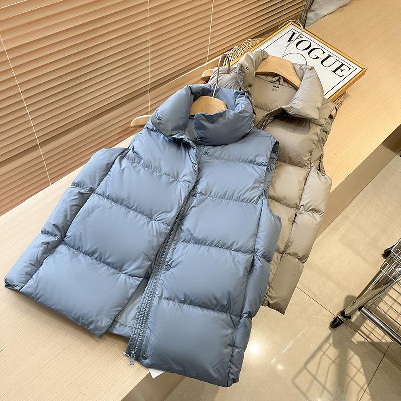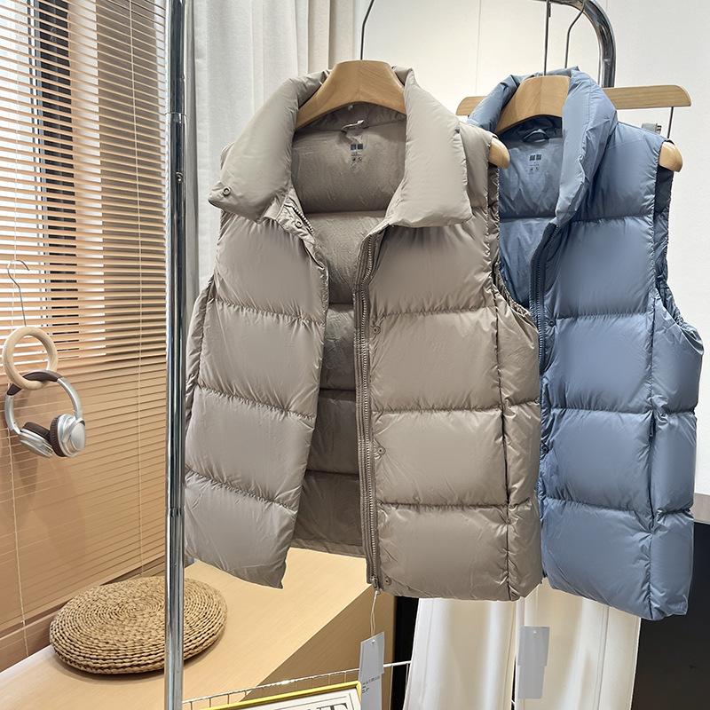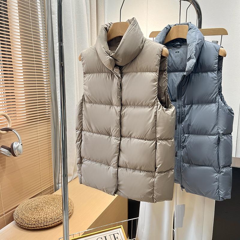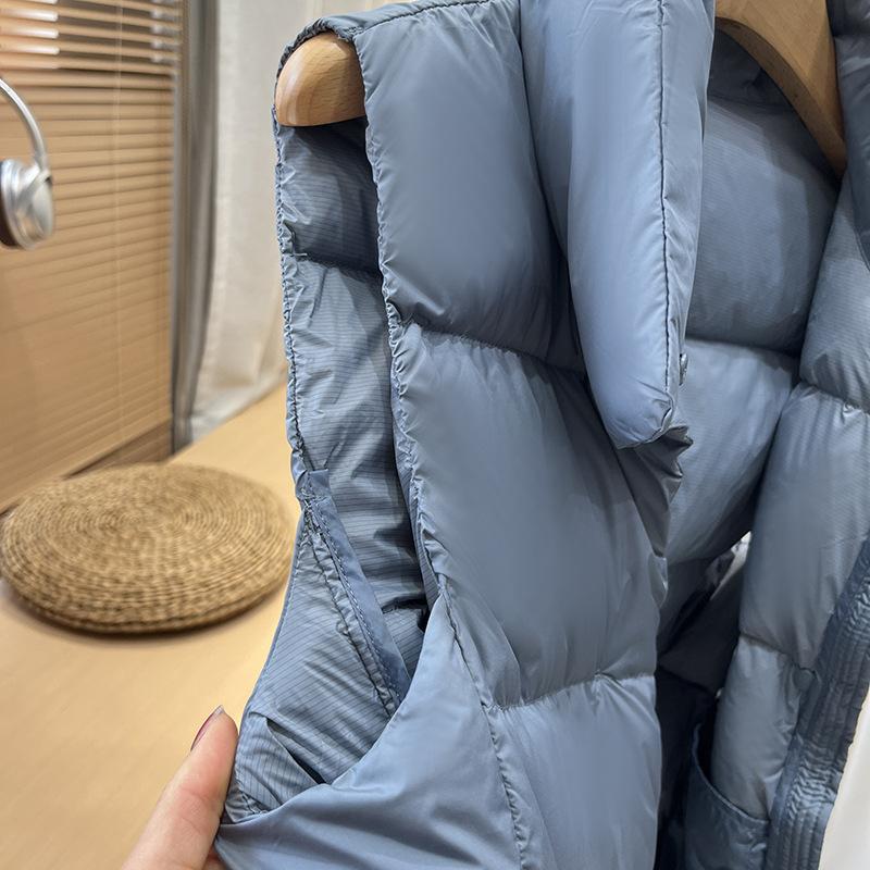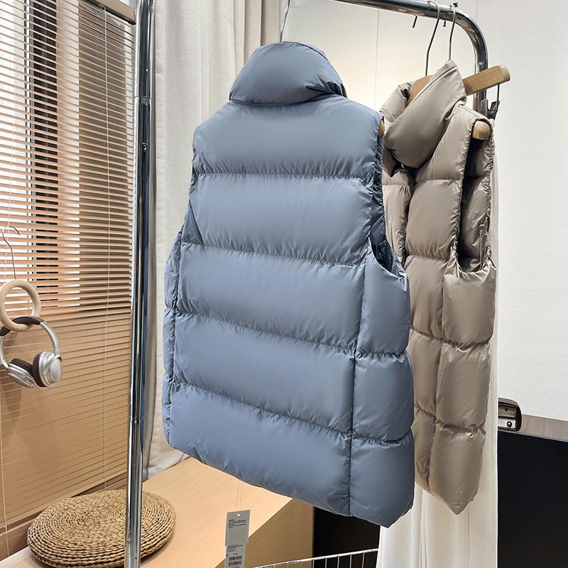 ¡Estilo Japonés! Otoño/Invierno Chaleco de Plumón para Mujer Cálido y Esponjoso Plumón de Pato Blanco Cuello Alto Acolchado Exterior sin Mangas para Combinar Fácil