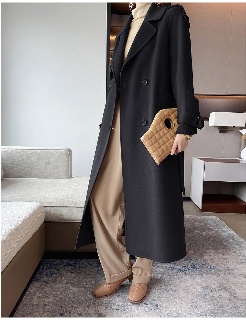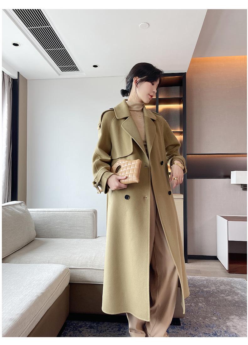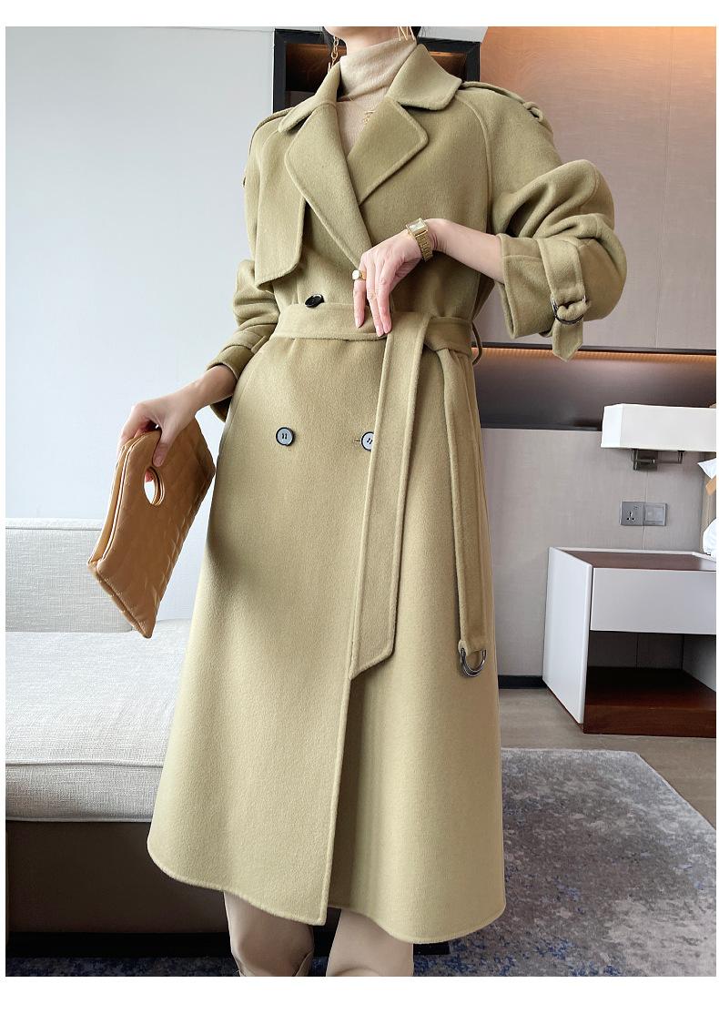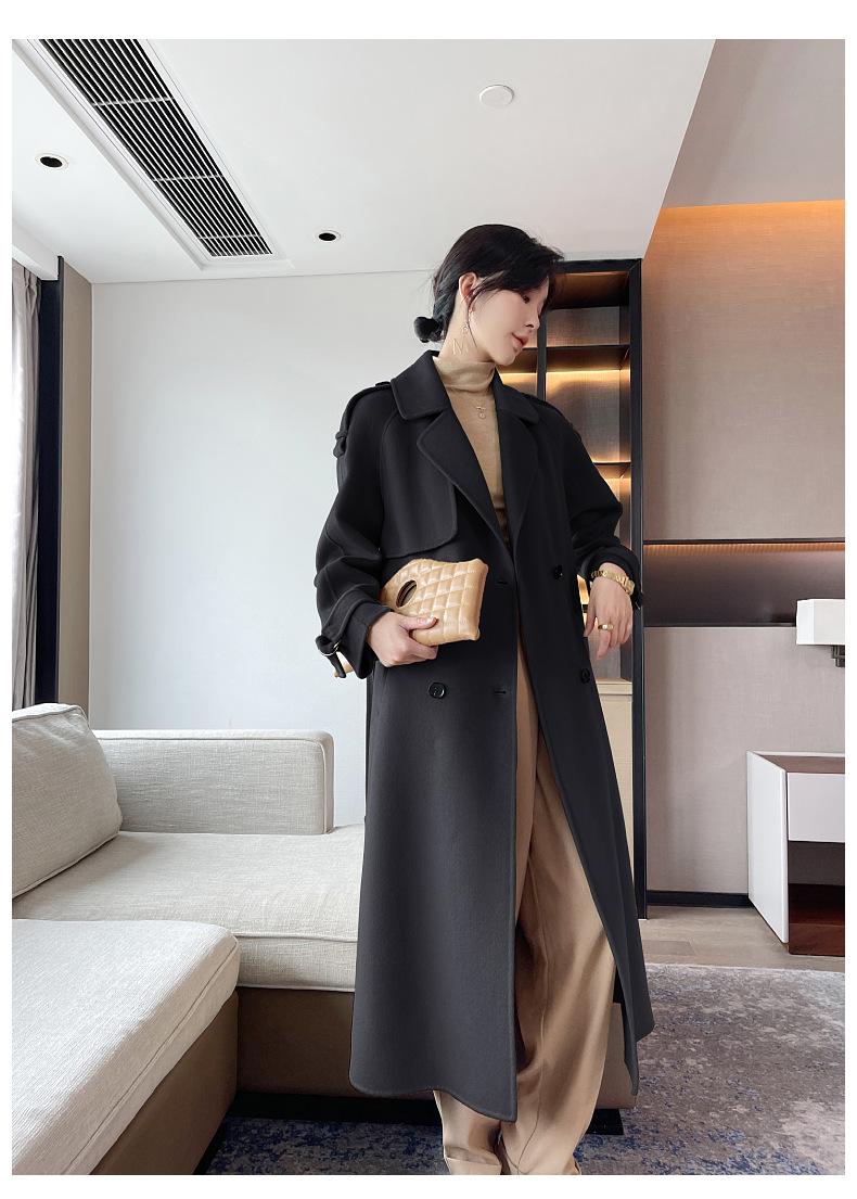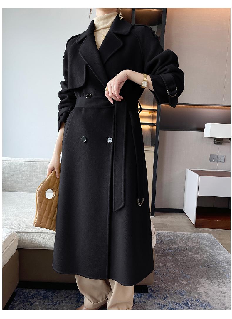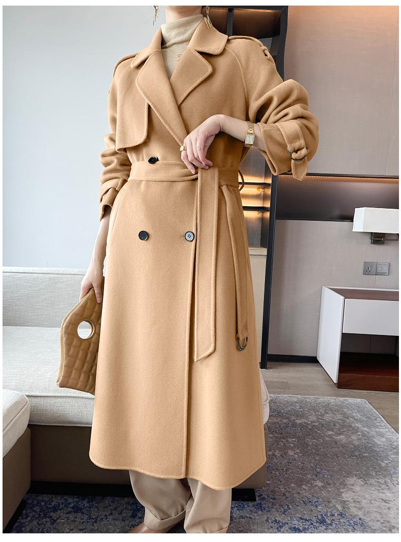 Abrigo Clásico de Invierno Nuevo 2025 Versátil de Cachemira para Mujer Abrigo de Cachemira de Doble Faz Solapa de Traje de Doble Botonadura Largo Medio