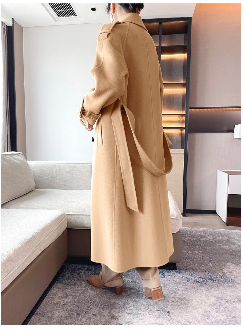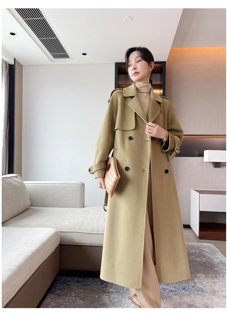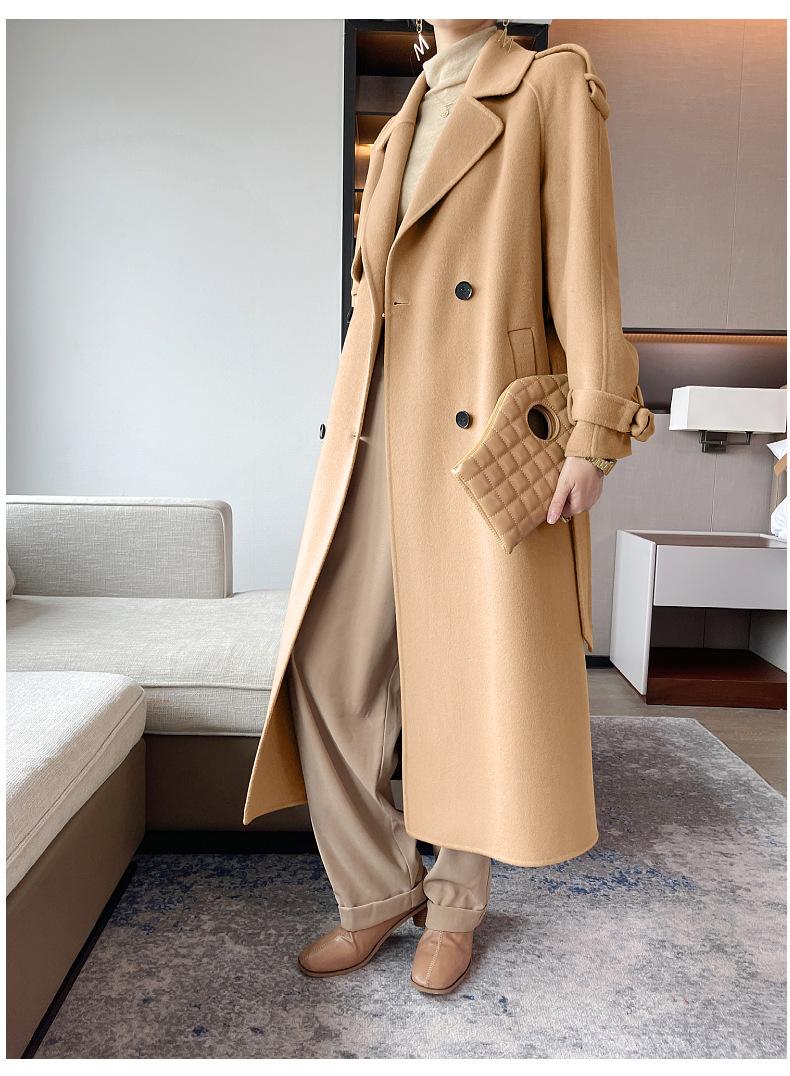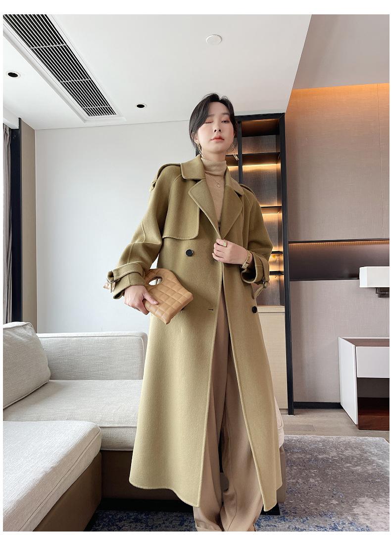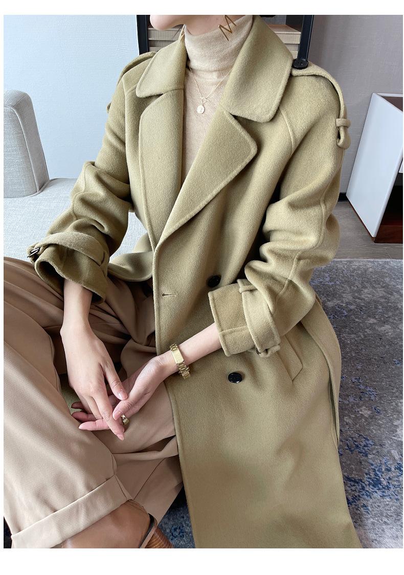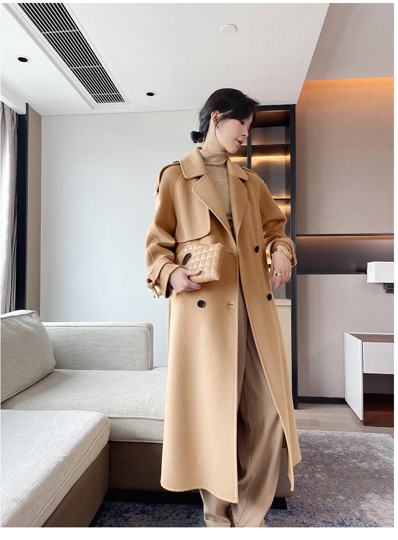 Abrigo Clásico de Invierno Nuevo 2025 Versátil de Cachemira para Mujer Abrigo de Cachemira de Doble Faz Solapa de Traje de Doble Botonadura Largo Medio