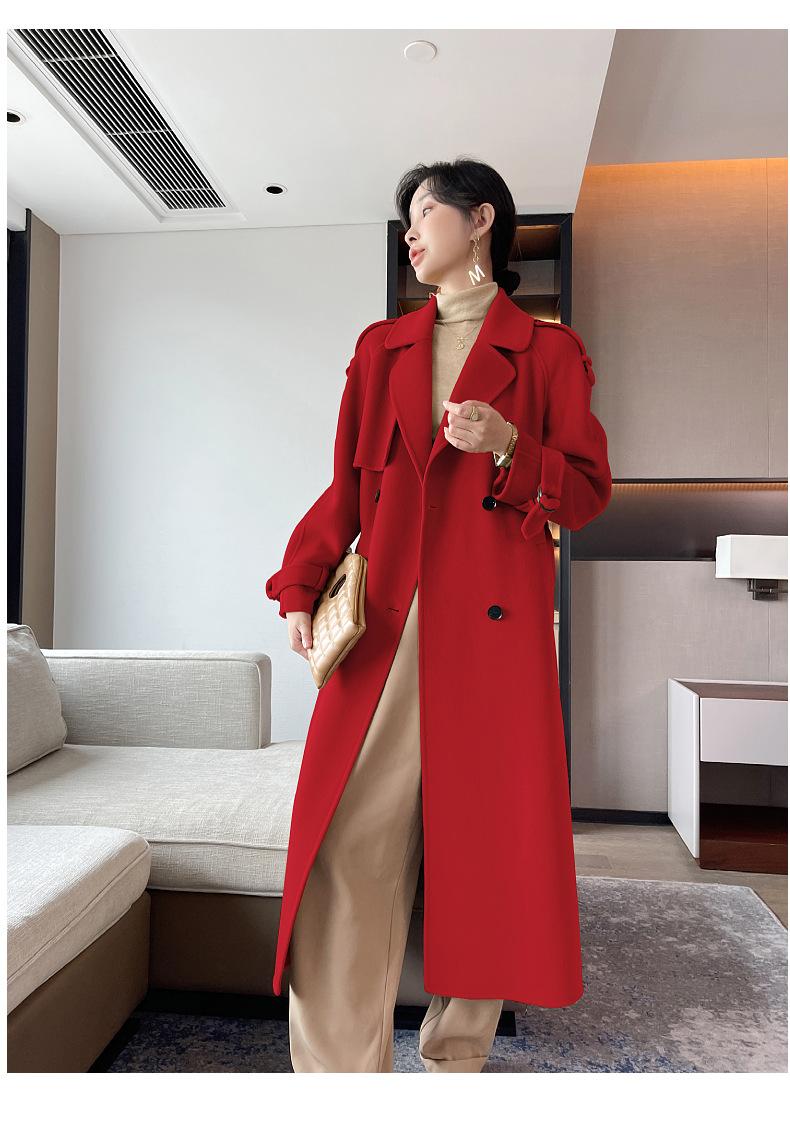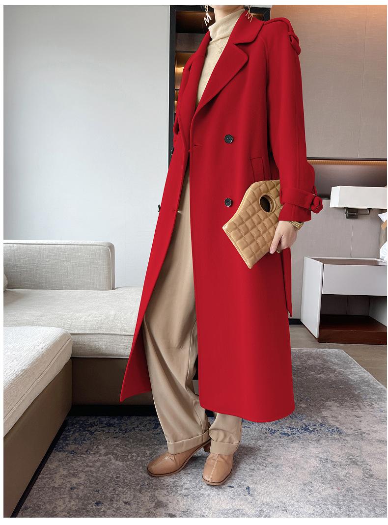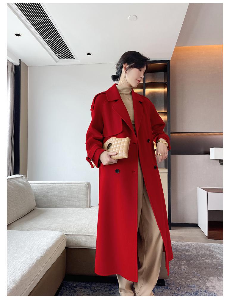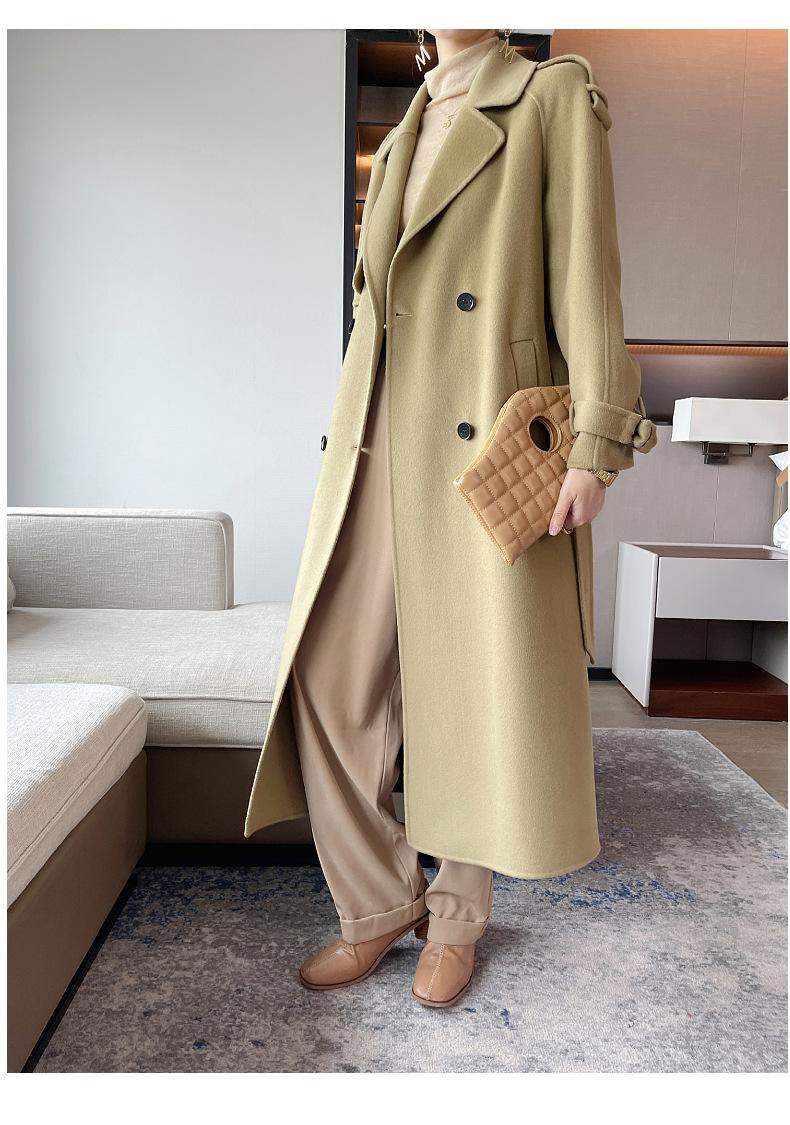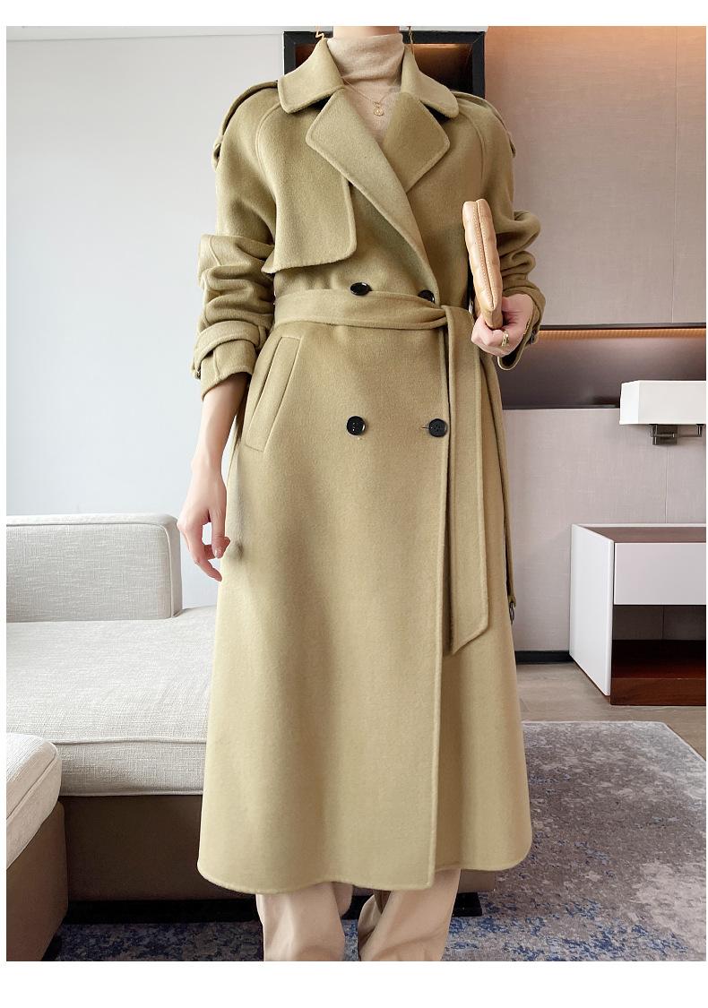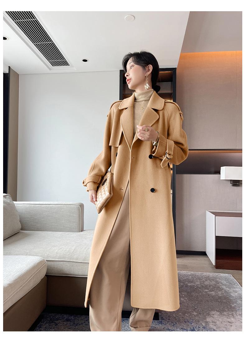 Abrigo Clásico de Invierno Nuevo 2025 Versátil de Cachemira para Mujer Abrigo de Cachemira de Doble Faz Solapa de Traje de Doble Botonadura Largo Medio