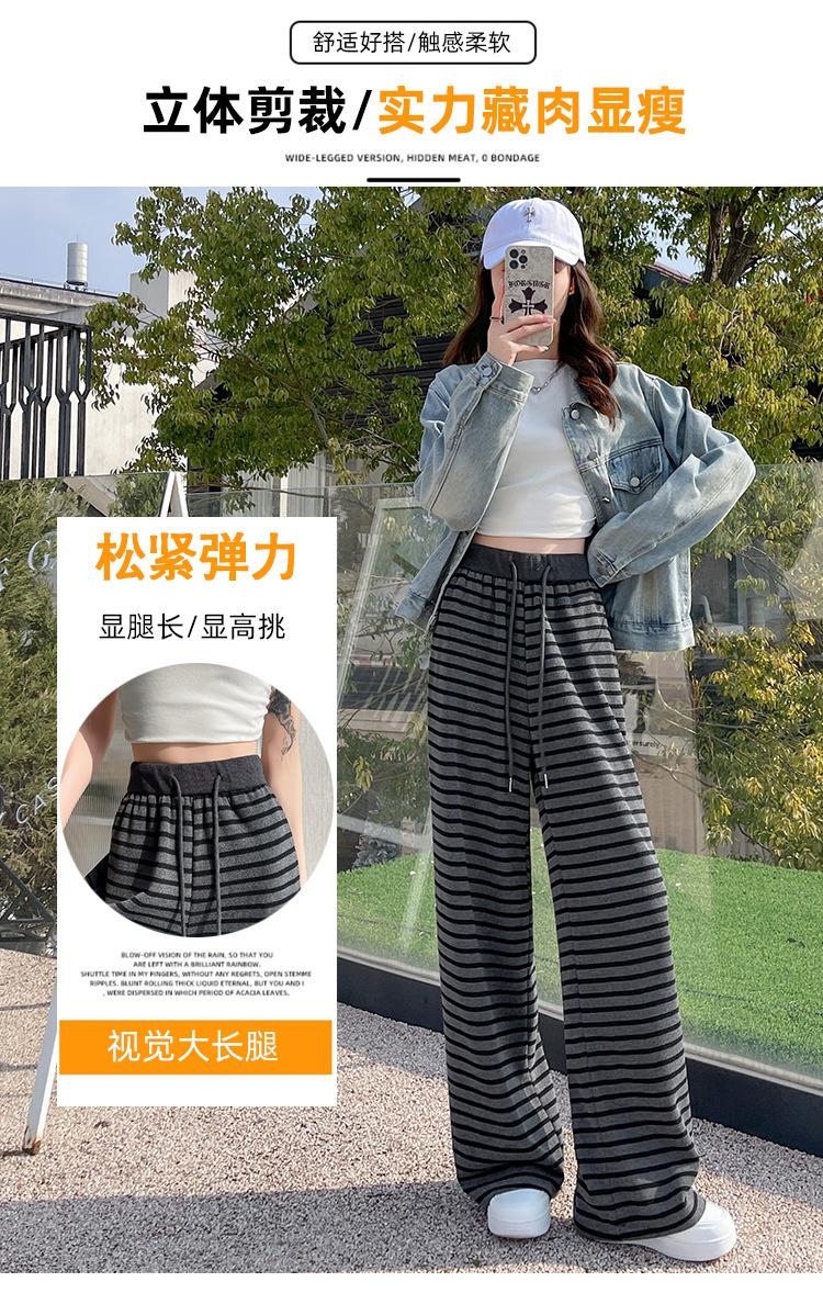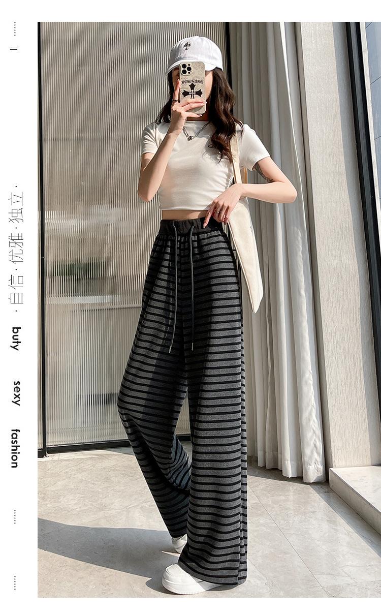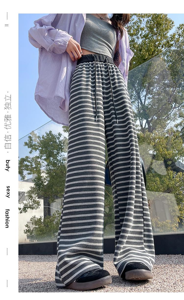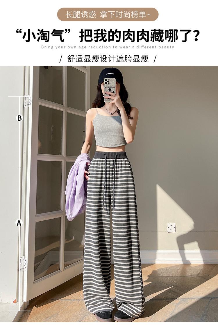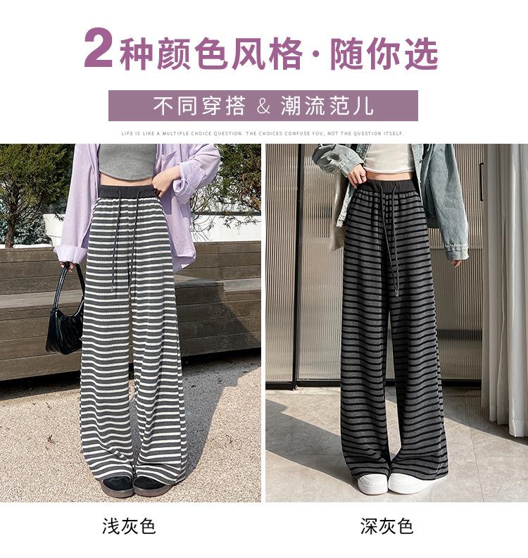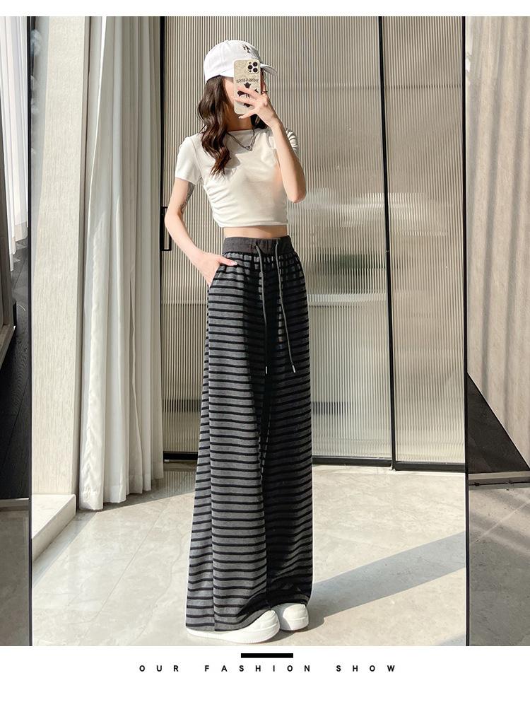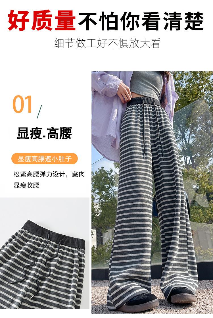 2025 Nueva Moda Pantalones de Pierna Ancha a Rayas Mujer Cintura Elástica Cordón Cintura Alta Corte Relajado Adelgazantes Pantalones de Pierna Recta A6919
