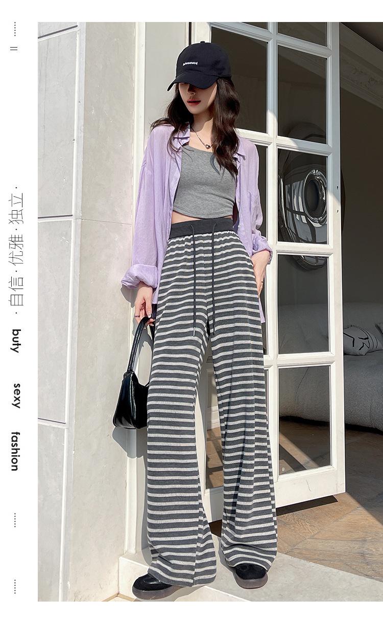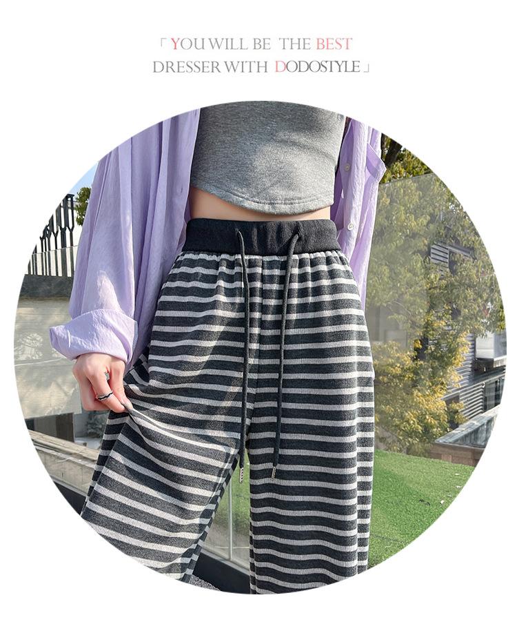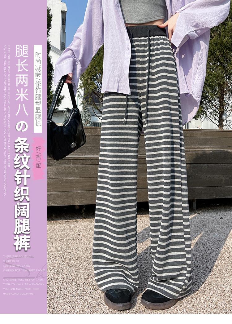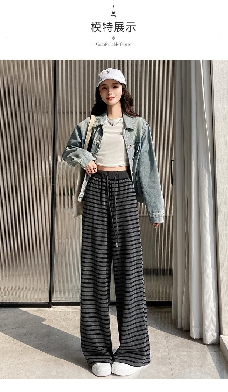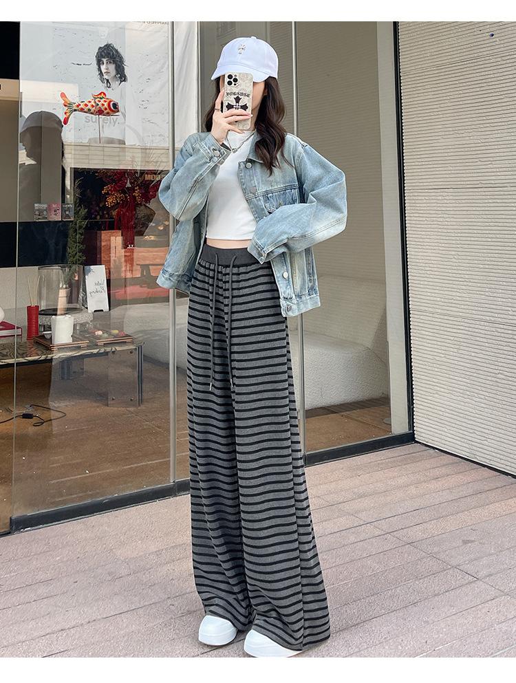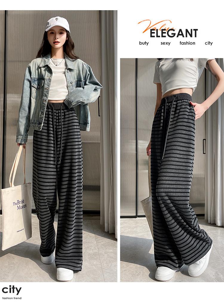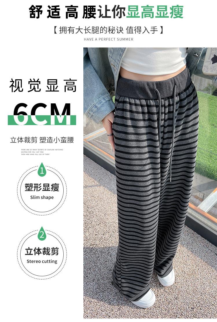 2025 Nueva Moda Pantalones de Pierna Ancha a Rayas Mujer Cintura Elástica Cordón Cintura Alta Corte Relajado Adelgazantes Pantalones de Pierna Recta A6919