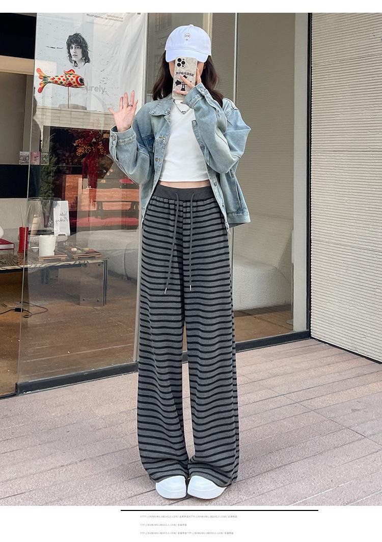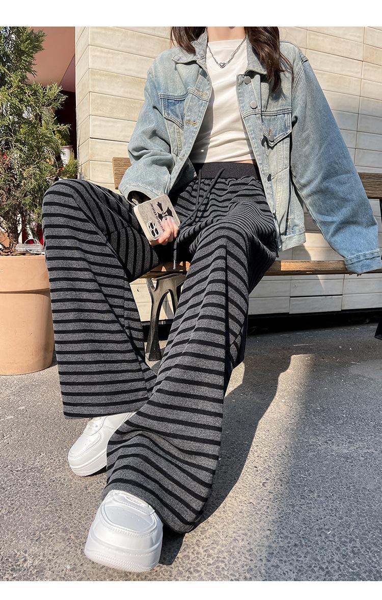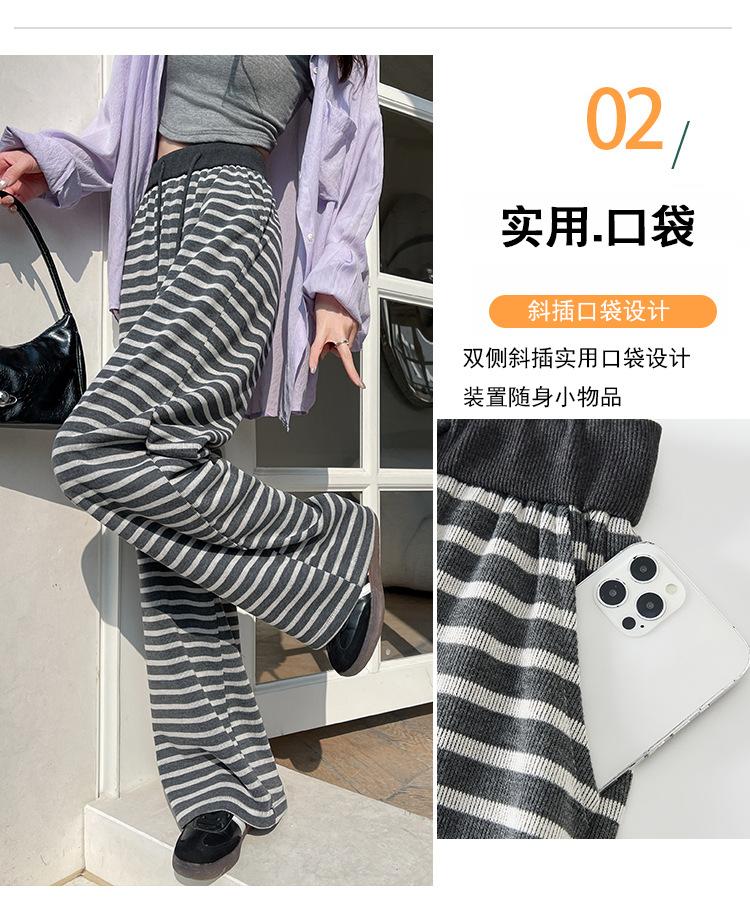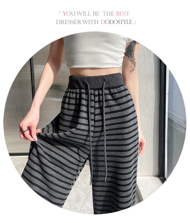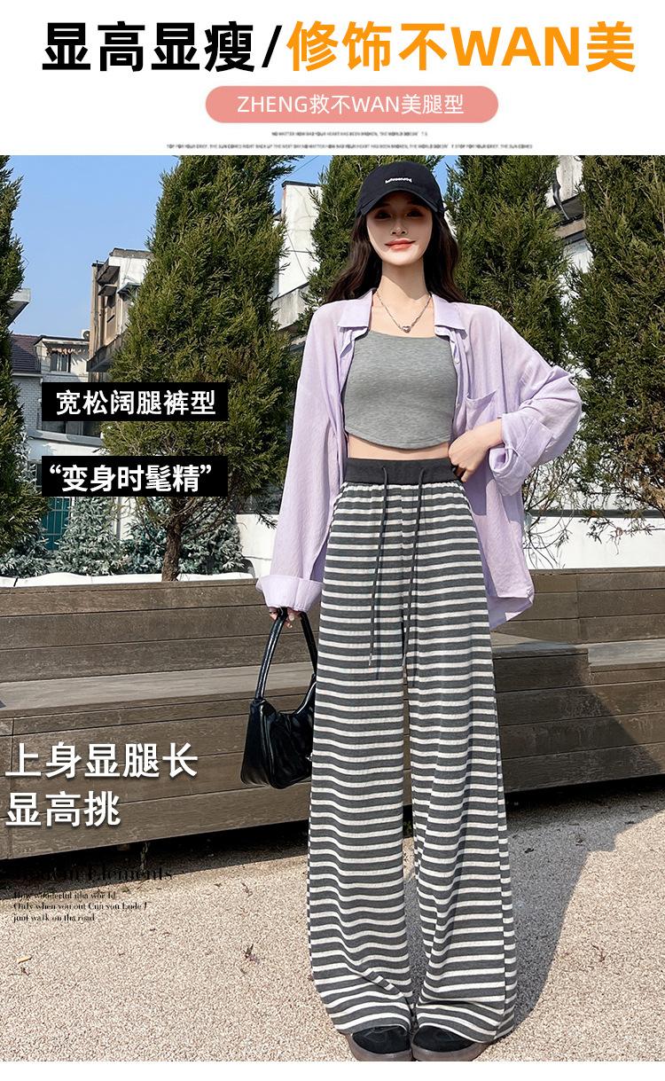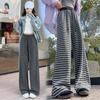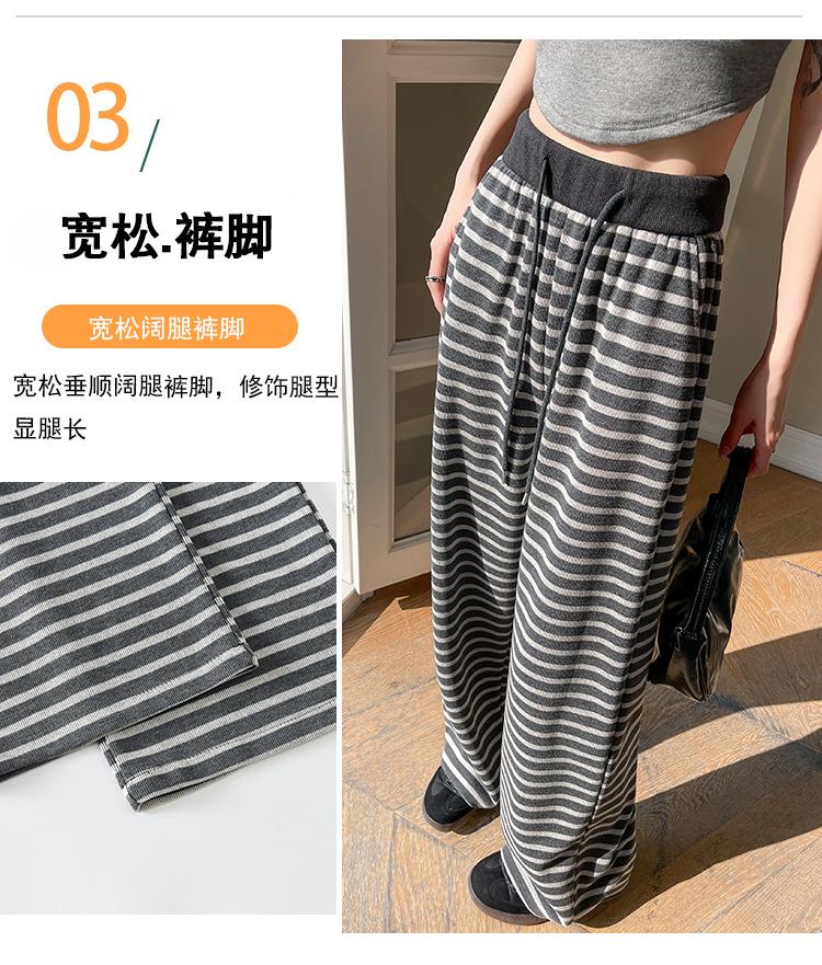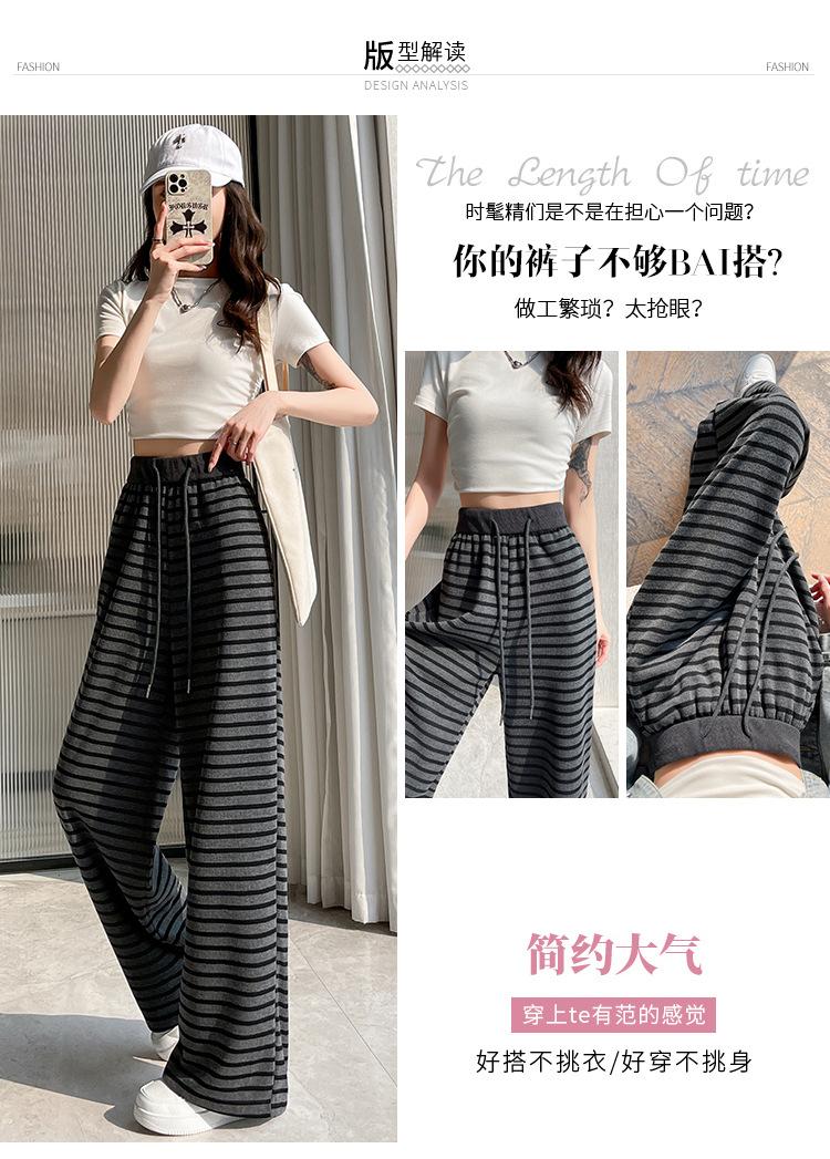 2025 Nueva Moda Pantalones de Pierna Ancha a Rayas Mujer Cintura Elástica Cordón Cintura Alta Corte Relajado Adelgazantes Pantalones de Pierna Recta A6919