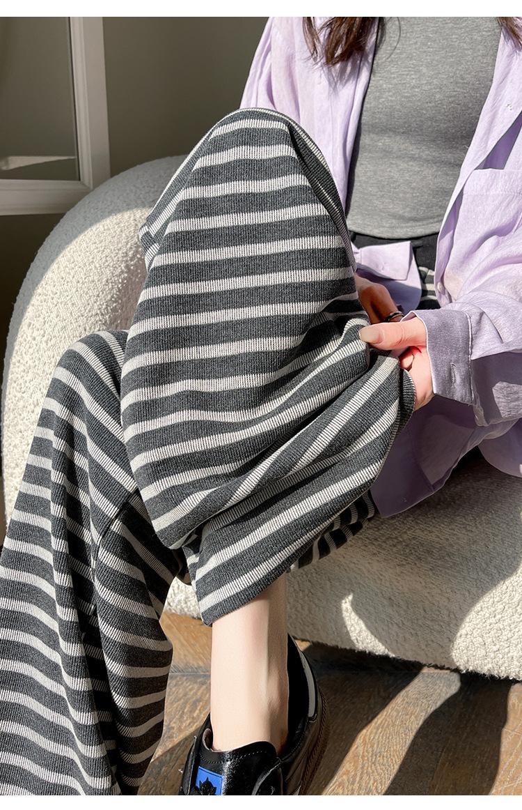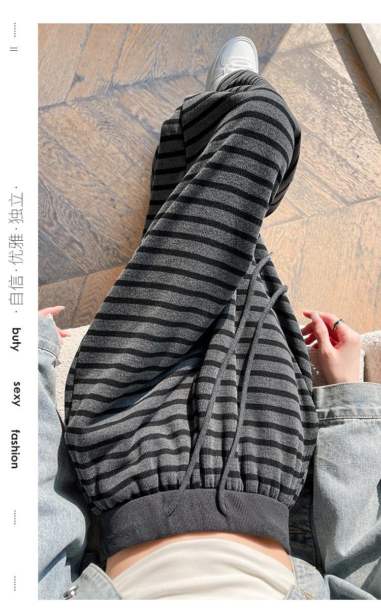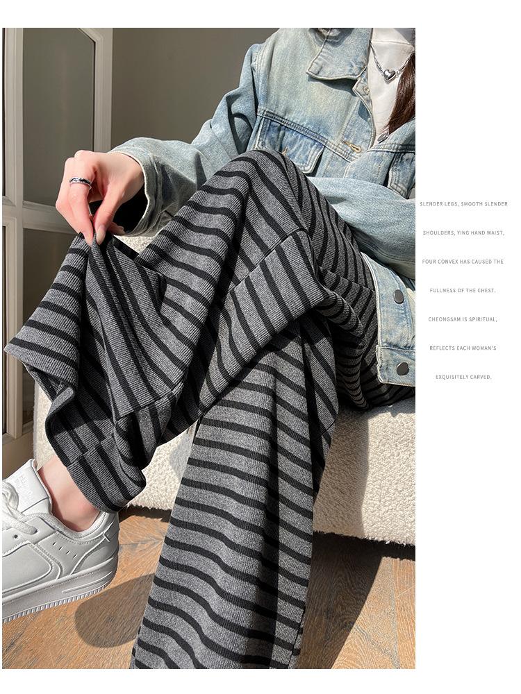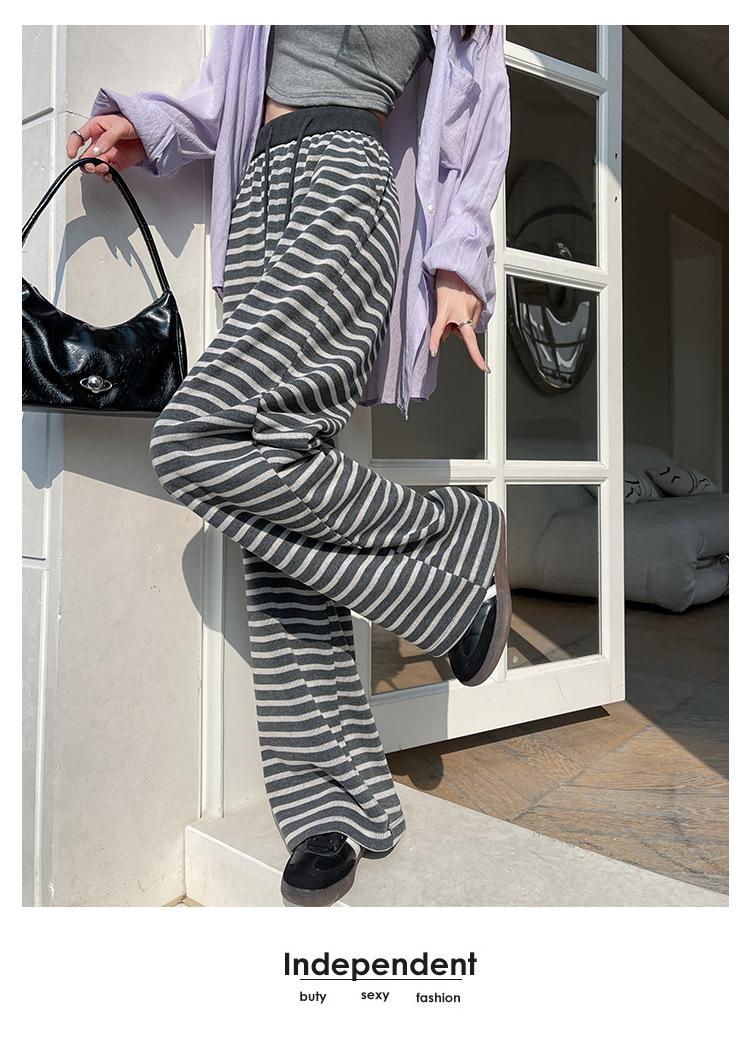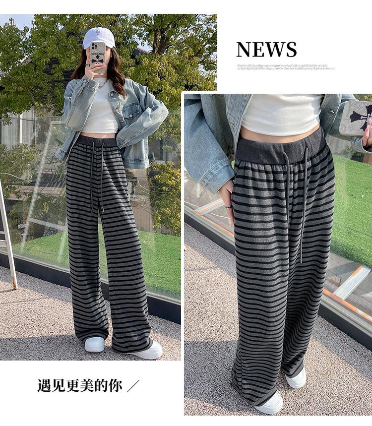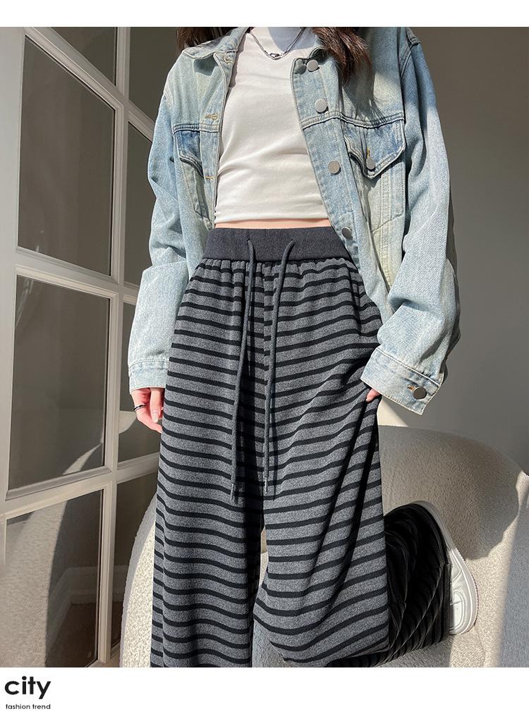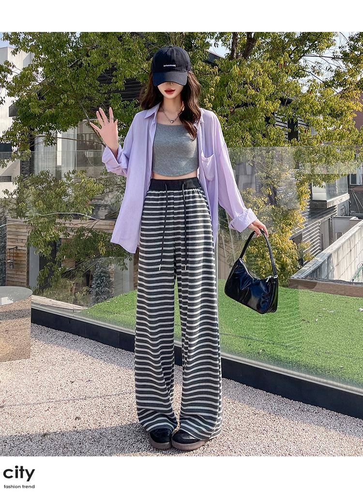 2025 Nueva Moda Pantalones de Pierna Ancha a Rayas Mujer Cintura Elástica Cordón Cintura Alta Corte Relajado Adelgazantes Pantalones de Pierna Recta A6919