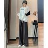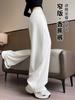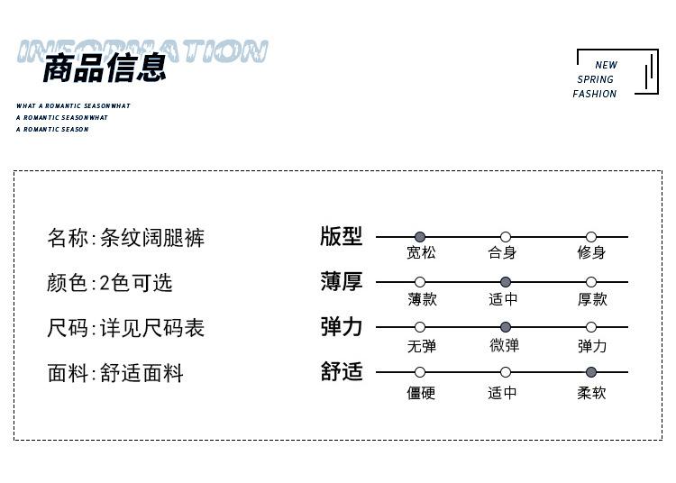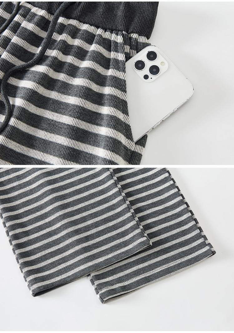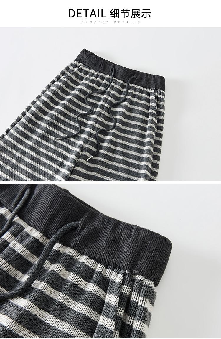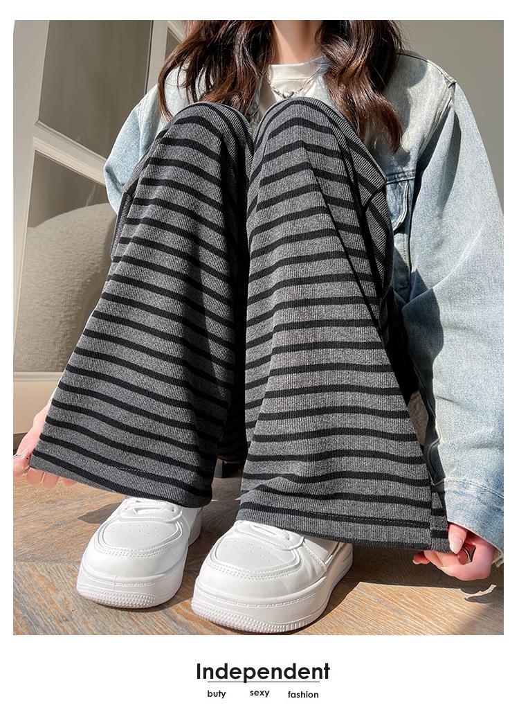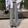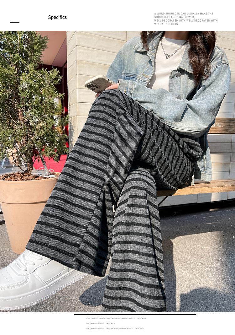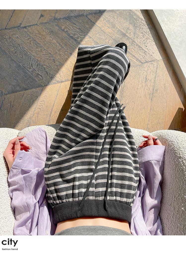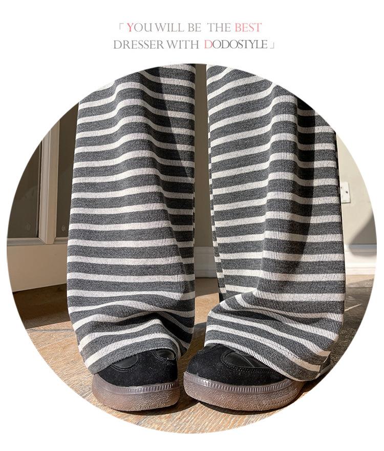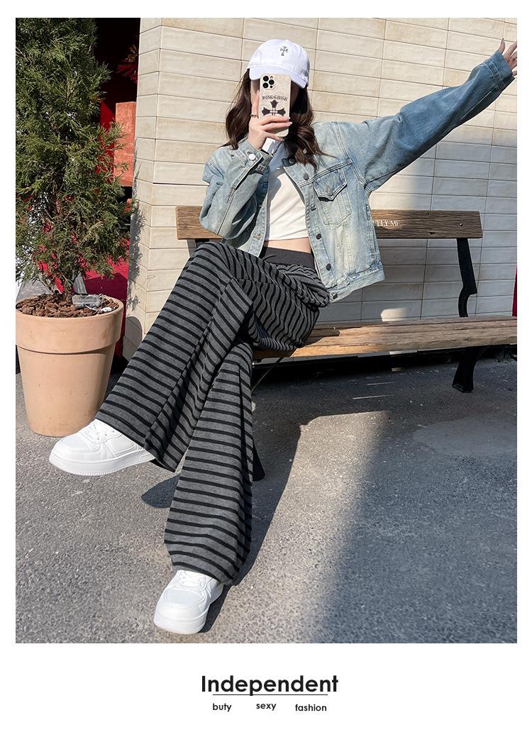 2025 Nueva Moda Pantalones de Pierna Ancha a Rayas Mujer Cintura Elástica Cordón Cintura Alta Corte Relajado Adelgazantes Pantalones de Pierna Recta A6919