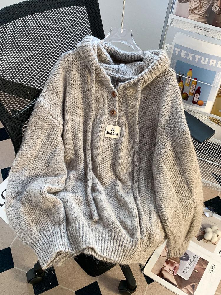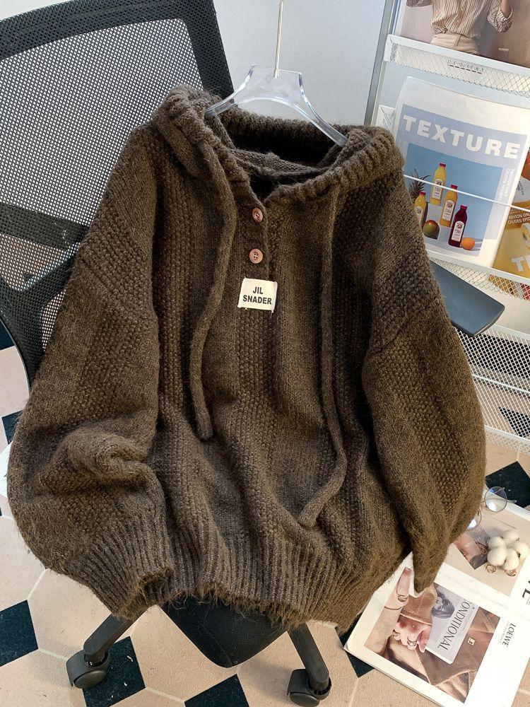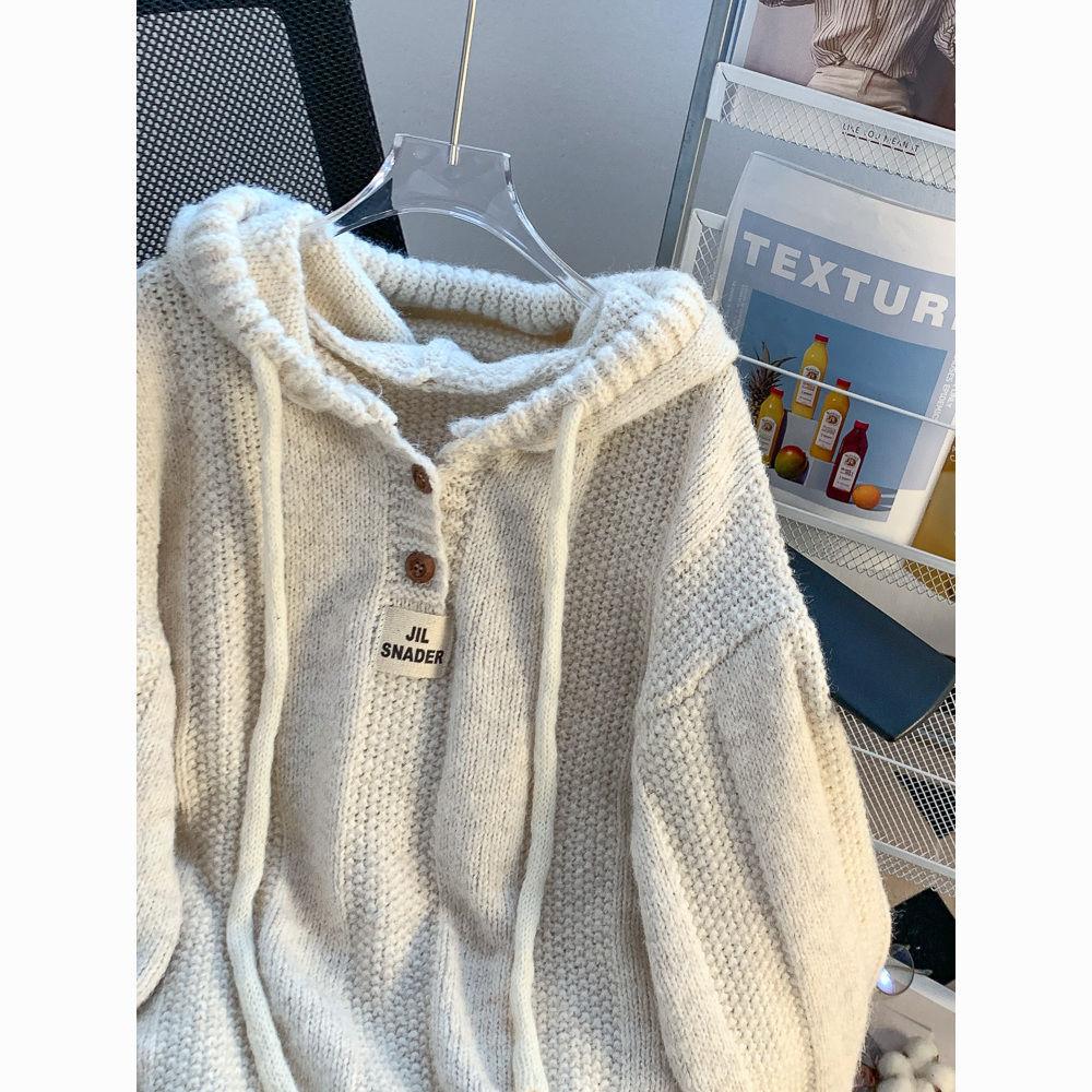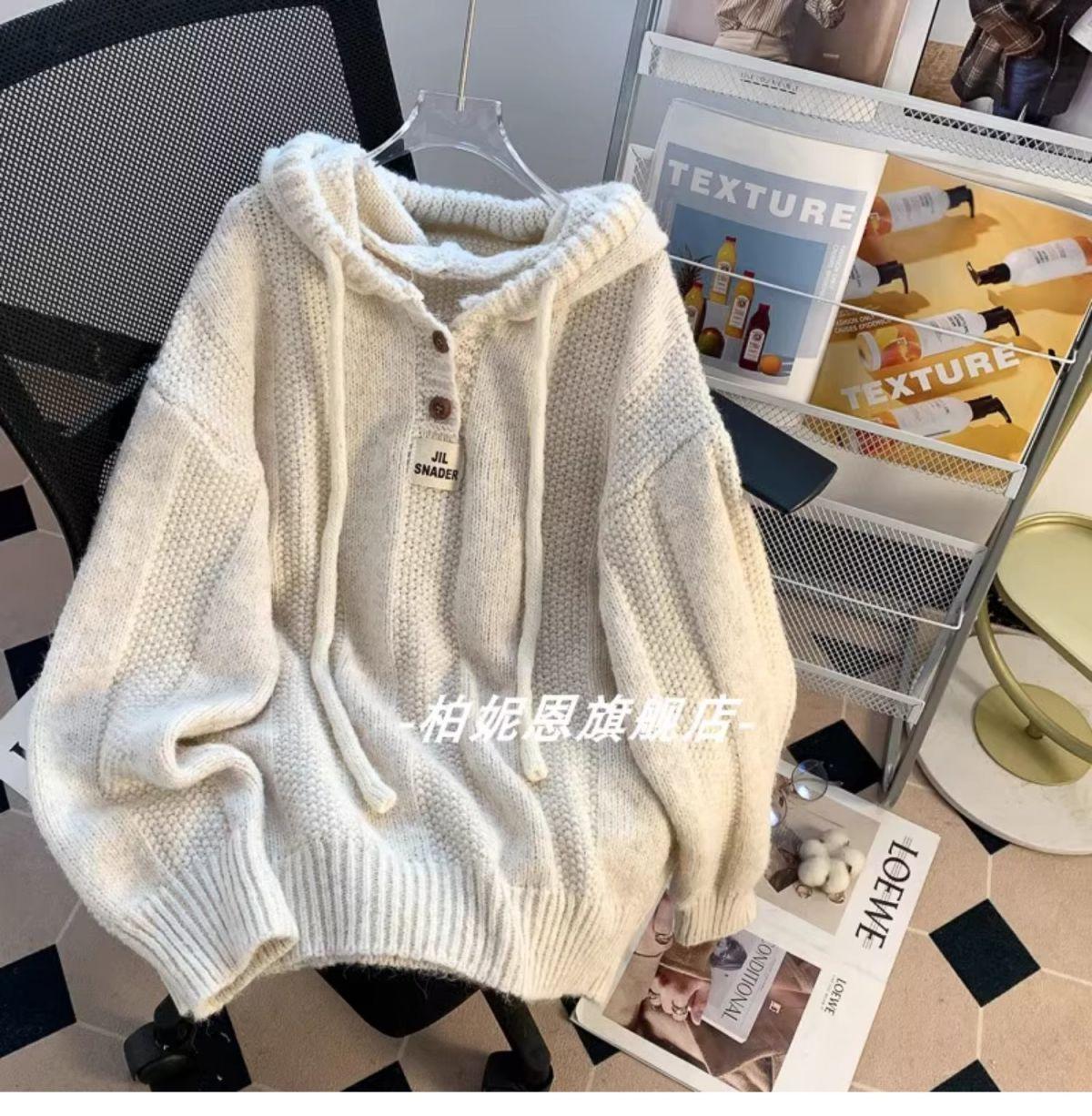 Suéter Holgado con Capucha y Cordón de Estilo Perezoso Sudadera para Mujer Otoño Invierno Ropa Exterior 2025 Top de Punto Coreano para Mujer