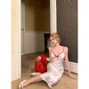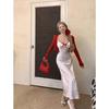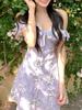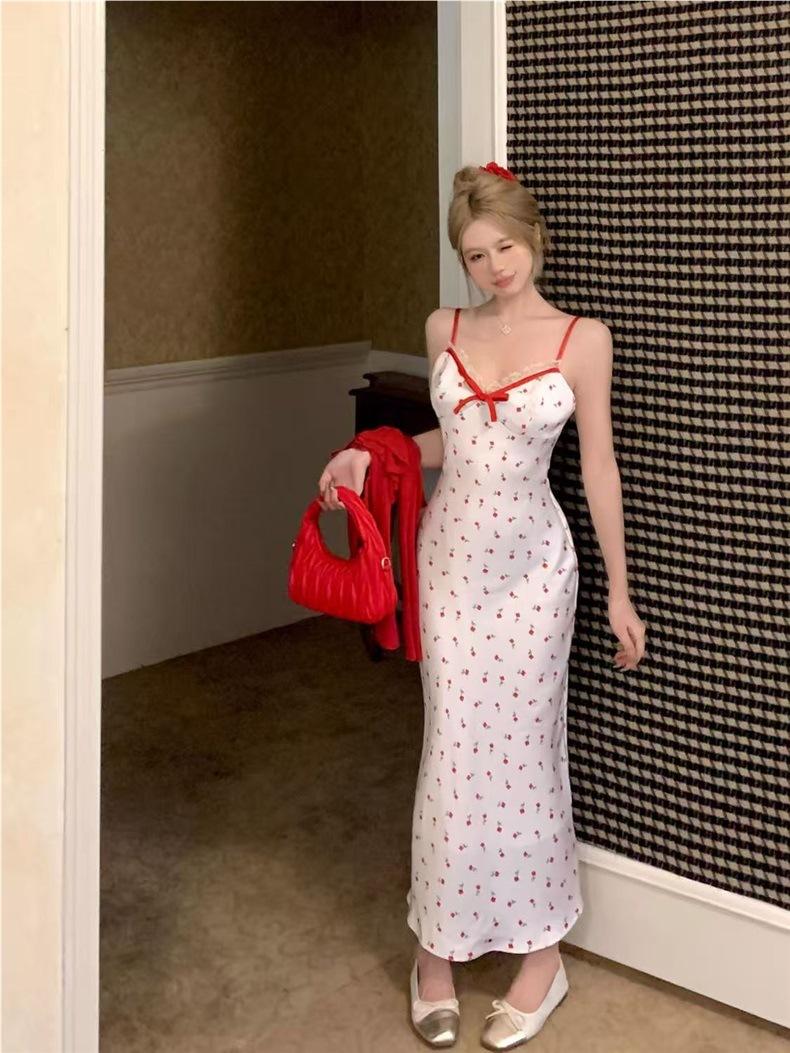 Vestido camisola de diseño floral francés para mujer primavera/verano 2025, corte entallado, ceñido a la cintura, adelgazante, con lazo, conjunto de vestido largo