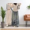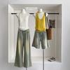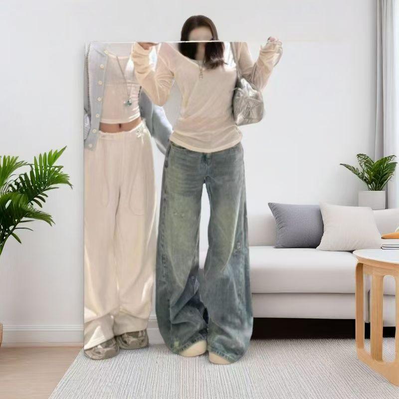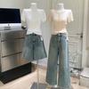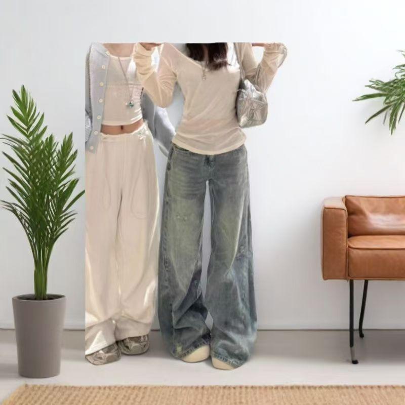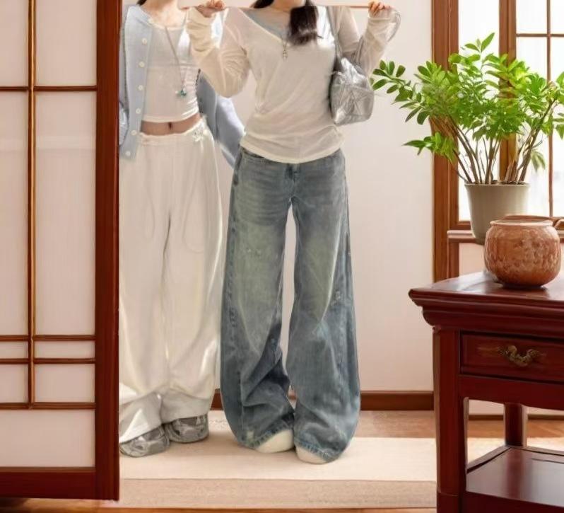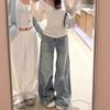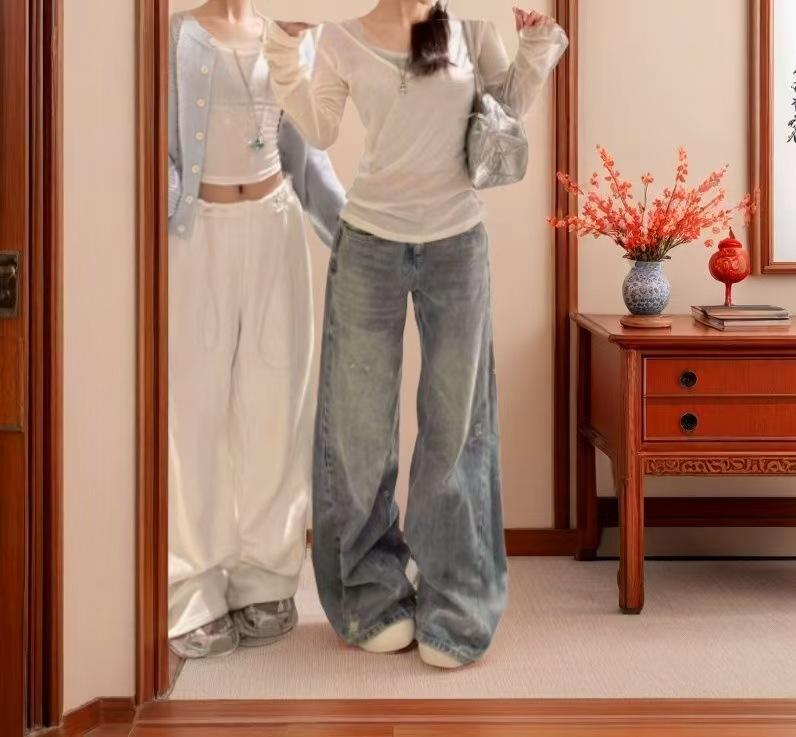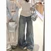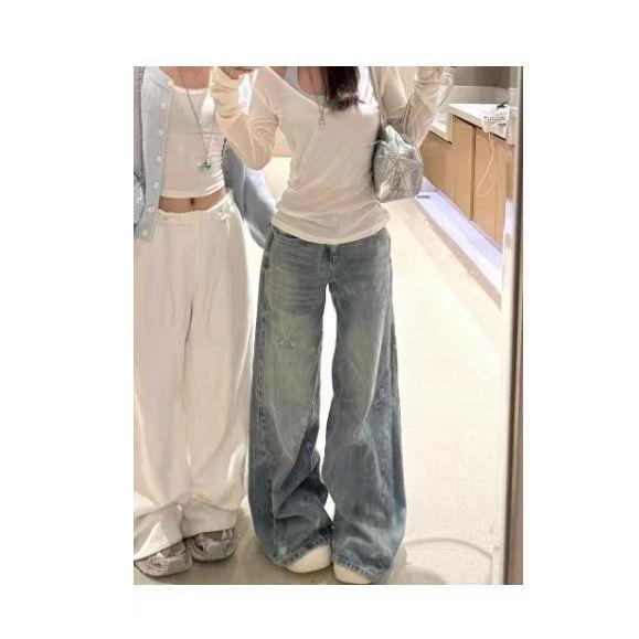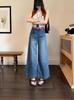 Jeans Bootcut Deshilachados Lavado Azul Americano para Mujer Primavera Nuevo Cintura Alta Sueltos Adelgazantes Versátiles Pantalones de Pierna Ancha
