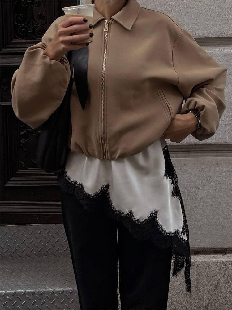 Ropa de mujer para comercio exterior transfronterizo otoño e invierno estilo europeo y americano moda casual holgada adorno de cremallera chaqueta abrigo para mujer