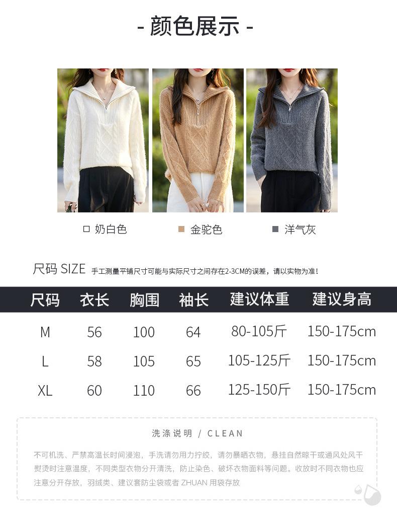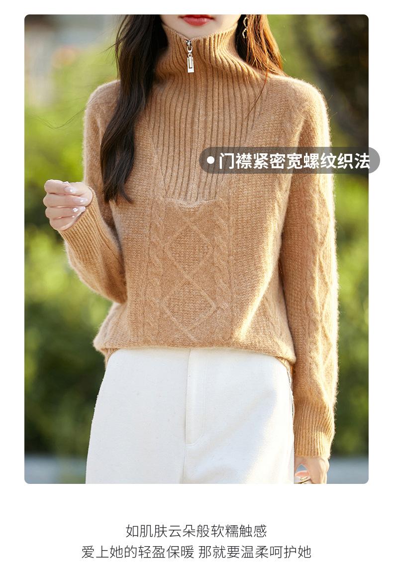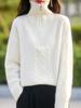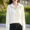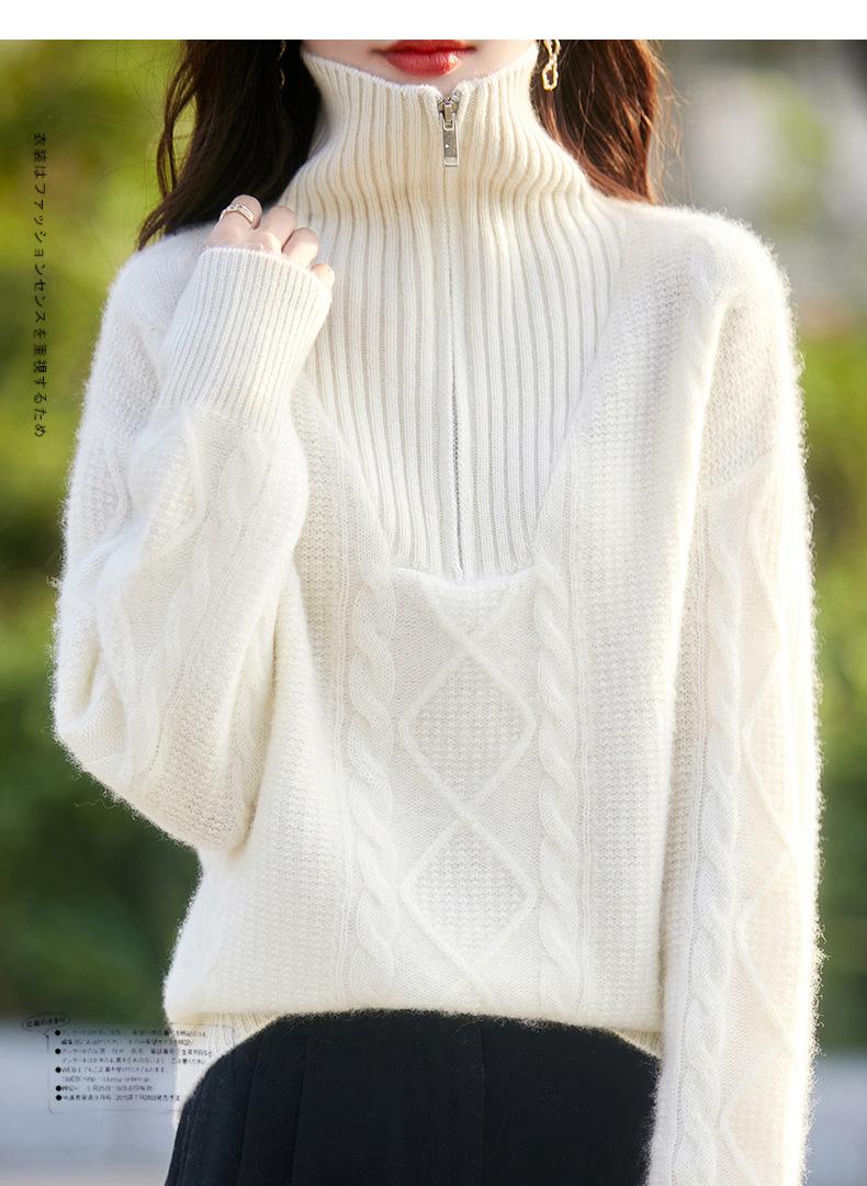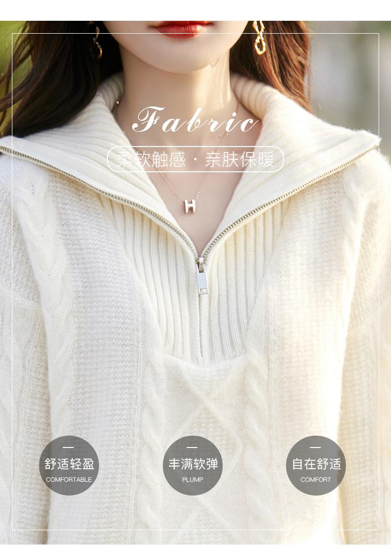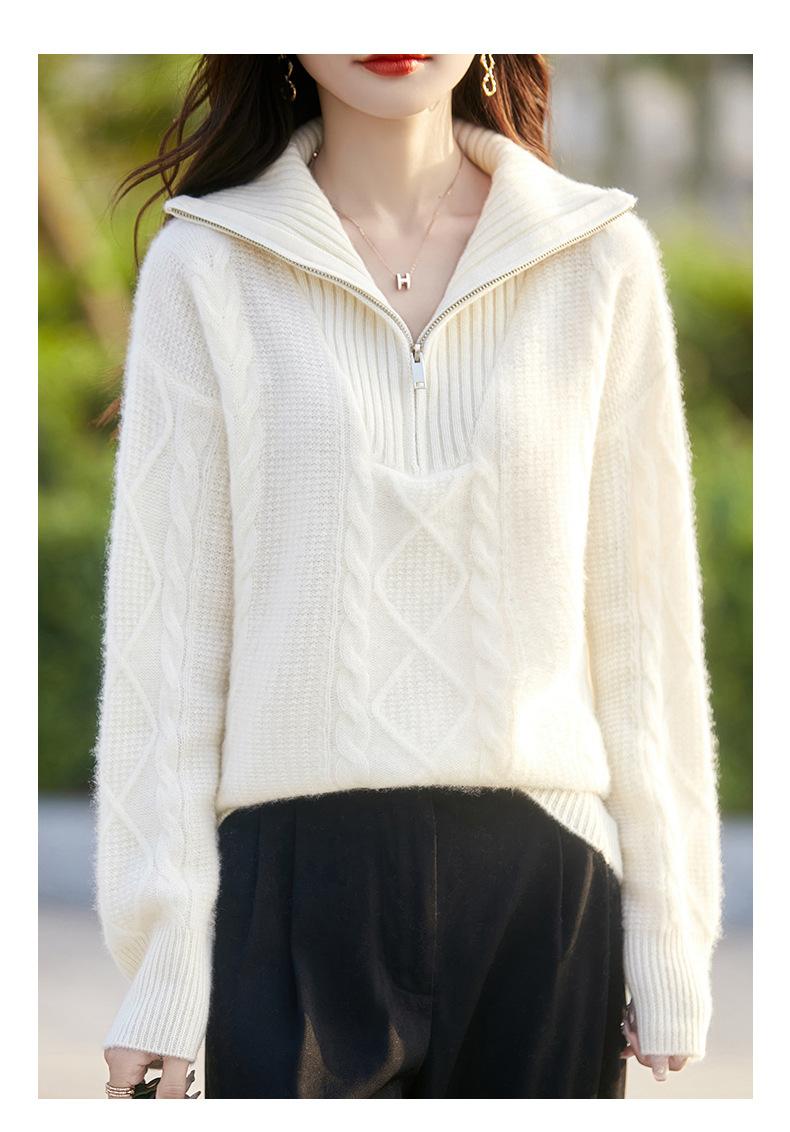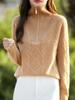 2025 nuevo suéter de punto de lana pura minimalista casual de temperamento de color sólido para mujer con solapa y media cremallera, holgado y perezoso