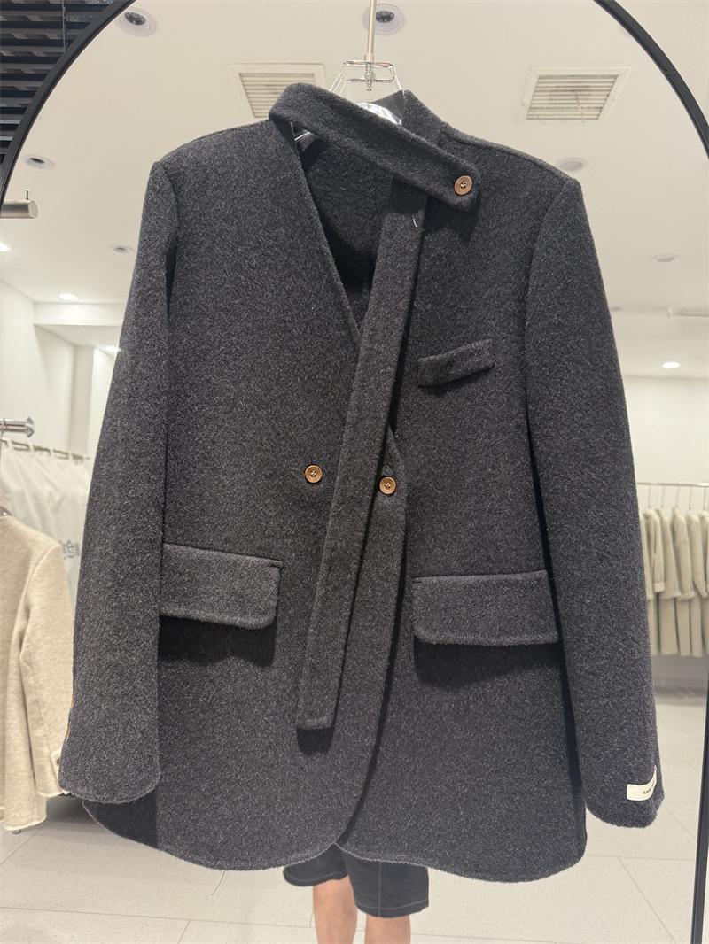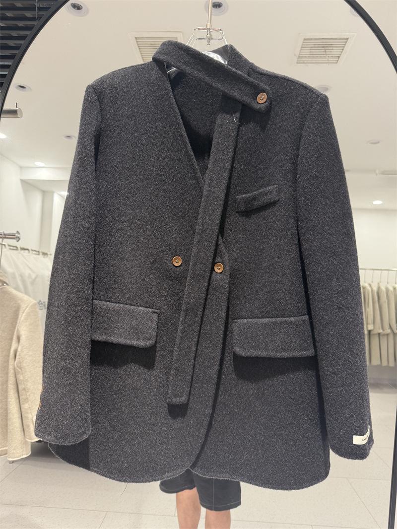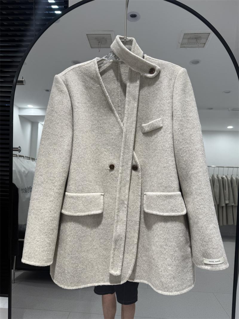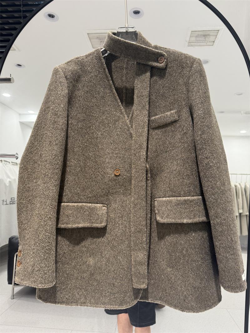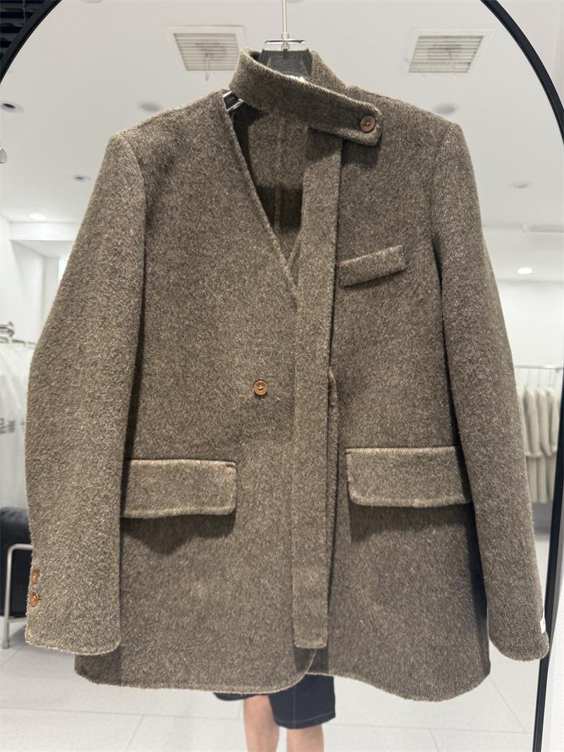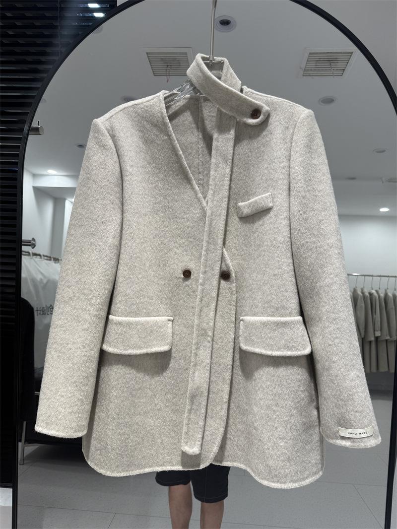 Abrigo corto de lana doble faz con cuello en V para mujer, temperamento suelto para ir al trabajo, producto nuevo de invierno 2025, temperamento, estilo perezoso, color sólido