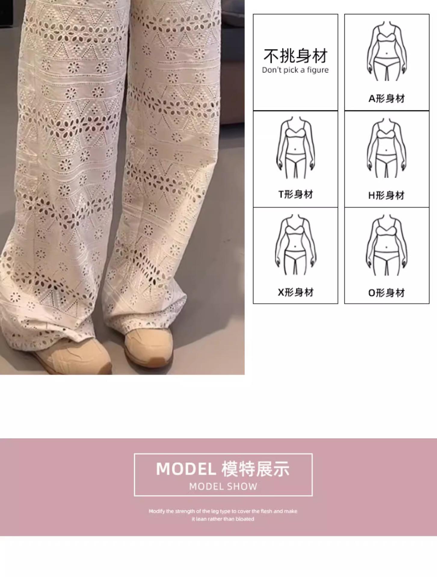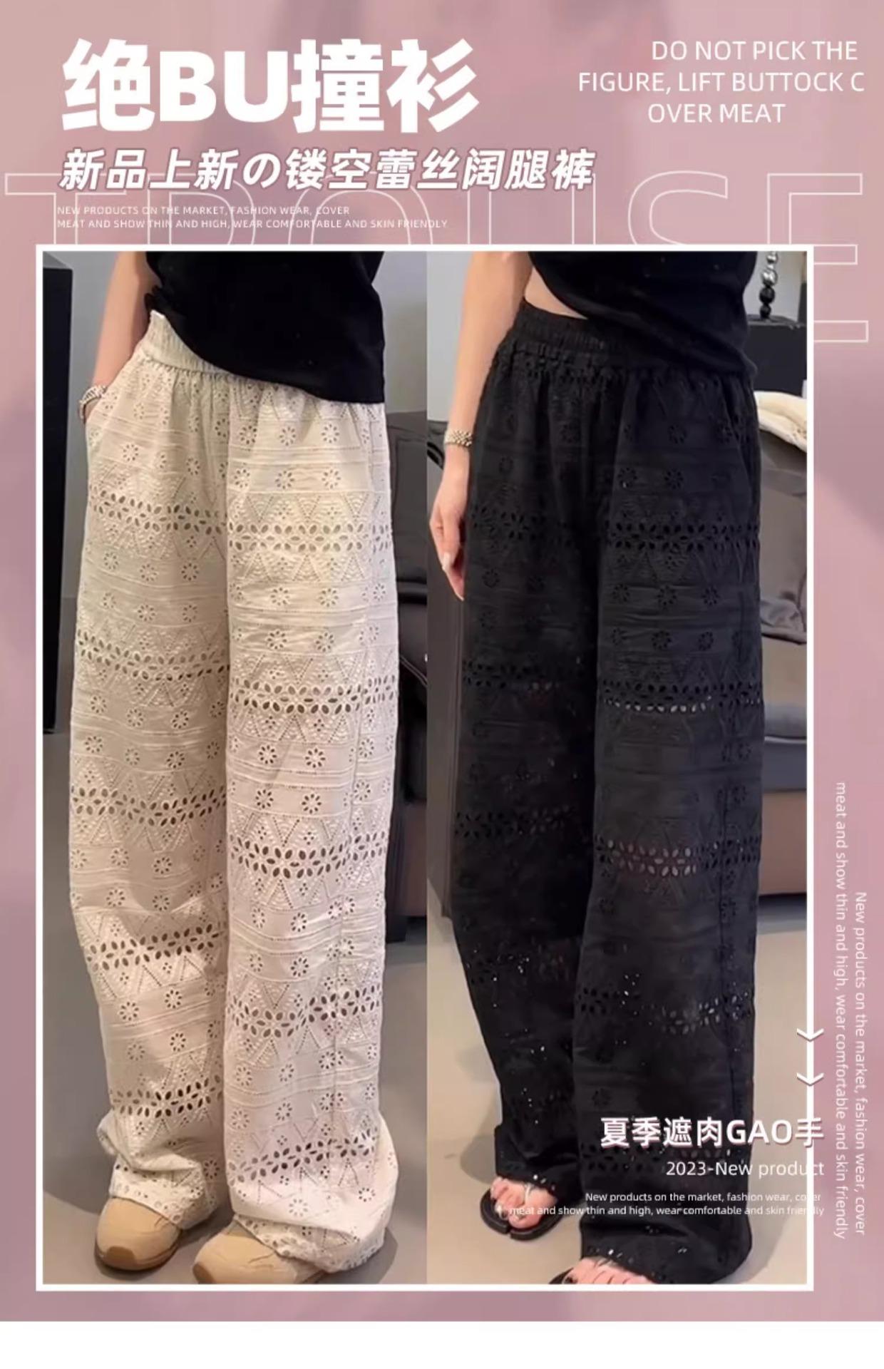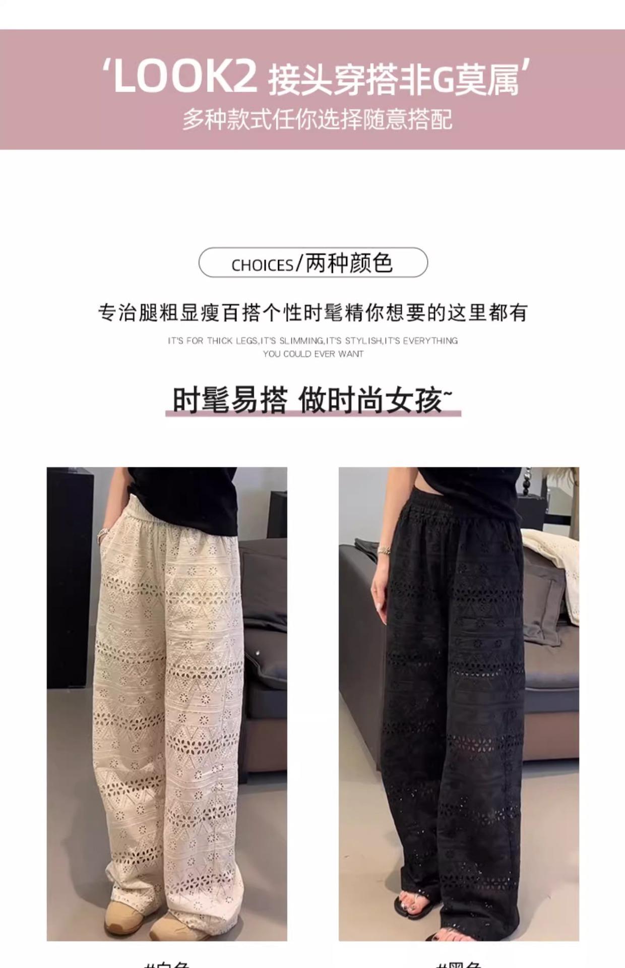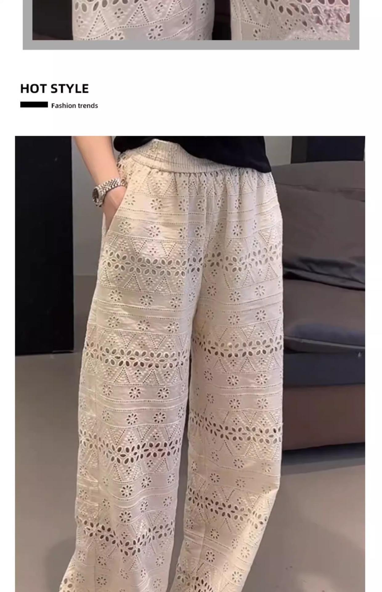Pantalones de Encaje Calados de Pierna Ancha para Mujer Verano 2025 Nuevo Cintura Alta Rectos Casuales Pequeños Hielo Seda Frescos