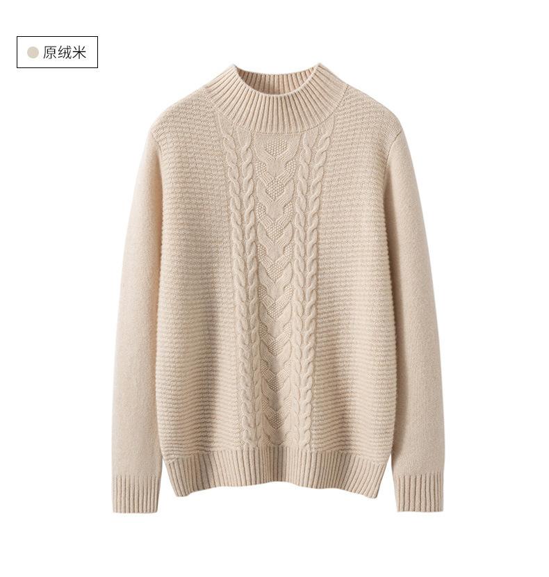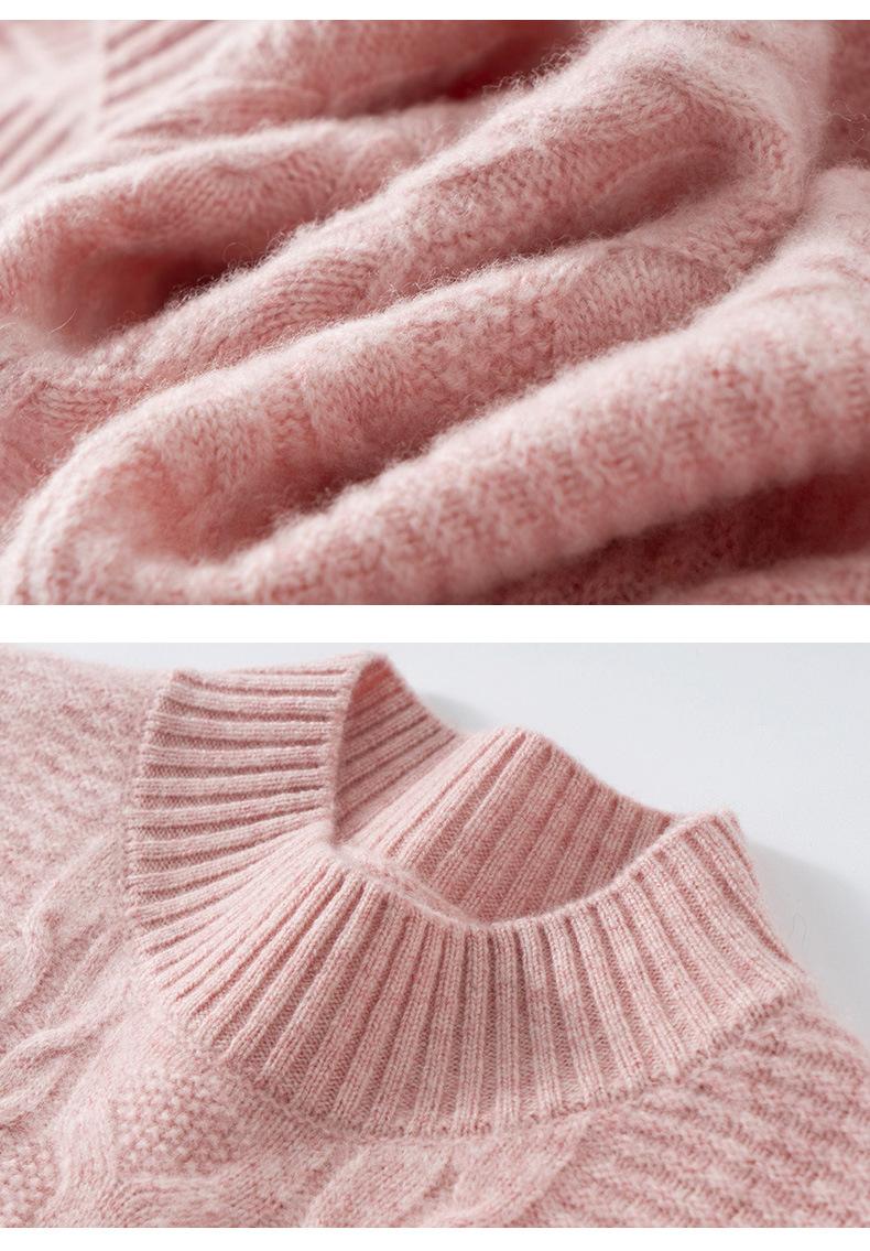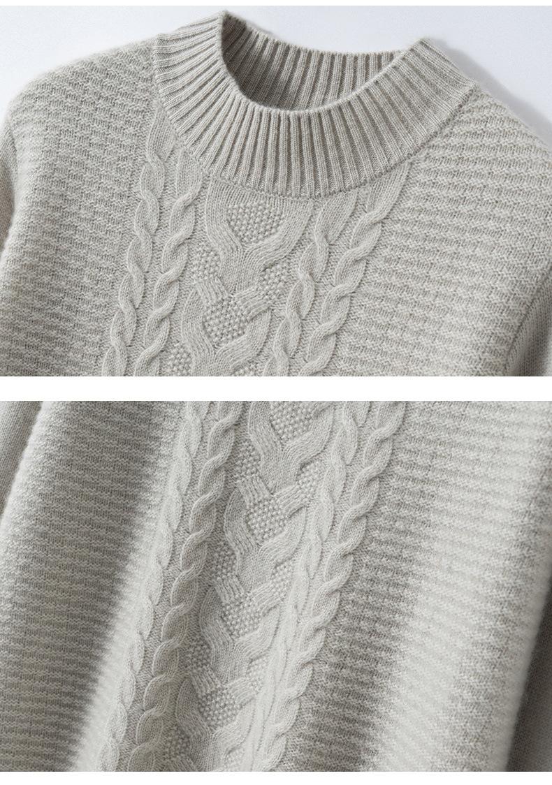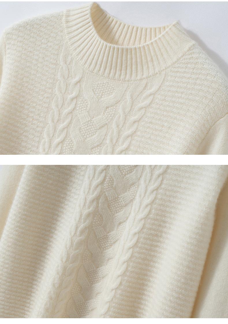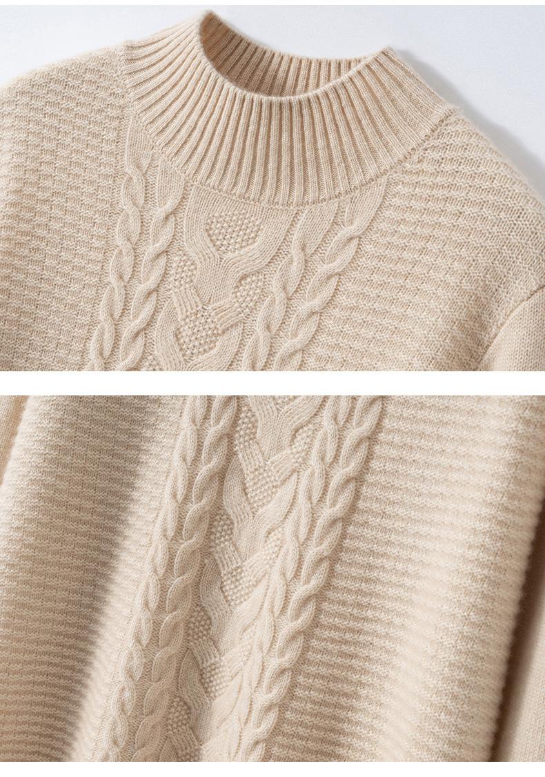 Suéter de cachemira de cuello medio alto para otoño e invierno para mujer, suéter holgado y grueso versátil de punto básico