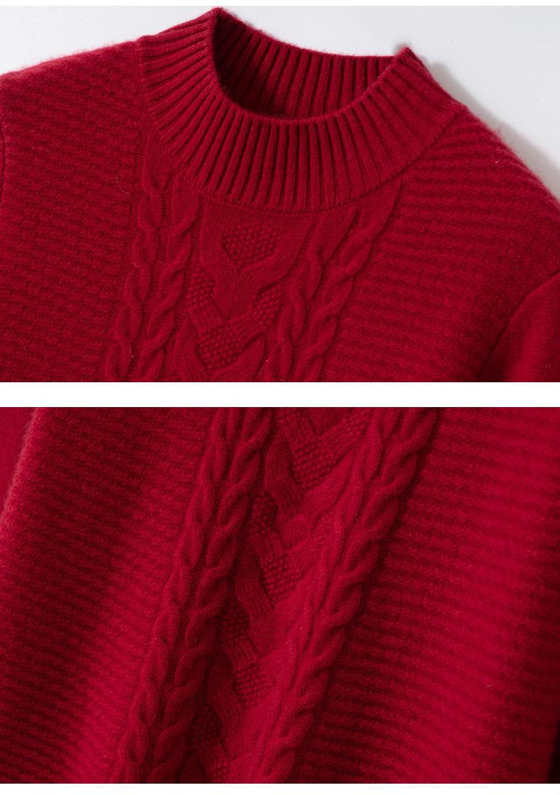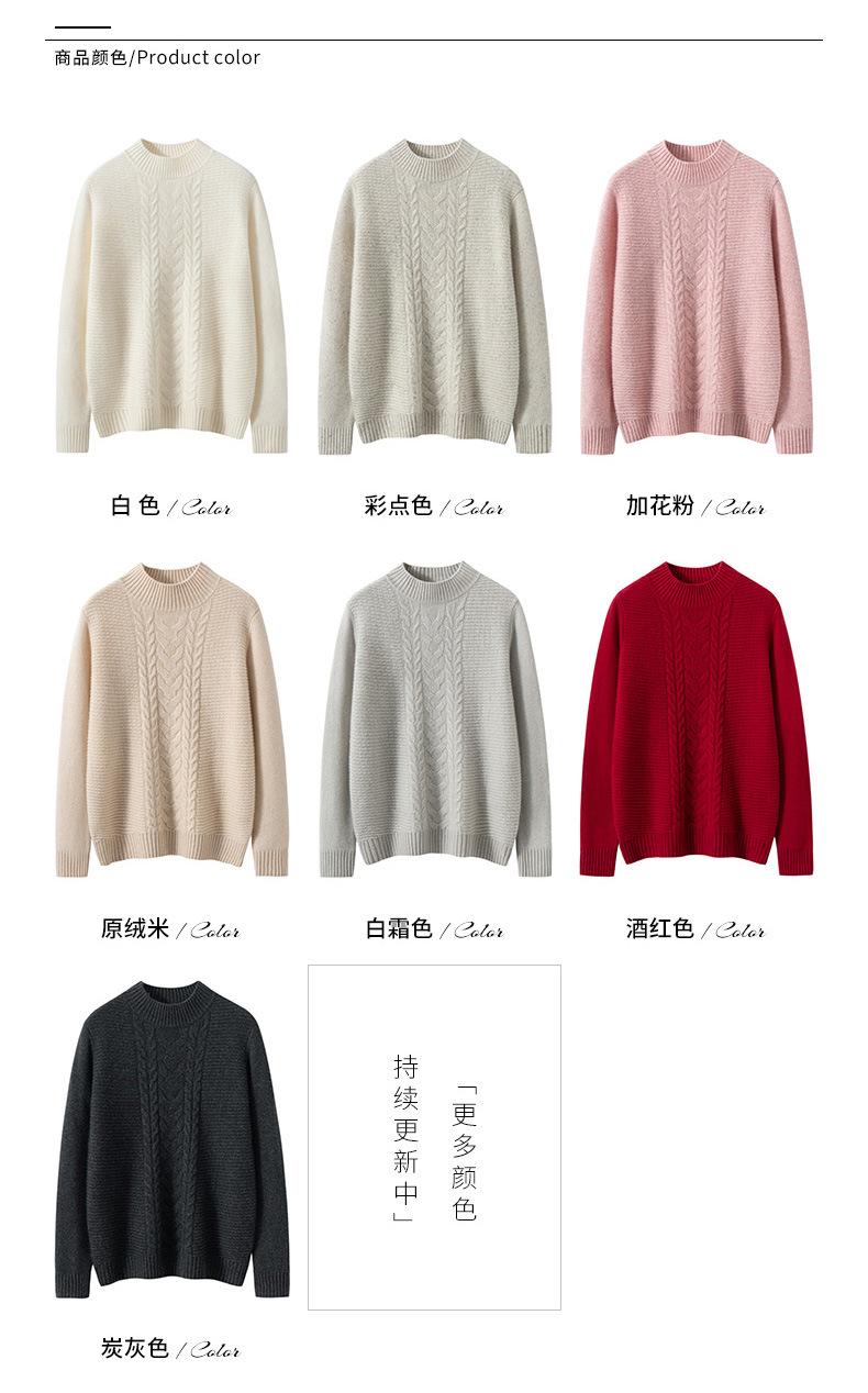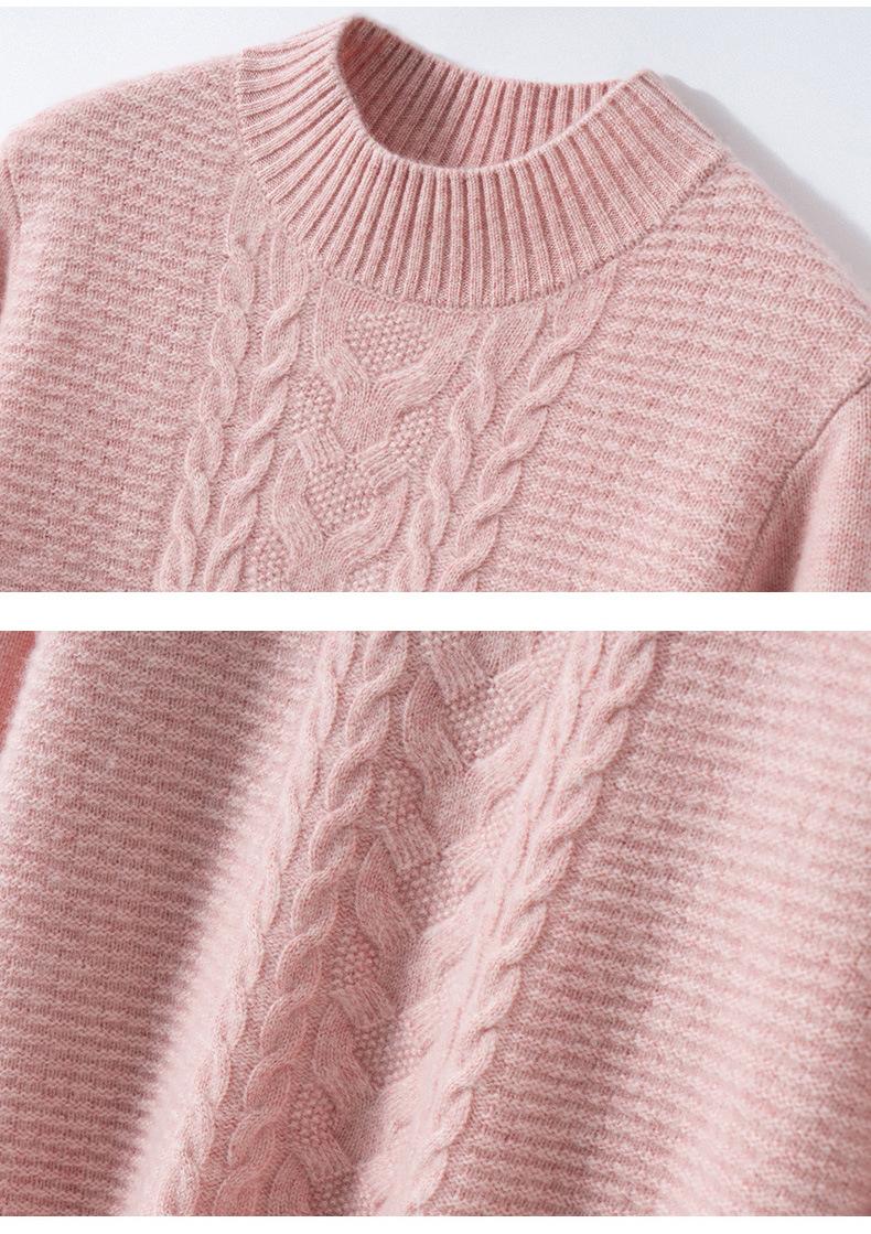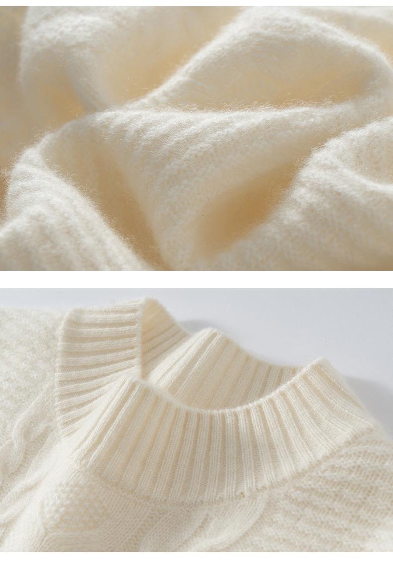 Suéter de cachemira de cuello medio alto para otoño e invierno para mujer, suéter holgado y grueso versátil de punto básico