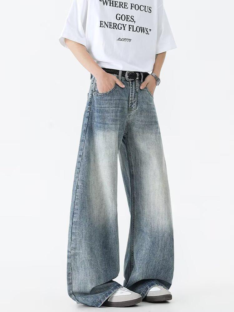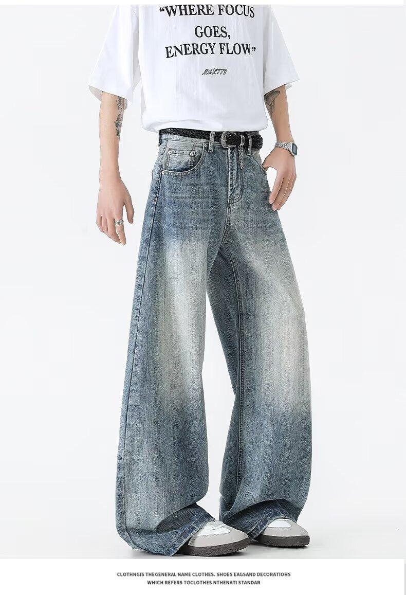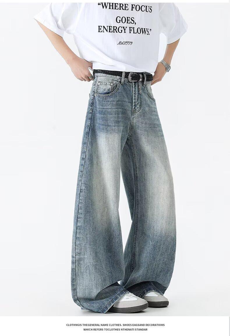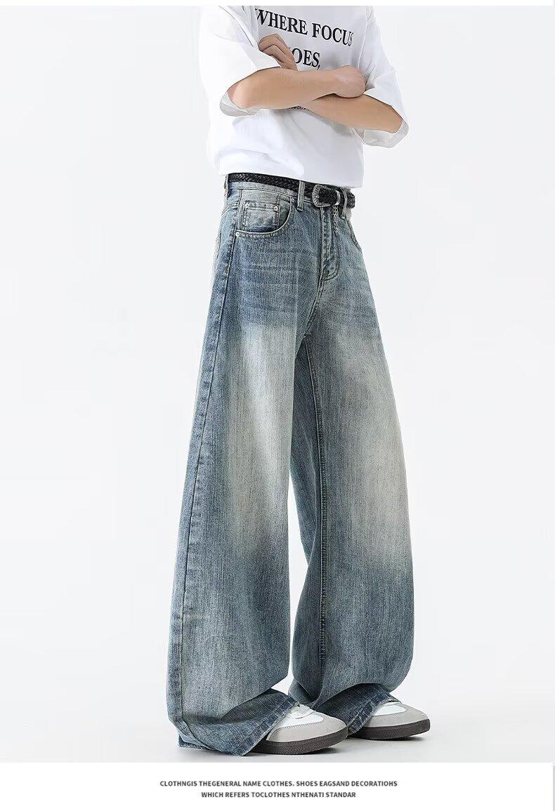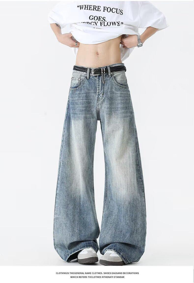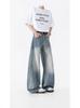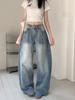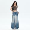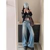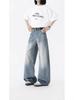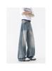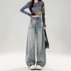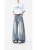 2025 Jeans americanos azules lavados de pierna ancha para mujer verano nuevos sueltos retro de pierna recta denim pantalones largos hasta el suelo