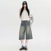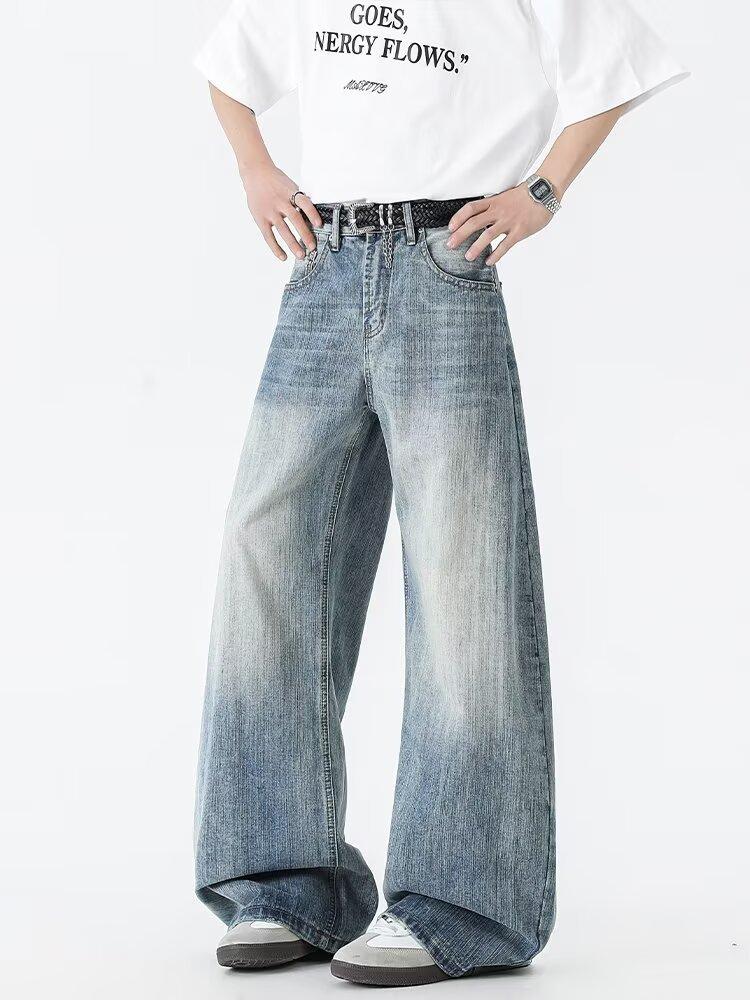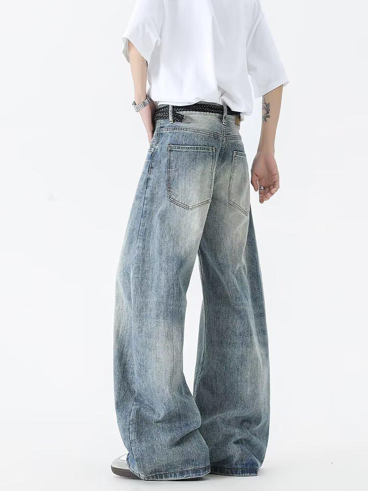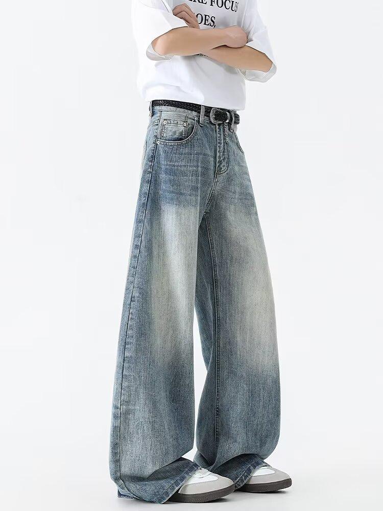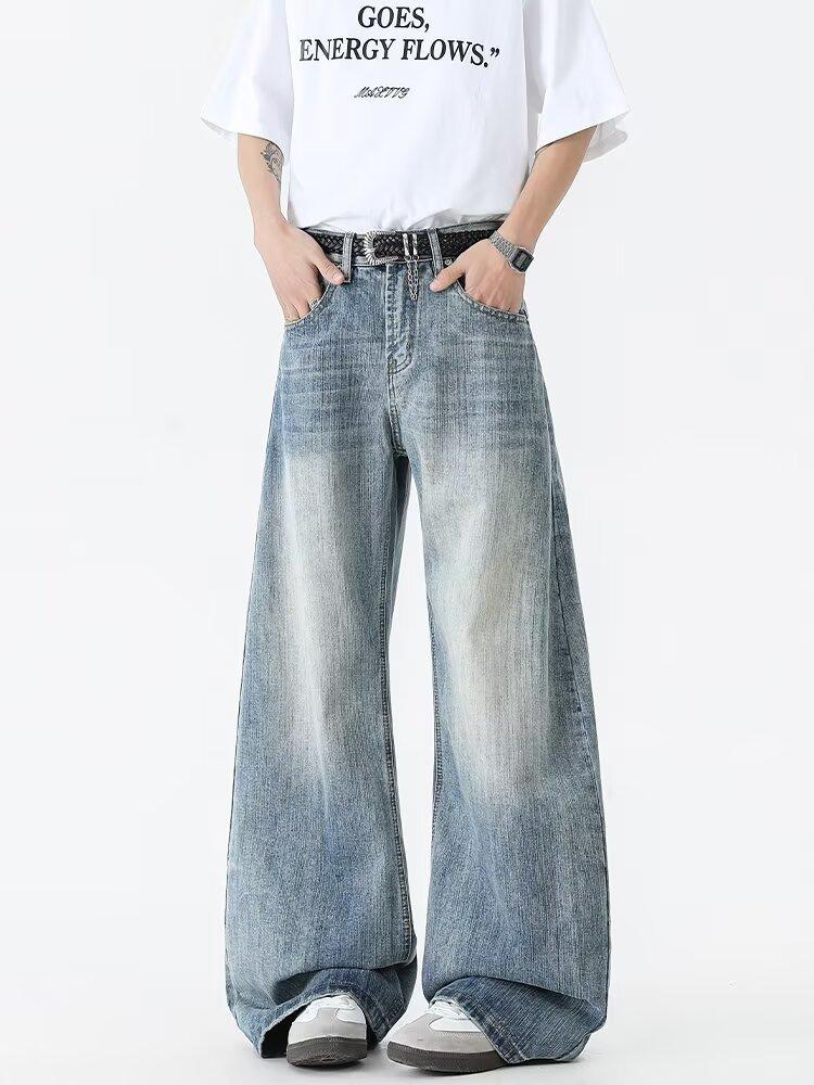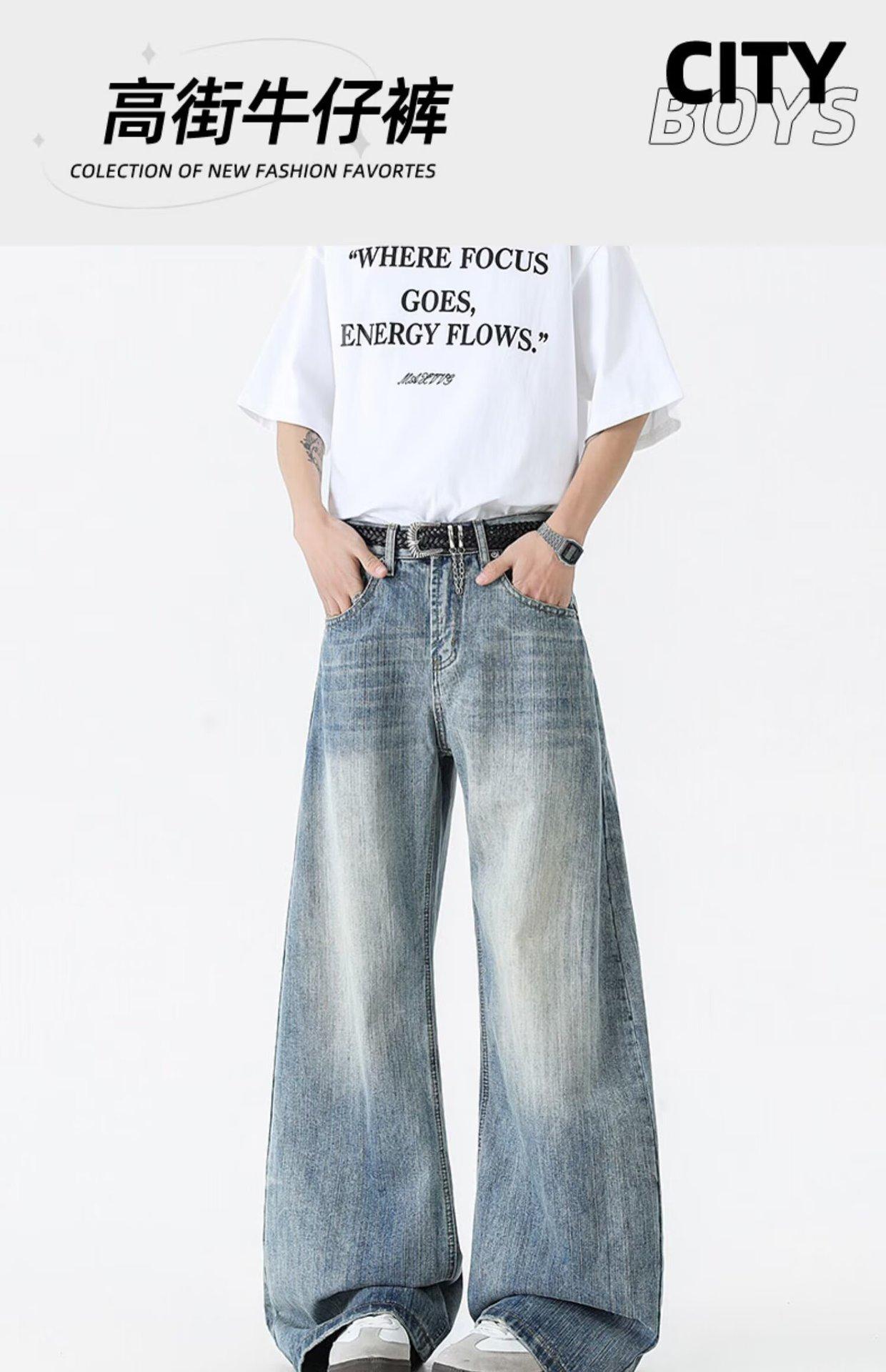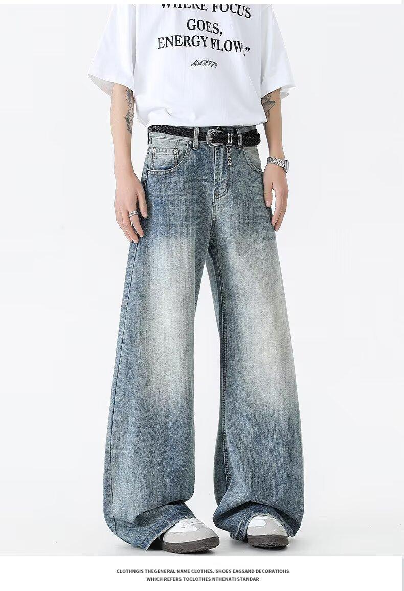 2025 Jeans americanos azules lavados de pierna ancha para mujer verano nuevos sueltos retro de pierna recta denim pantalones largos hasta el suelo
