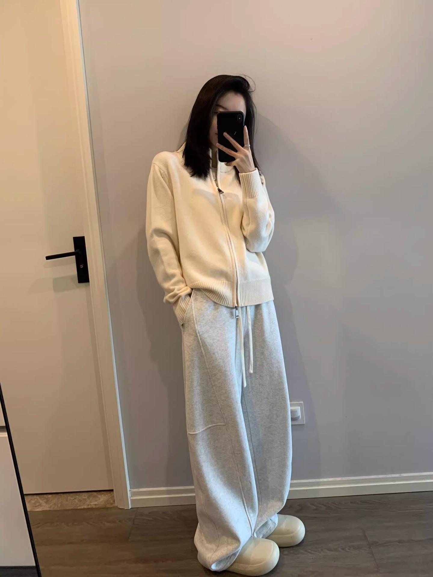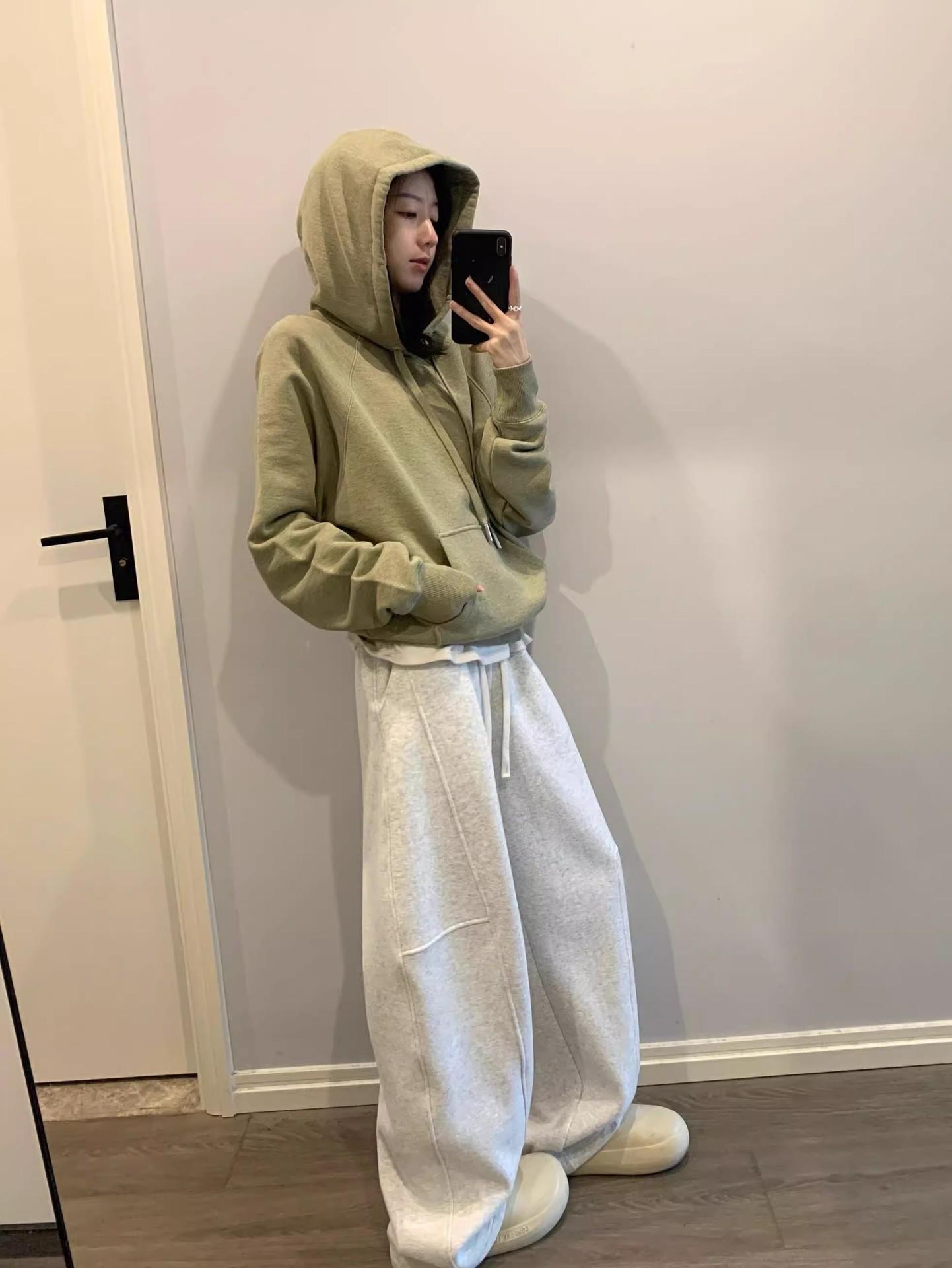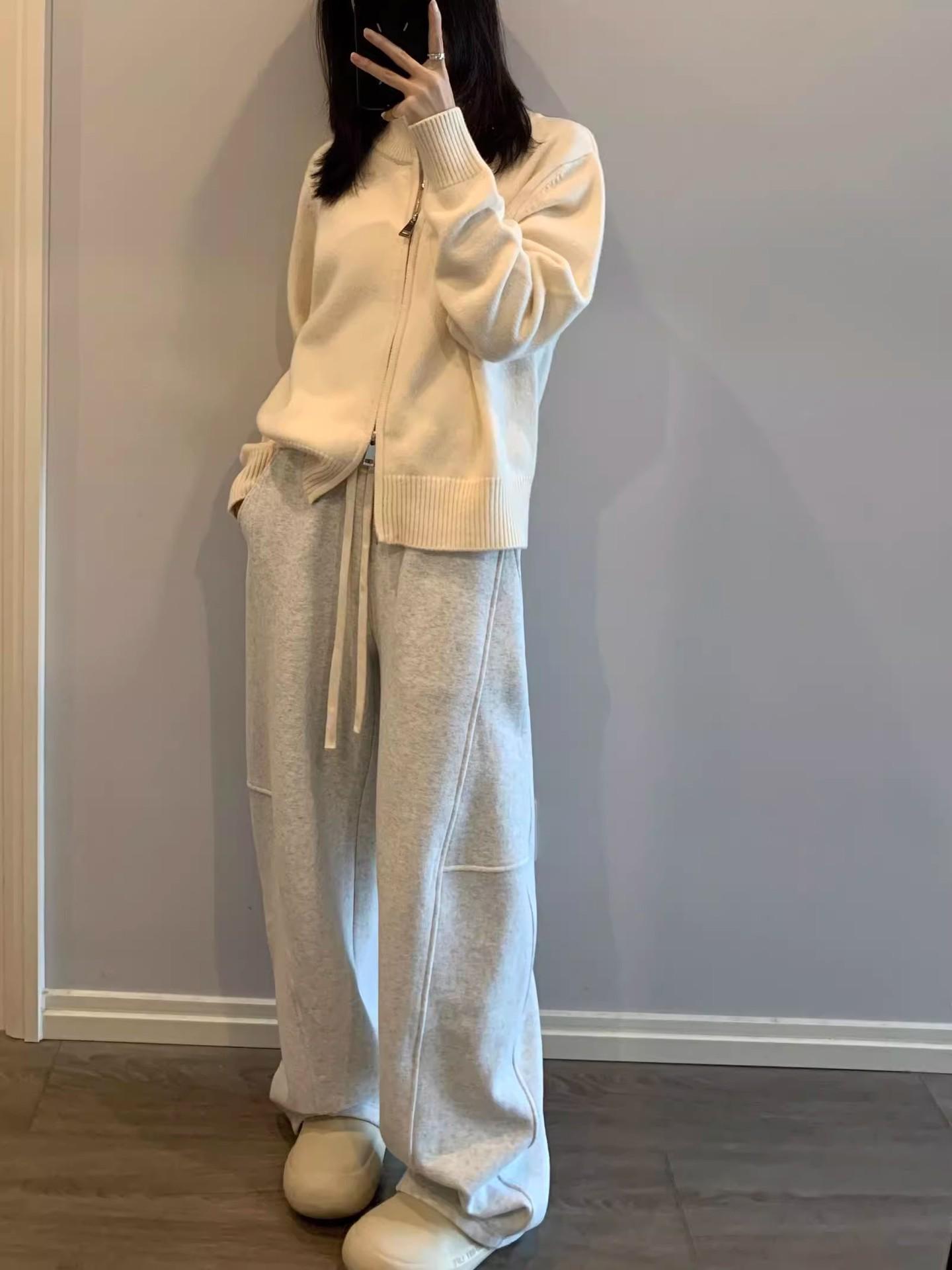 Pantalones tipo plátano de estilo holgazán 2025 primavera y otoño nuevos pantalones casuales coreanos sueltos de pierna ancha pantalones deportivos para mujer pantalones de chándal blancos grises