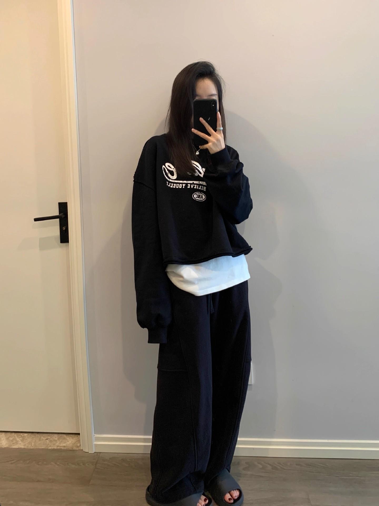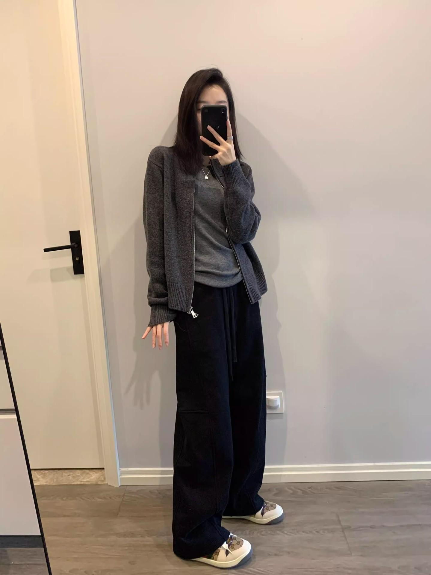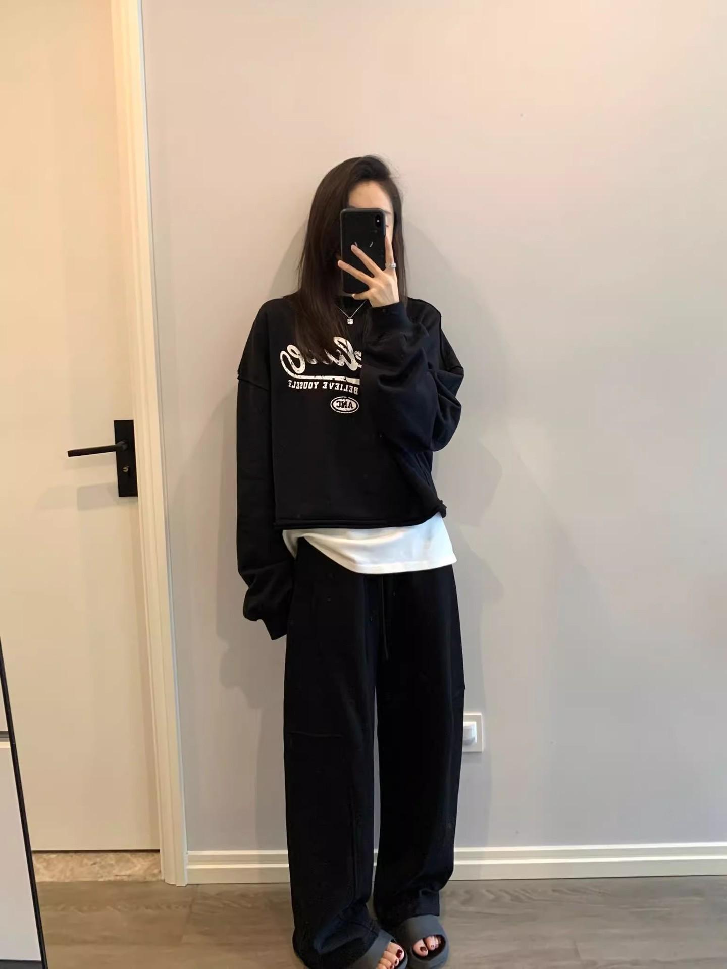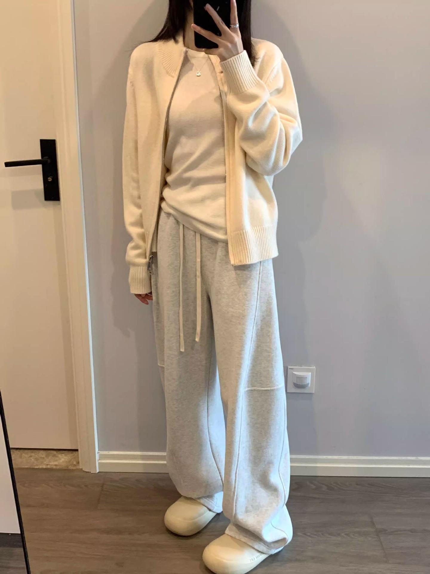 Pantalones tipo plátano de estilo holgazán 2025 primavera y otoño nuevos pantalones casuales coreanos sueltos de pierna ancha pantalones deportivos para mujer pantalones de chándal blancos grises
