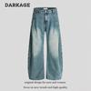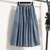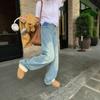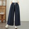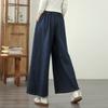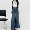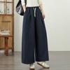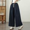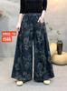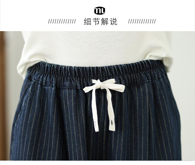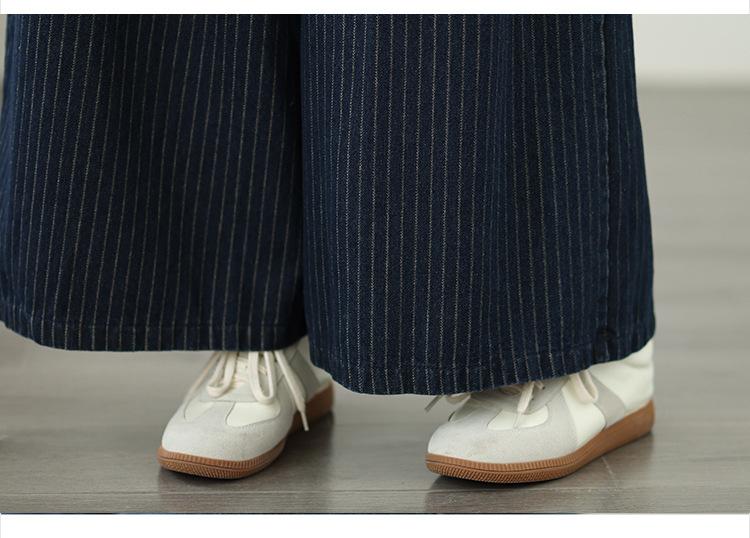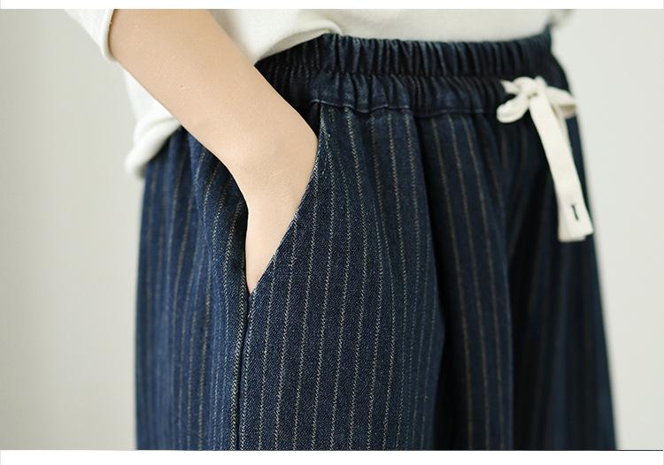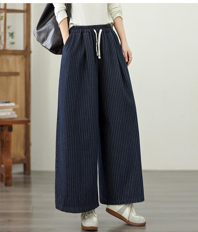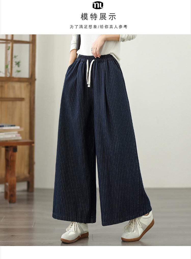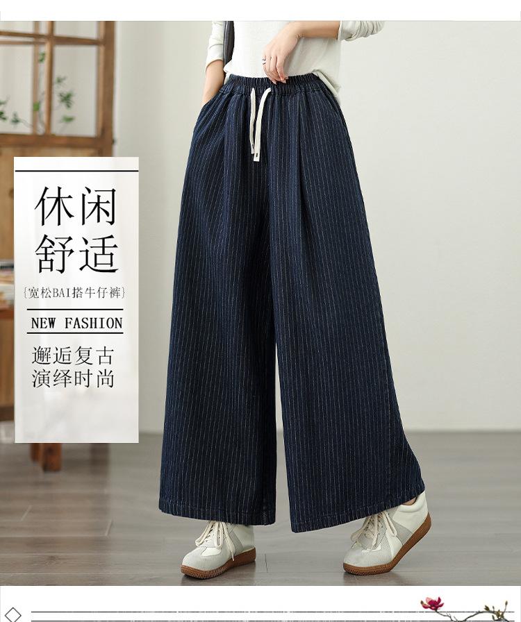 En stock Otoño nuevo jacquard a rayas denim pantalones de pierna ancha literario casual talla grande denim pantalones largos