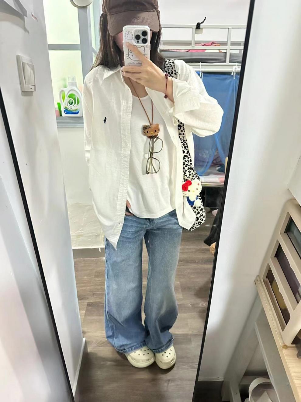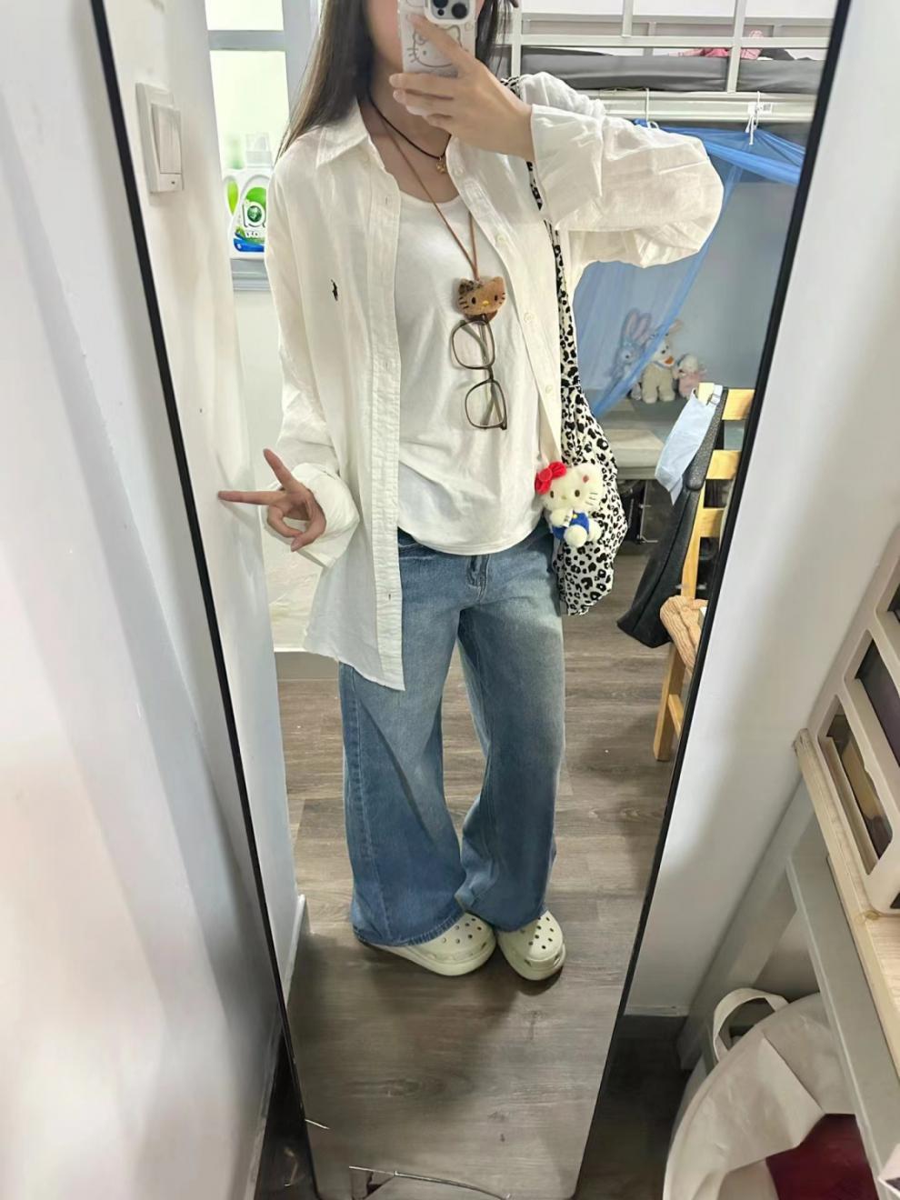 Camisa Blanca Estilo Coreano para Mujer Primavera y Verano 2024 Nuevo Sentido del Diseño Nicho Lar Suelta Manga Larga Top Bordado