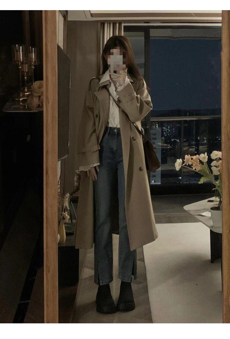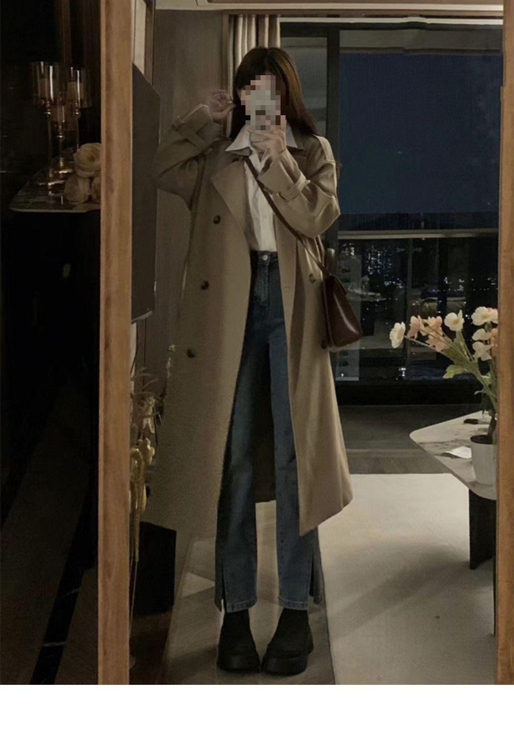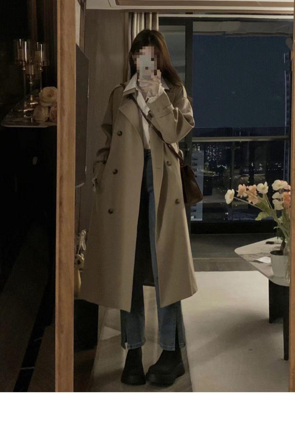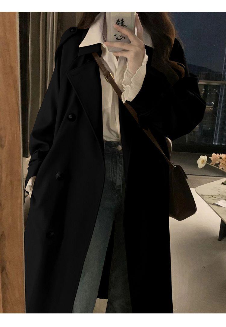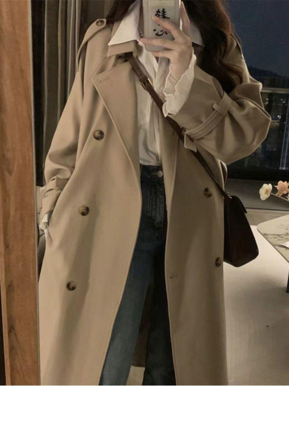 Gabardina popular para mujer de este año primavera y otoño 2025 elegante nuevo abrigo casual holgado de largo medio para petite