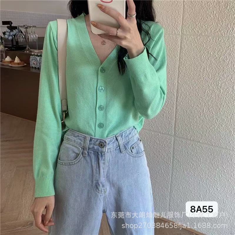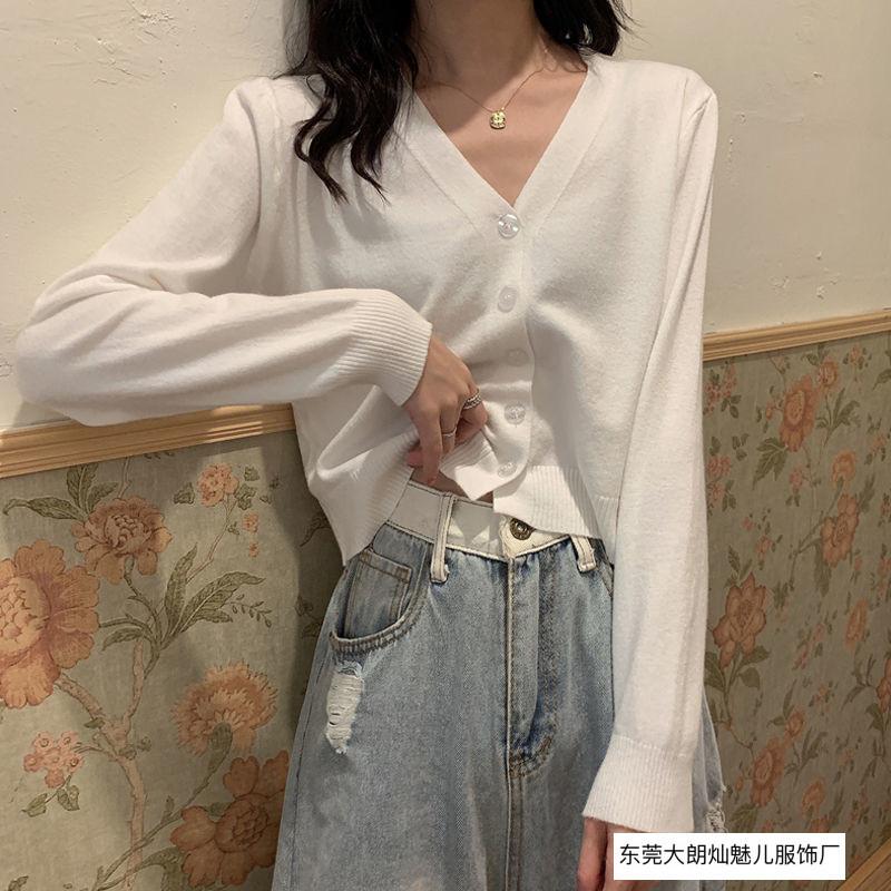 Nuevo Cárdigan Ropa Exterior Top Corto Primavera Temprana Abrigo Delgado Manga Larga Cárdigan Tejido de Seda Helada Primavera para Mujer