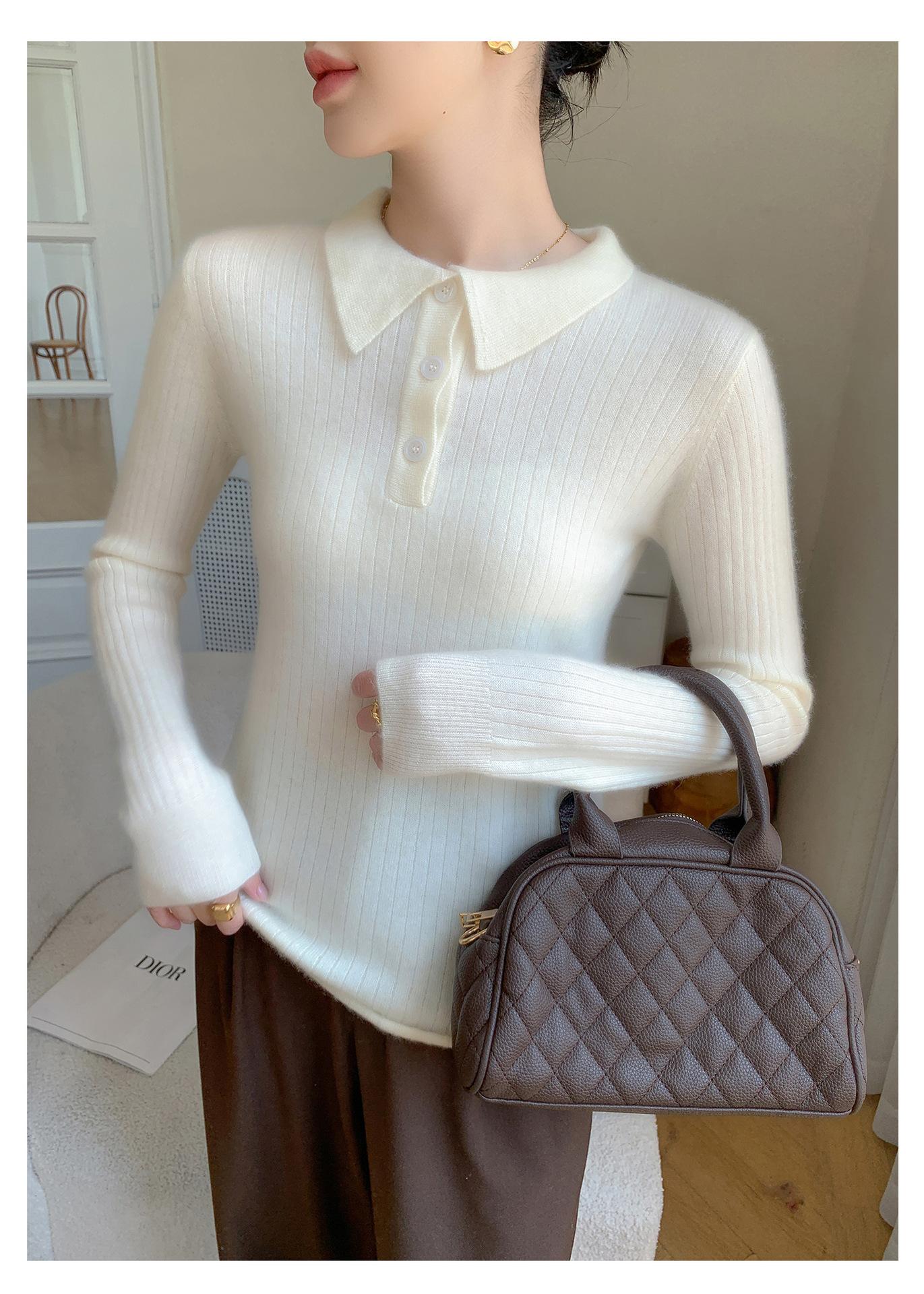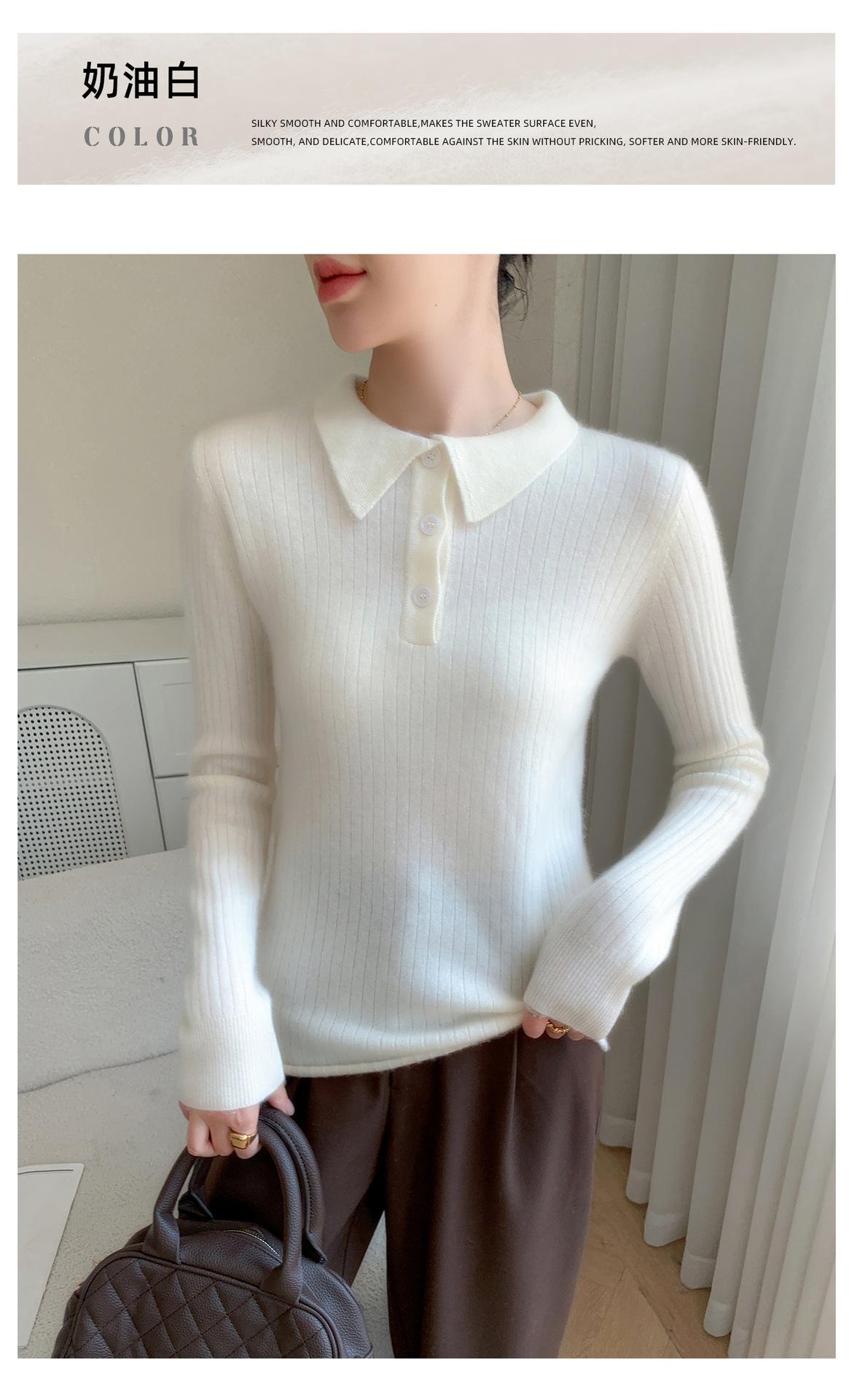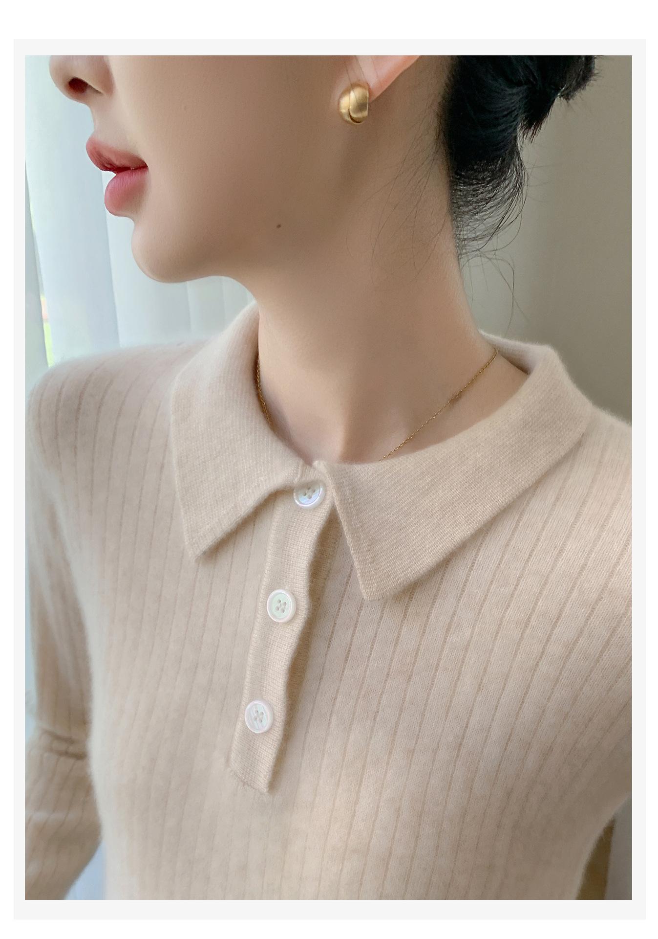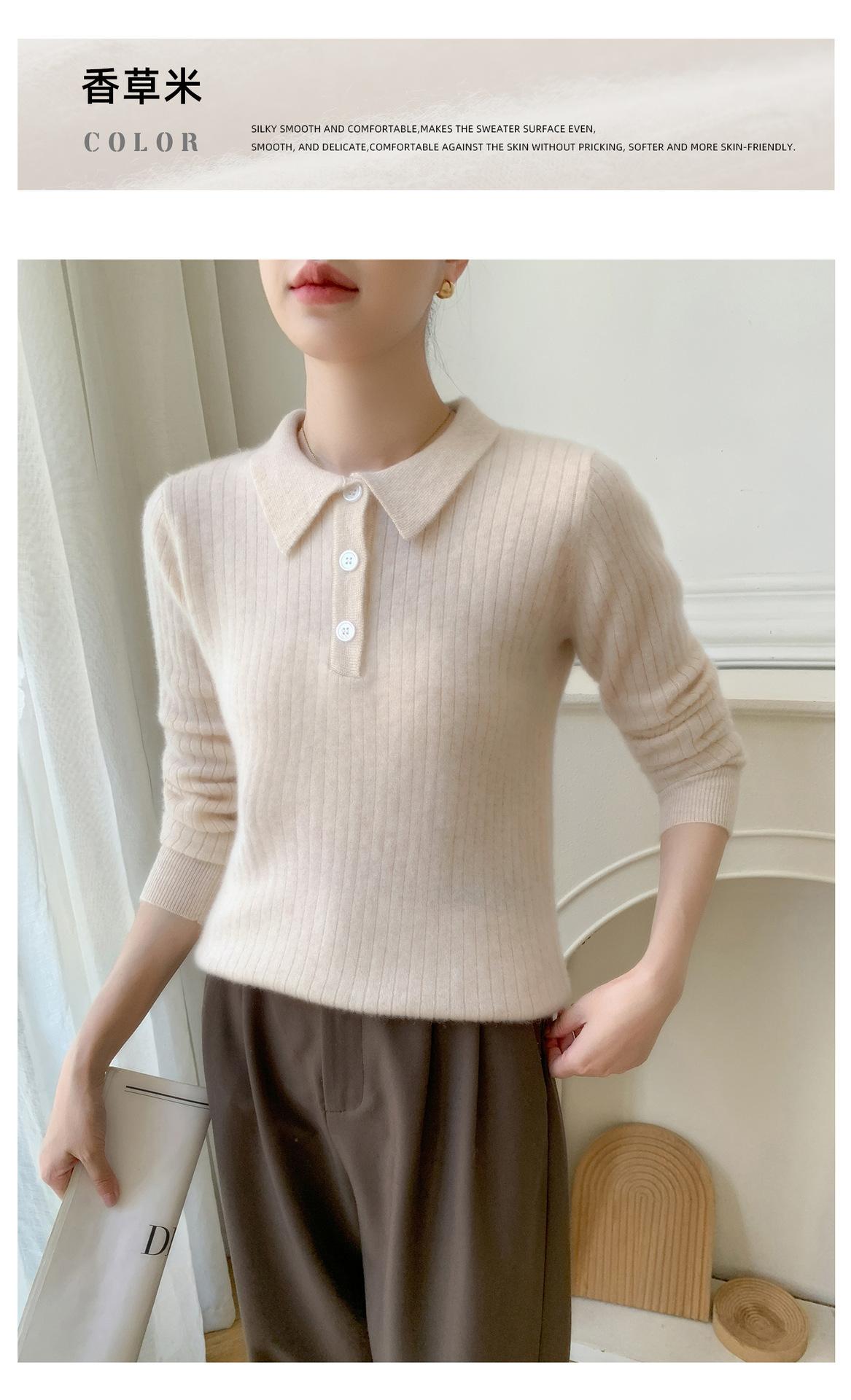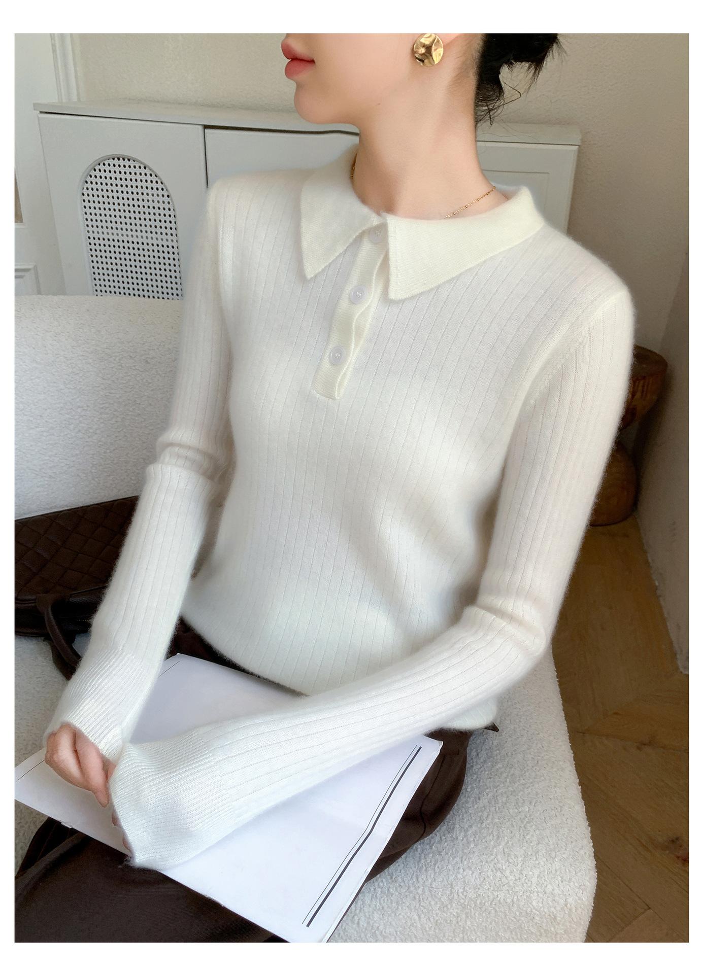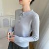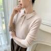 Nueva Camisa Base de Punto de Cachemira de Otoño e Invierno Moda para el Trabajo Versátil Suave y Cómoda Color Sólido Cuello Polo para Dama
