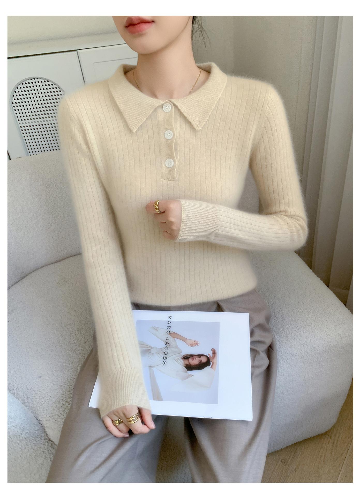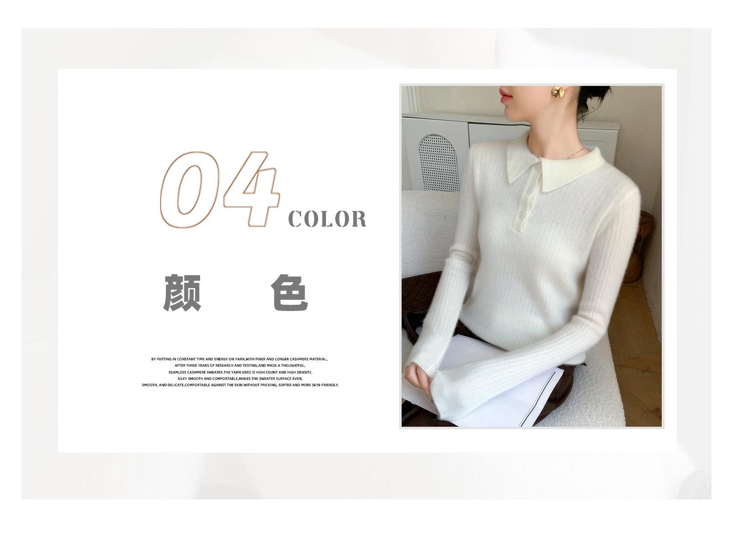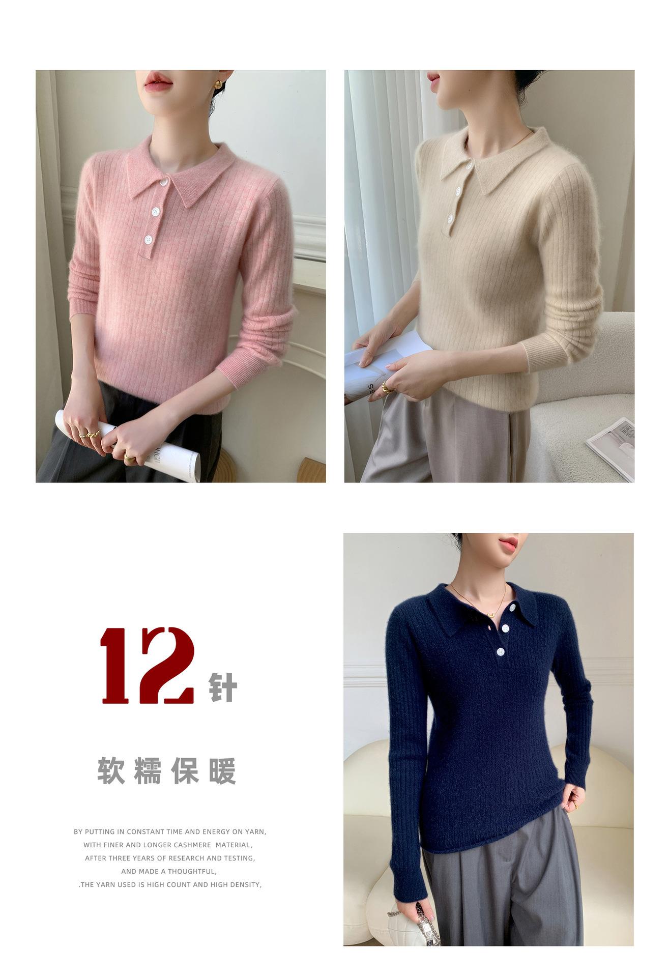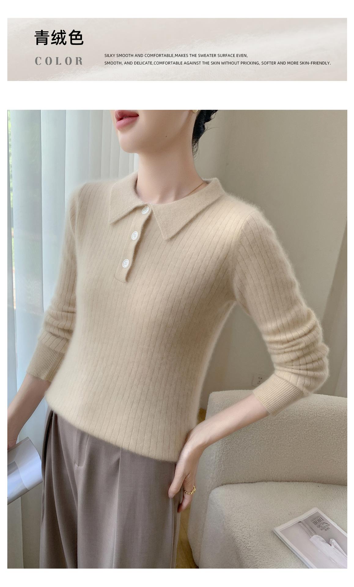 Nueva Camisa Base de Punto de Cachemira de Otoño e Invierno Moda para el Trabajo Versátil Suave y Cómoda Color Sólido Cuello Polo para Dama