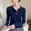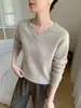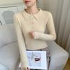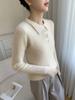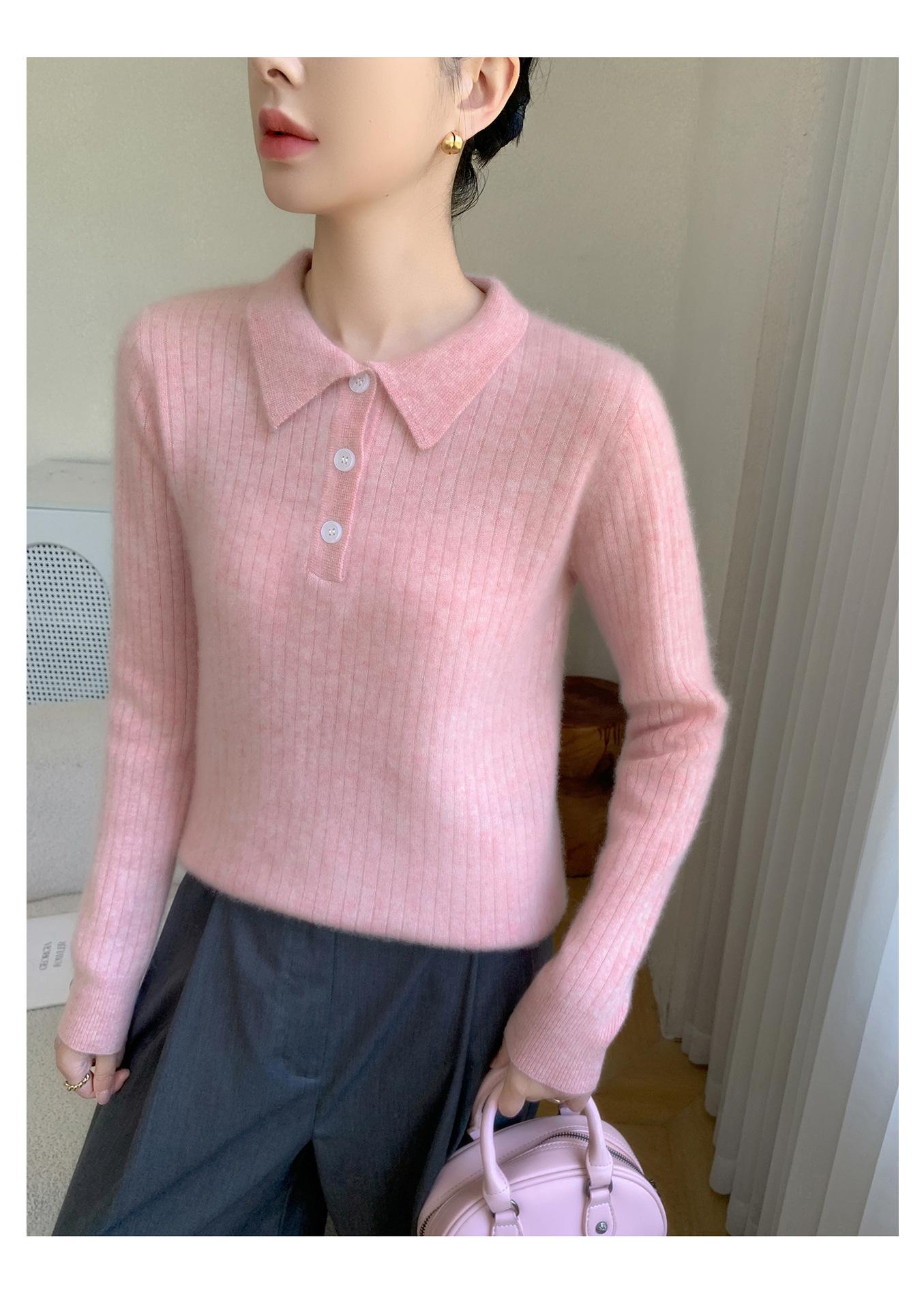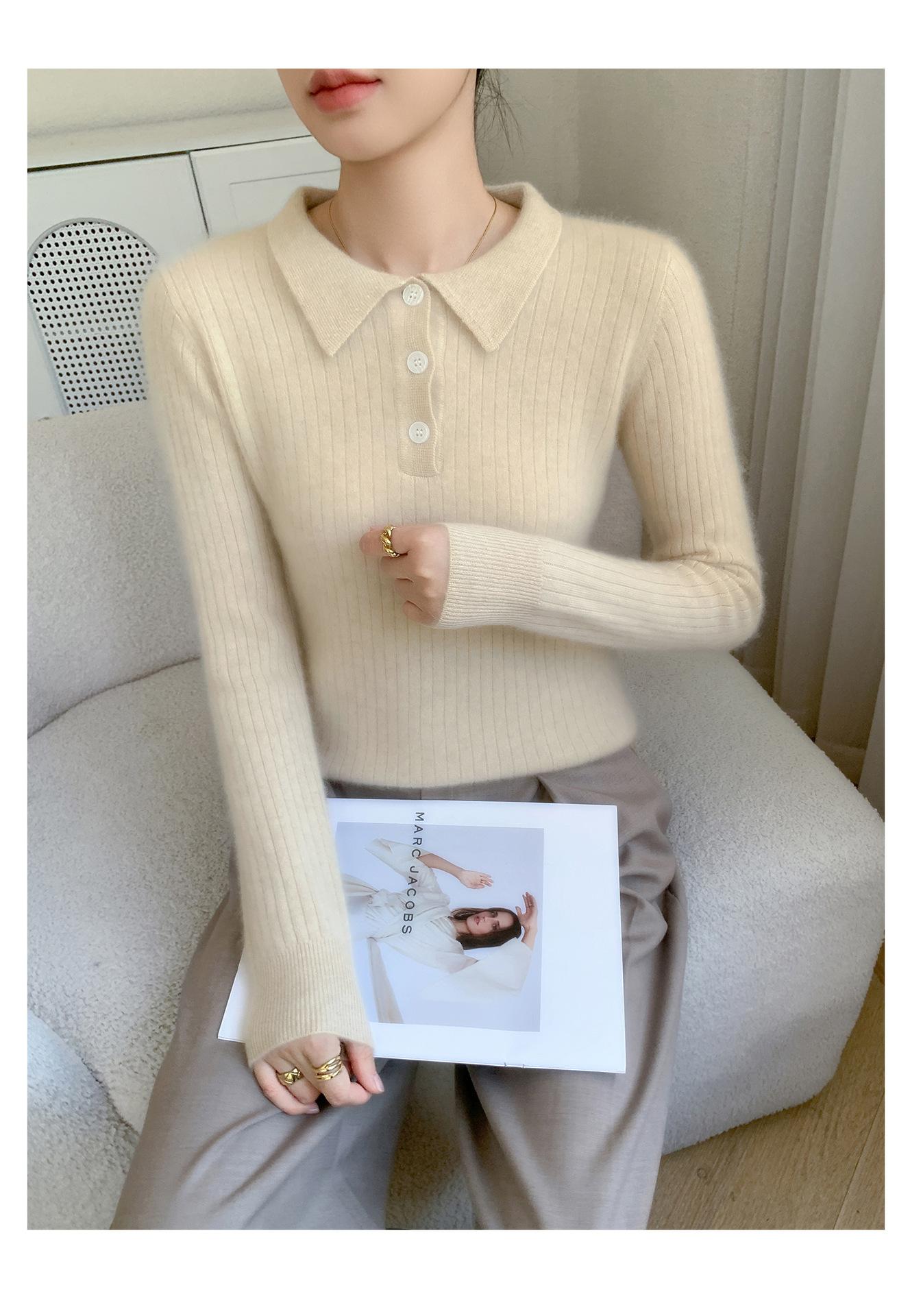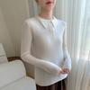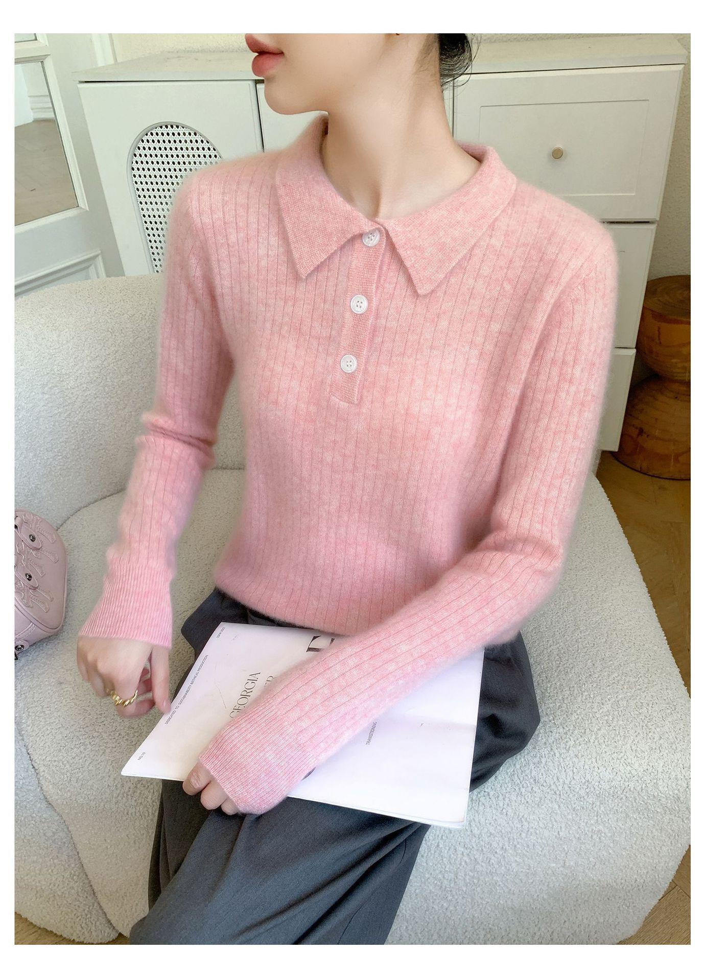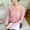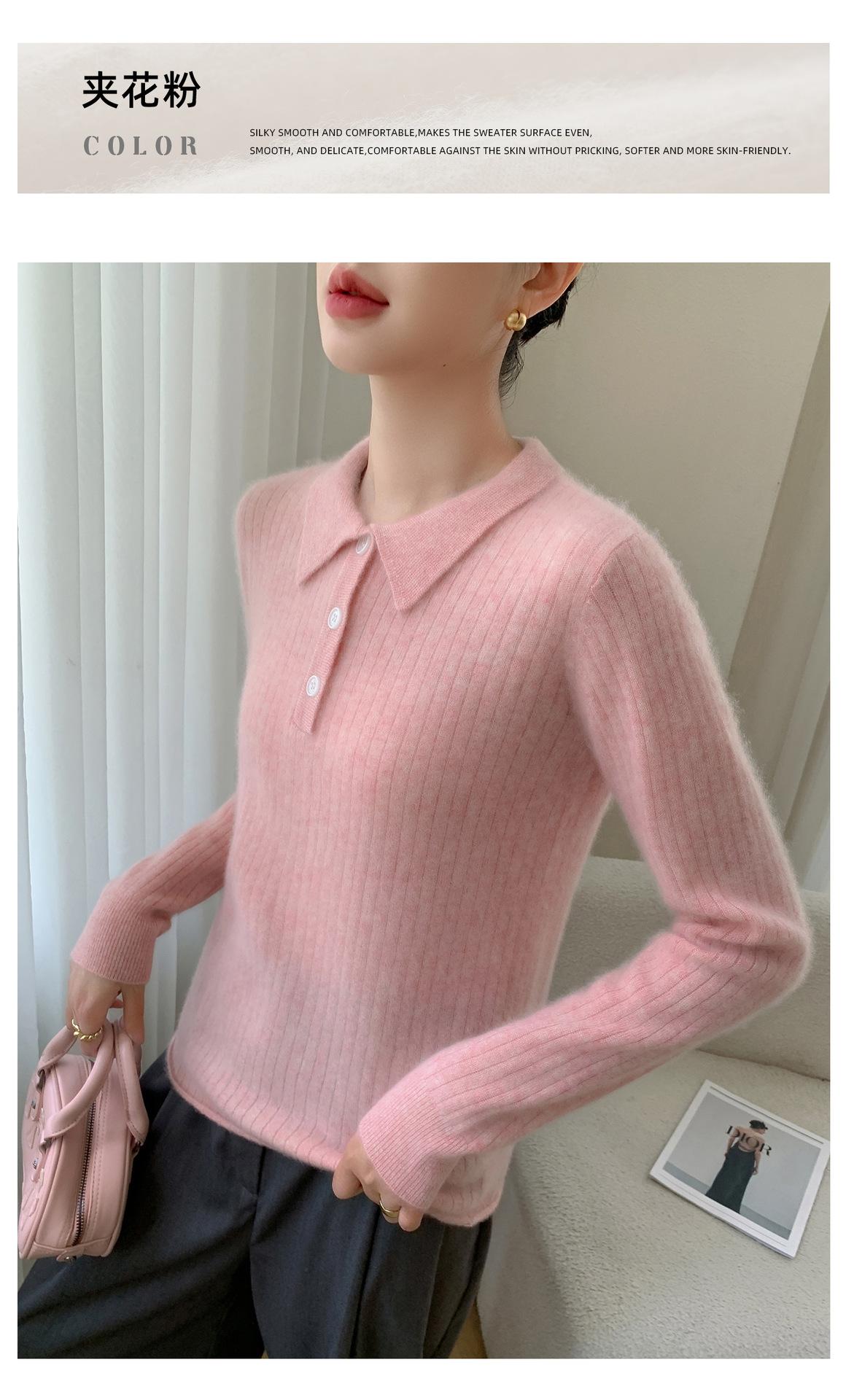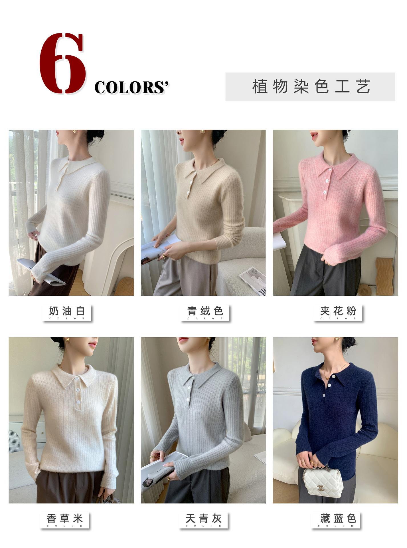 Nueva Camisa Base de Punto de Cachemira de Otoño e Invierno Moda para el Trabajo Versátil Suave y Cómoda Color Sólido Cuello Polo para Dama