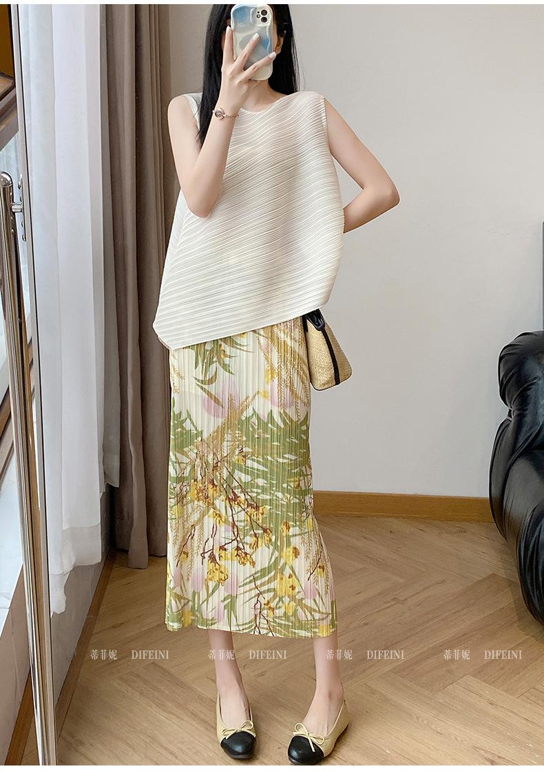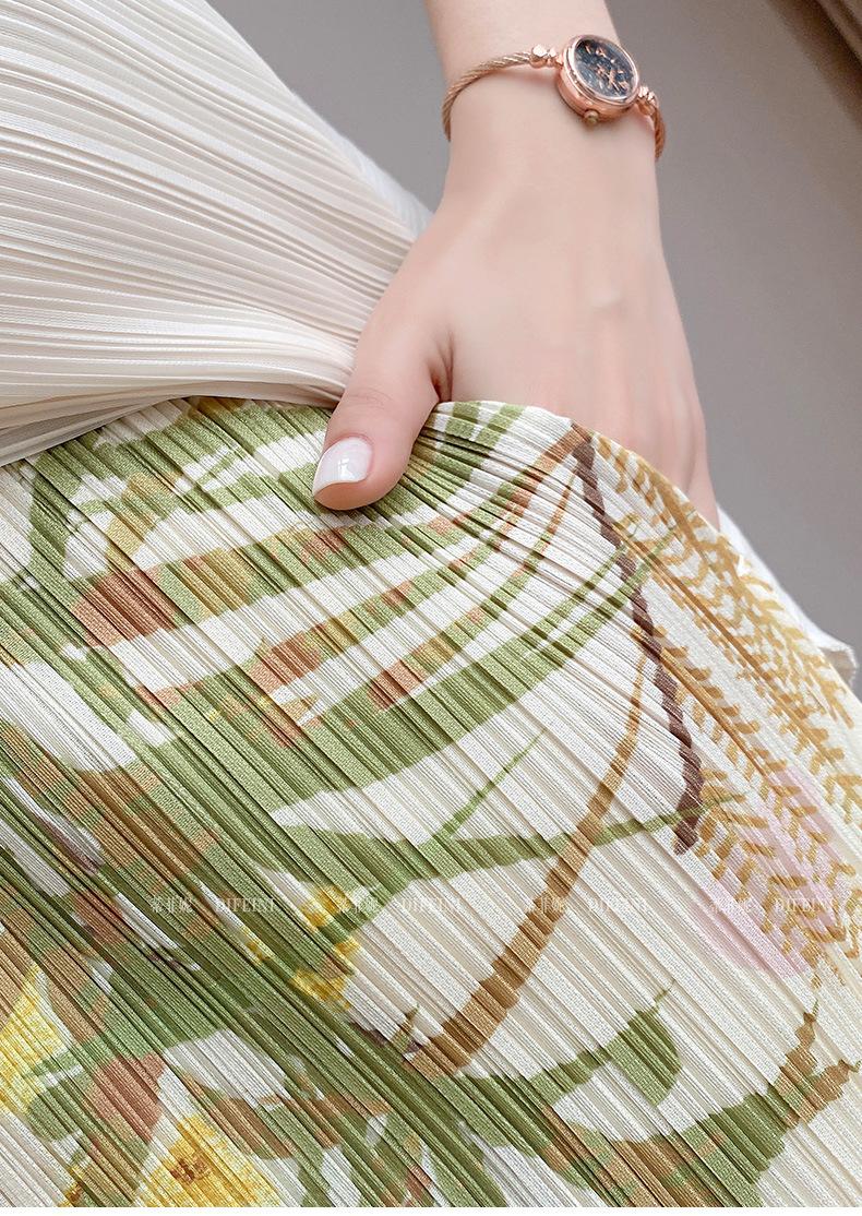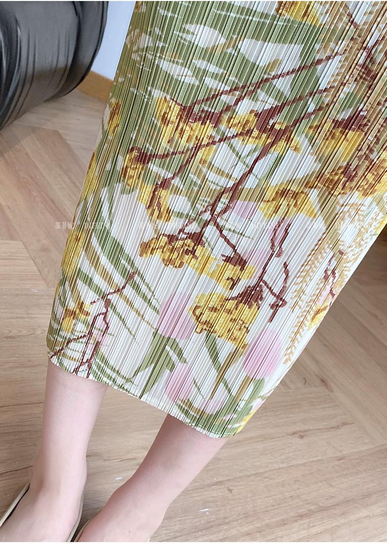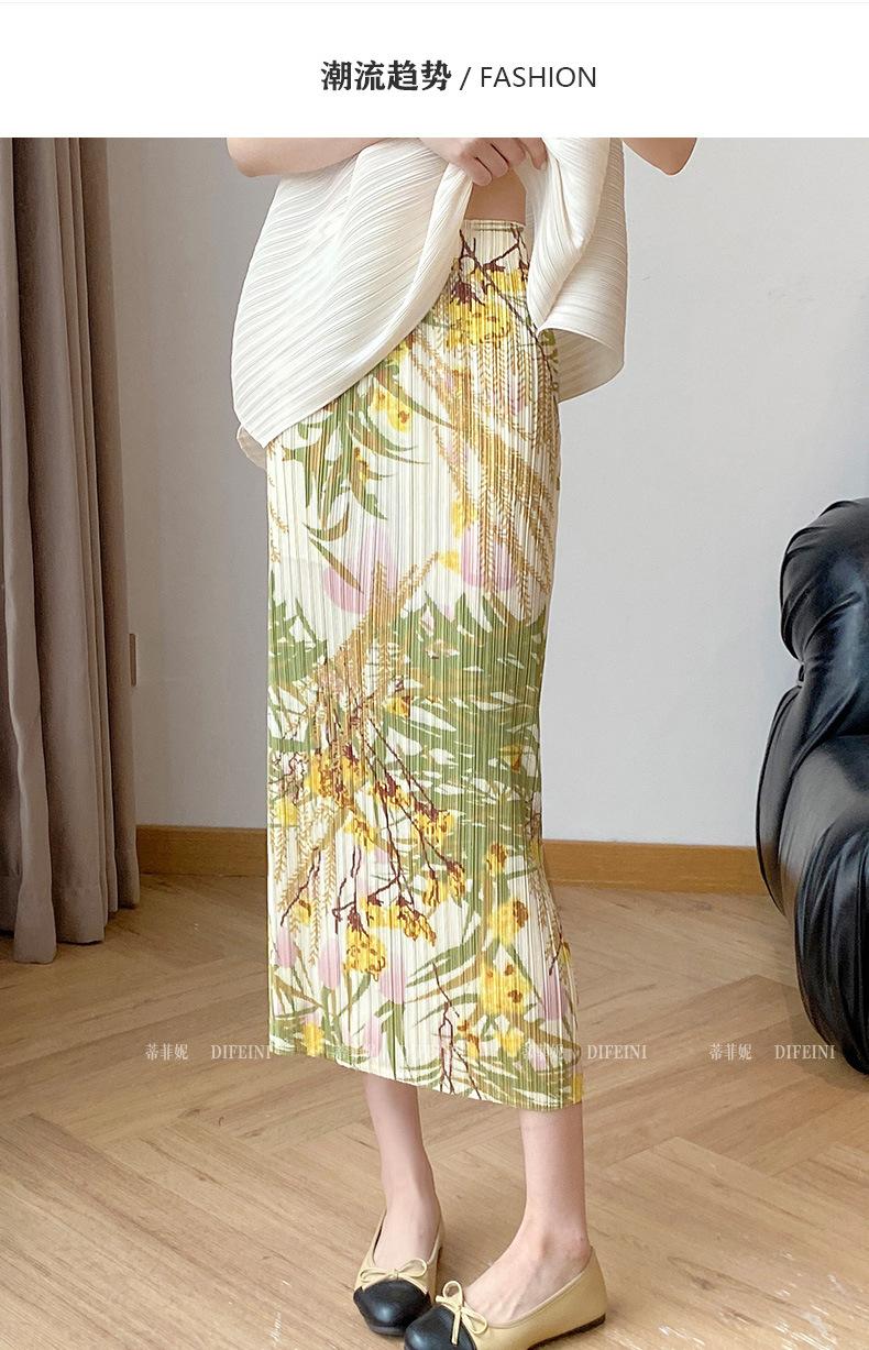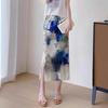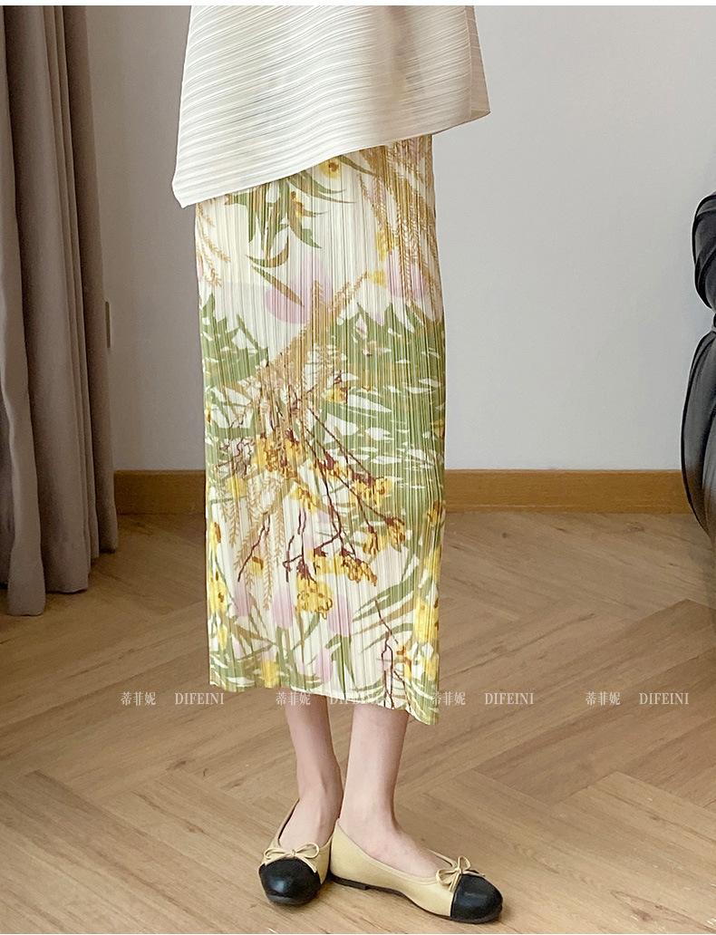 Falda midi plisada estampada estilo Miyake para mujer 2025 verano nuevo diseño nicho adelgazante temperamento falda plisada