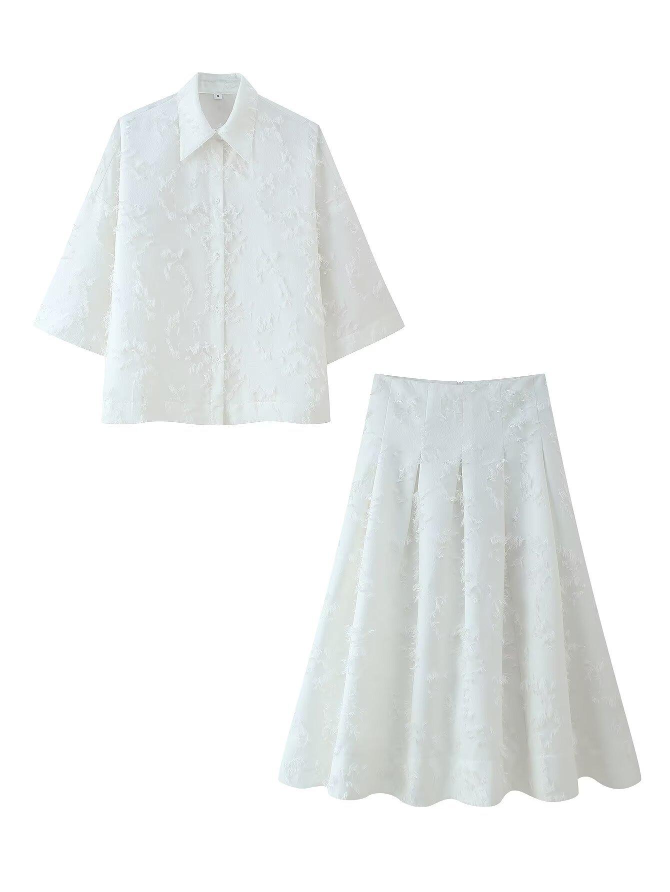 2025 Nuevo Estilo de Verano Estilo Europeo y Americano Camisa con Flecos Largos + Traje de Falda A-Line con Flecos