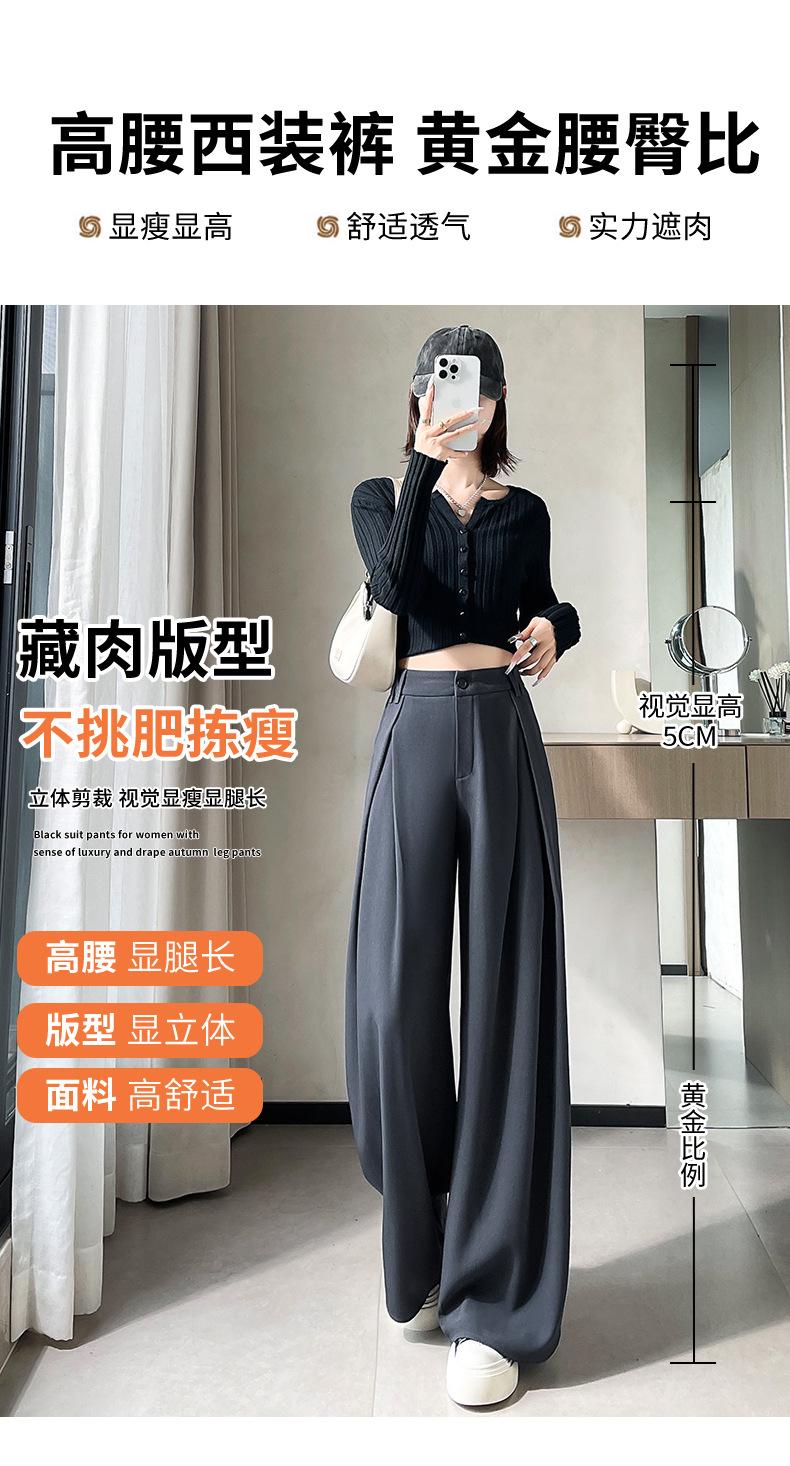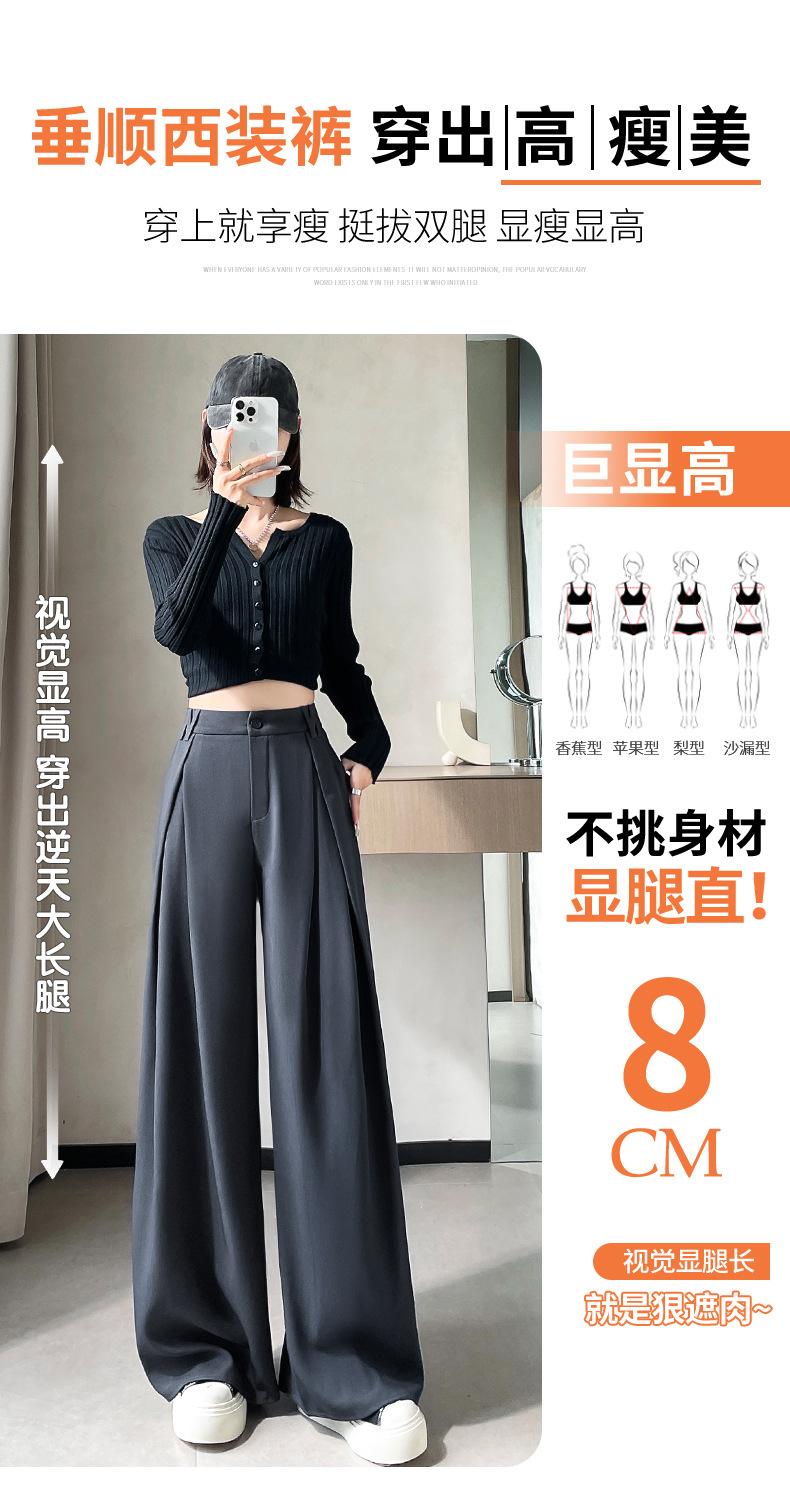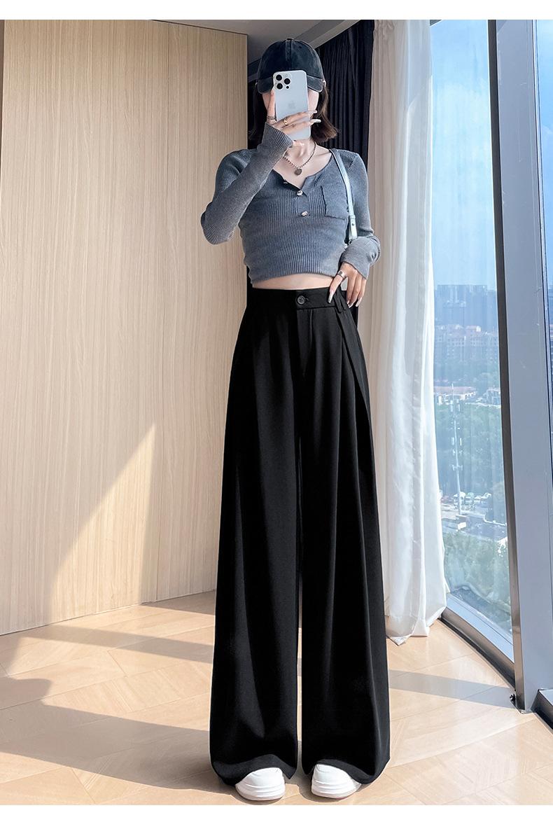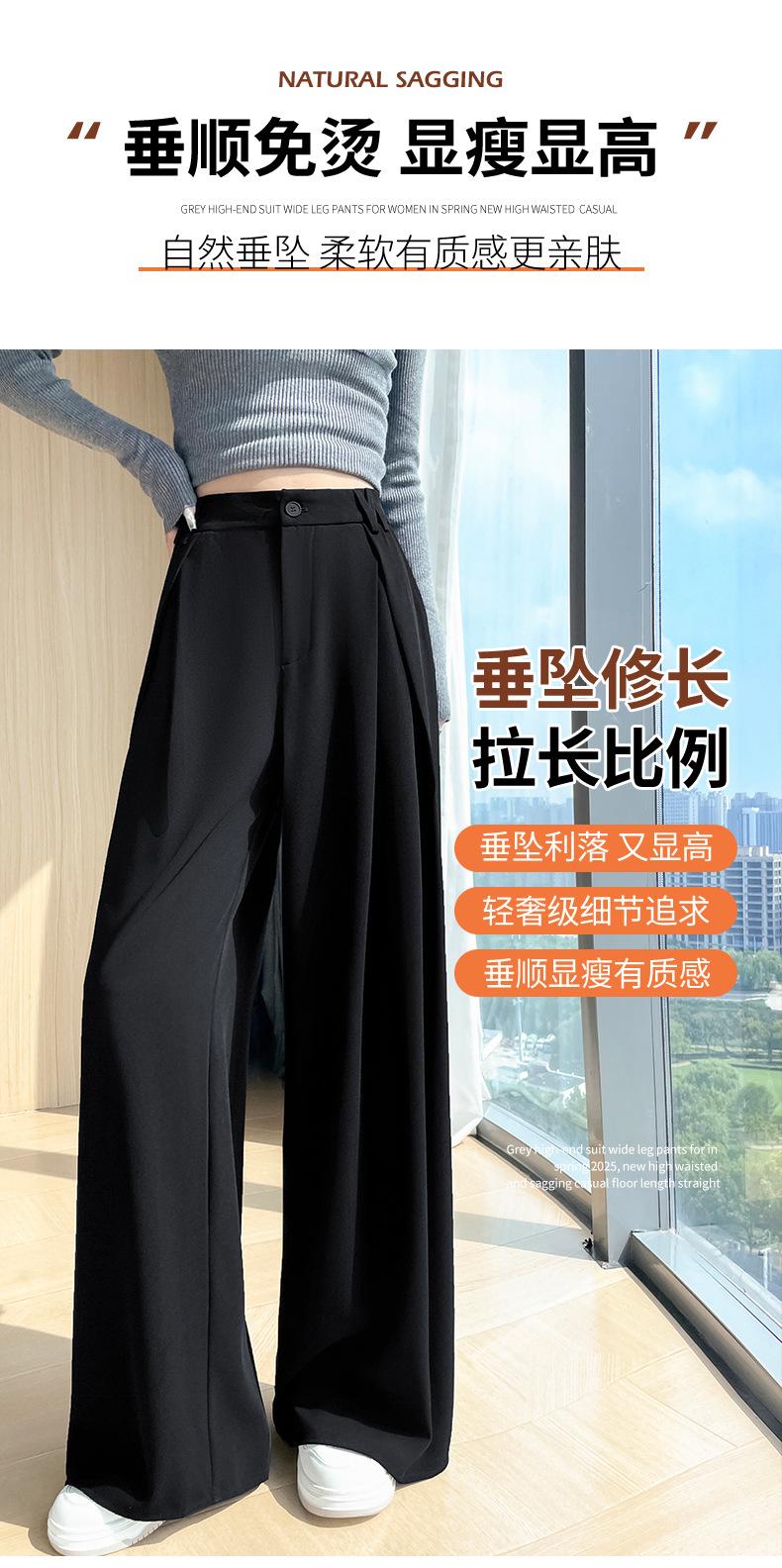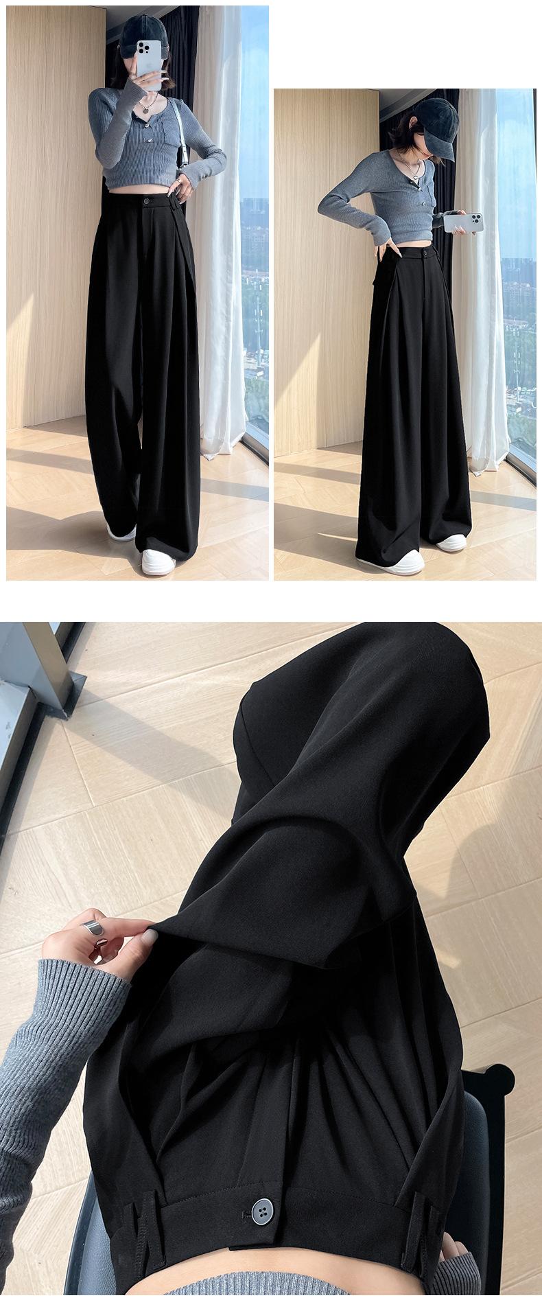 Pantalones de traje negros para mujer primavera y otoño 2025 nuevos de cintura alta plisados adelgazantes sentido de alta gama caída pierna recta casuales pantalones de pierna ancha