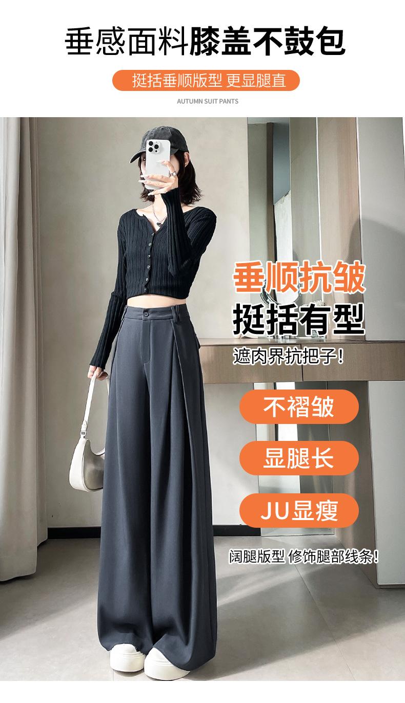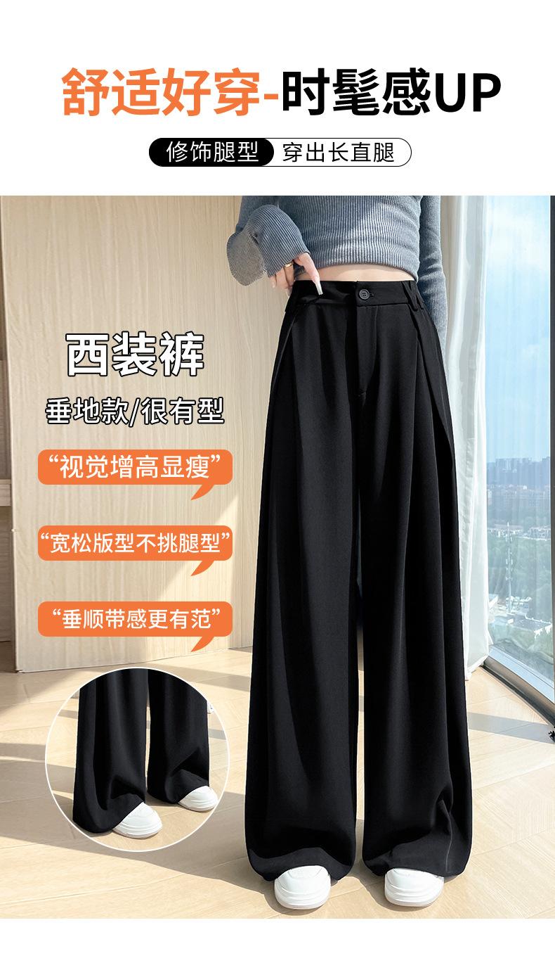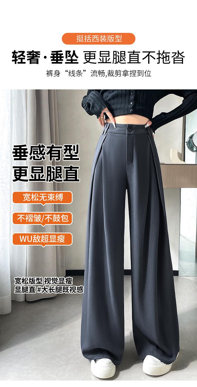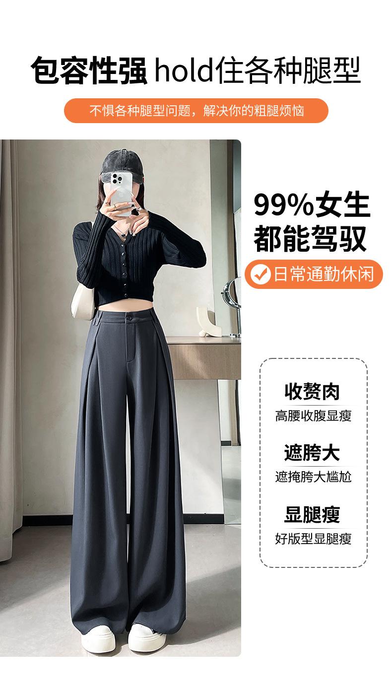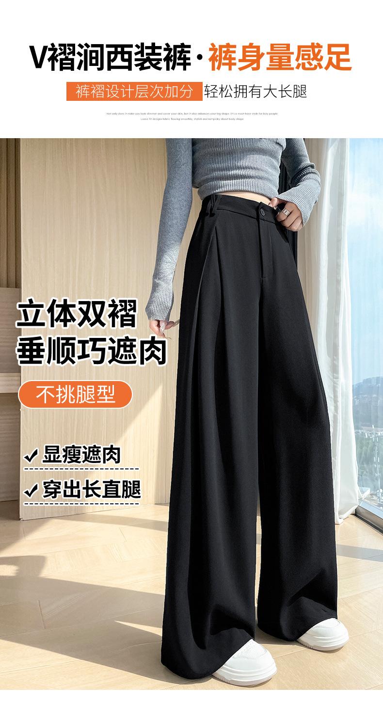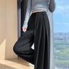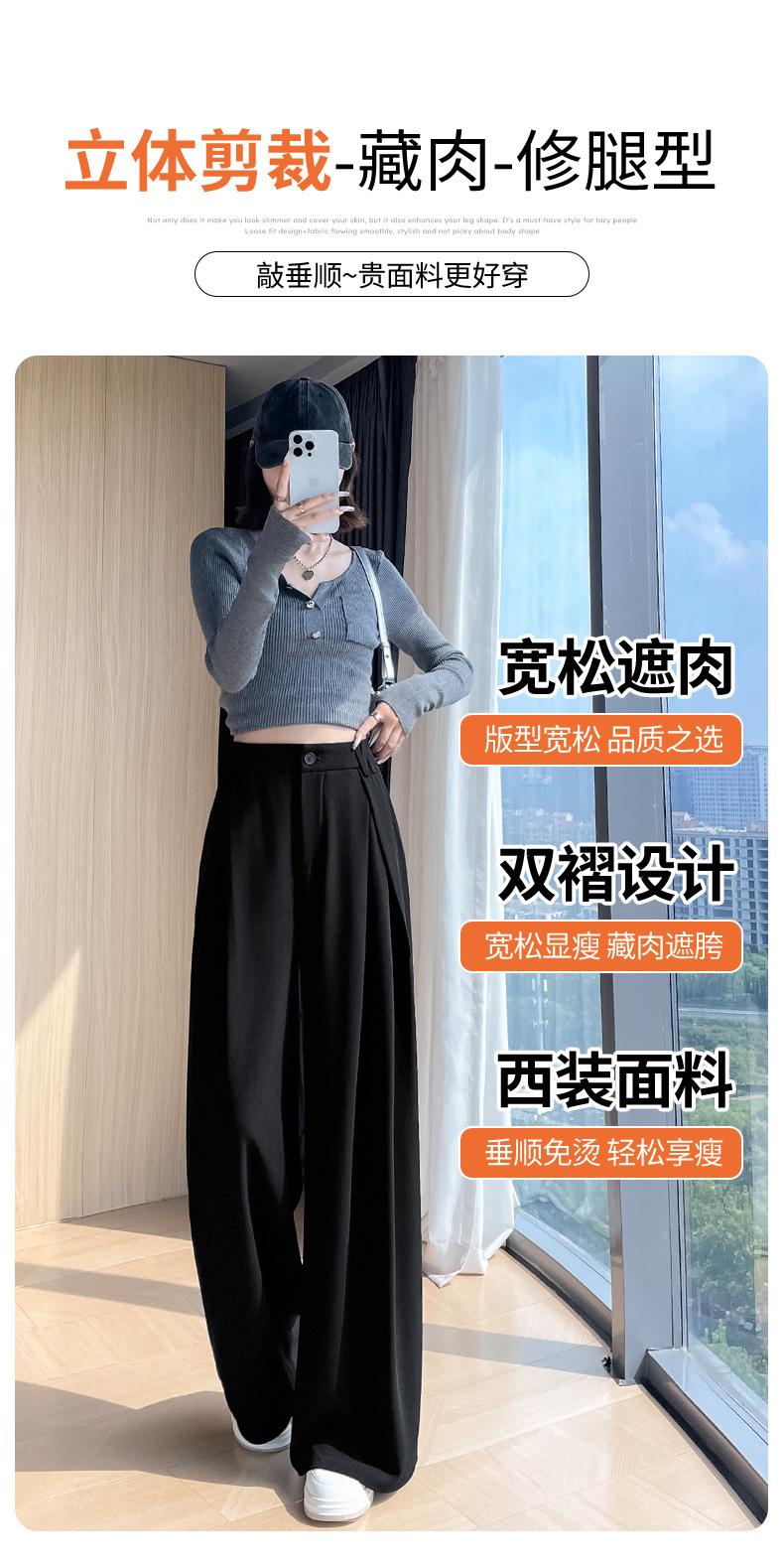 Pantalones de traje negros para mujer primavera y otoño 2025 nuevos de cintura alta plisados adelgazantes sentido de alta gama caída pierna recta casuales pantalones de pierna ancha